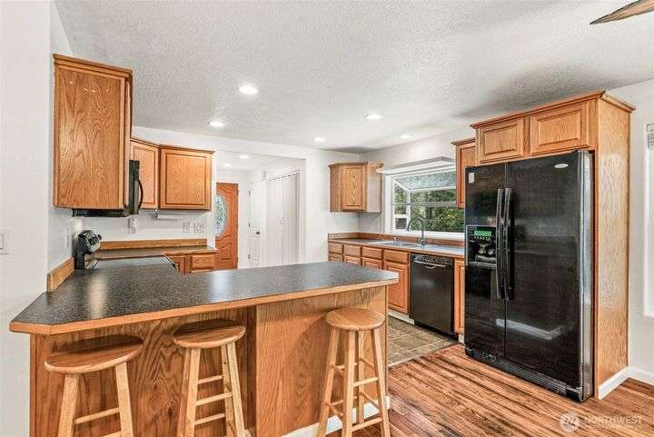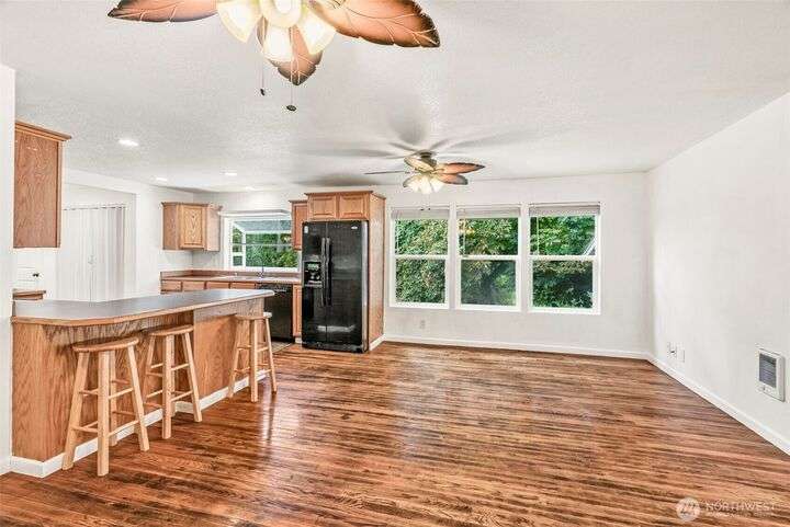 Discover this beautiful hillside bungalow tucked away in a quiet, tree-lined lot. This move-in-ready home combines classic charm with modern updates, offering the perfect blend of comfort, style, and convenience. Inside, you'll find gleaming hardwood floors, fresh carpet, and tons of natural light throughout the open floor plan. The spacious kitchen includes ample cabinetry, black appliances, and a breakfast bar — ideal for hosting friends or enjoying your favorite home-cooked meals. 3 large bedrooms. Enjoy your morning coffee on the covered front porch, or unwind outdoors surrounded by mature landscaping and large trees. The large storage shed keeps your tools and gear organized. Close to freeways, schools, shopping. Tour Today!