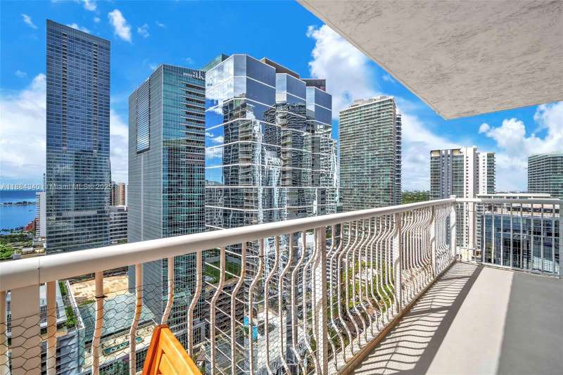 Spectacular 31st floor corner condo in the heart of Brickell with 2 bedrooms, 2 bathrooms plus a den. Daily rentals allowed making it ideal for investors or as a private residence. Wraparound balcony with striking city views and partial bay vistas. Features include travertine floors, renovated bathrooms, custom closets, stainless steel appliances, granite countertops, motorized window shades and a high end washer and dryer. Two assigned parking spaces included. Building amenities offer a tropical pool deck overlooking the bay, two heated pools, oversized whirlpool, fitness center, kids play area, business center, party and game rooms with 24 hour security and valet.