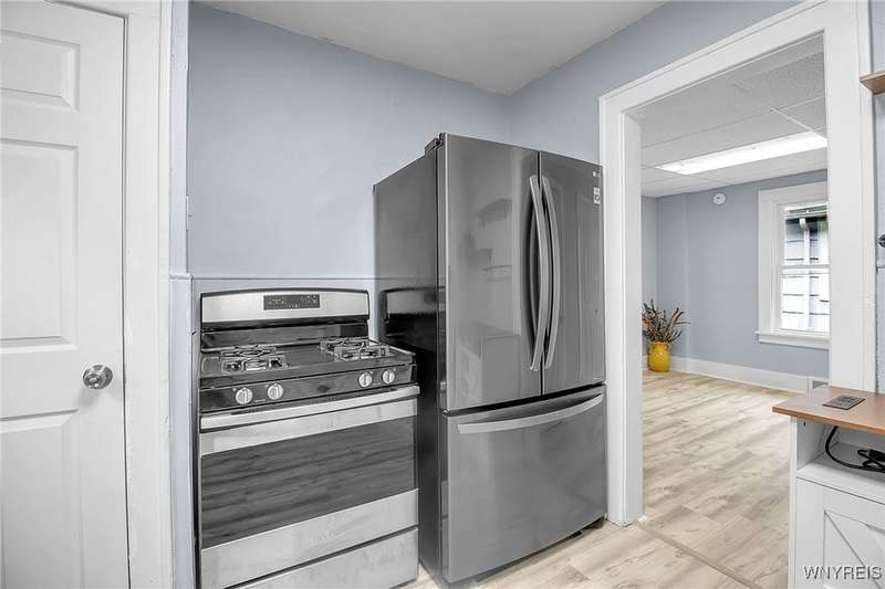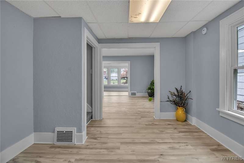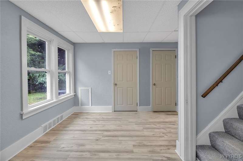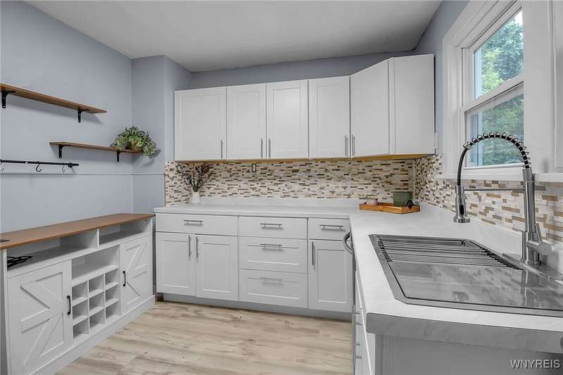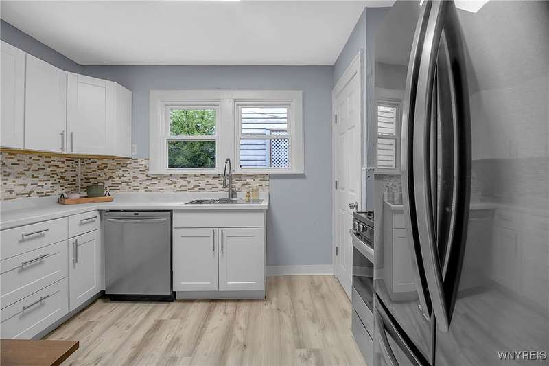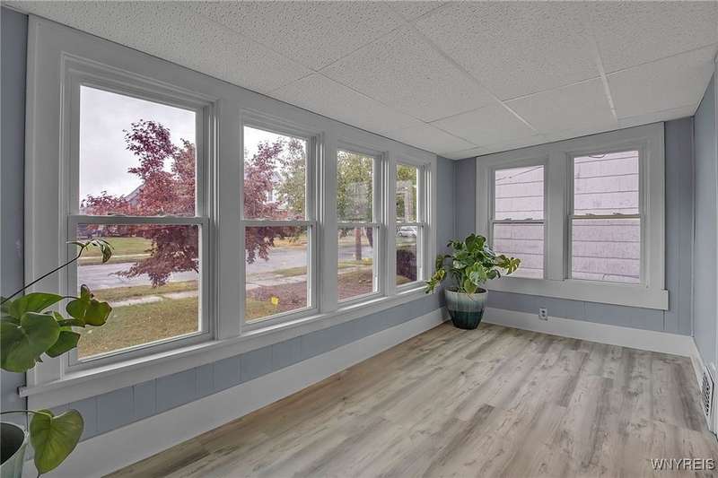 VR pricing. Seller will consider offers between $149,900 and $169,900. Welcome to this updated two-story home located just minutes away from Niagara Falls State Park, Niagara University, and quick access to the 190. Step inside to a spacious living room featuring a decorative fireplace and mantle, bright front sunroom perfect for a home office or playroom, and formal dining. Completely updated kitchen offers stainless steel appliances along with ample cabinet and counter space. Upstairs, you'll find a generous primary bedroom with a walk-in closet, two additional bedrooms, and a full bath with a new vanity and LED mirror. Dry basement provides laundry hookups and glass block windows, while outside, you'll find a fully fenced backyard with shed and parking area. Updates include freshly painted interior, over 20 energy efficient double pane windows, all new interior and exterior doors, flooring & carpeting throughout, remodeled kitchen and baths, gutters, plumbing and fencing making this home truly ready to move right in.