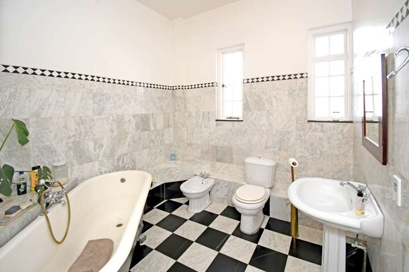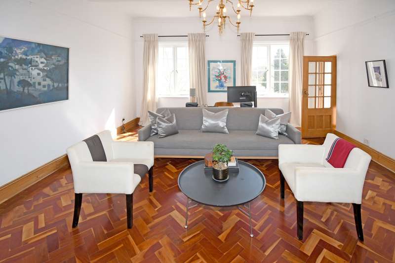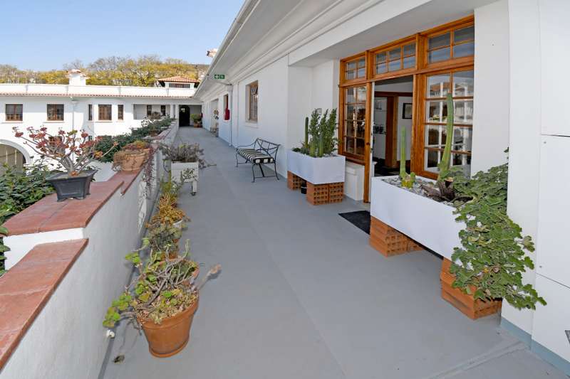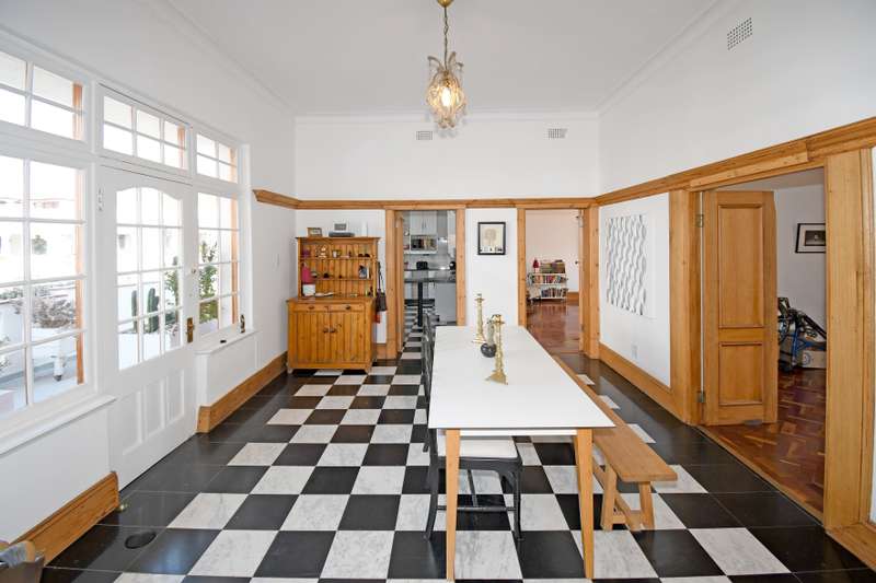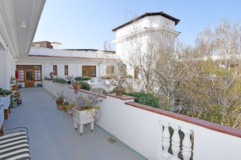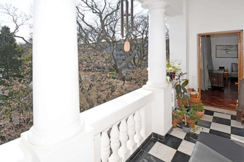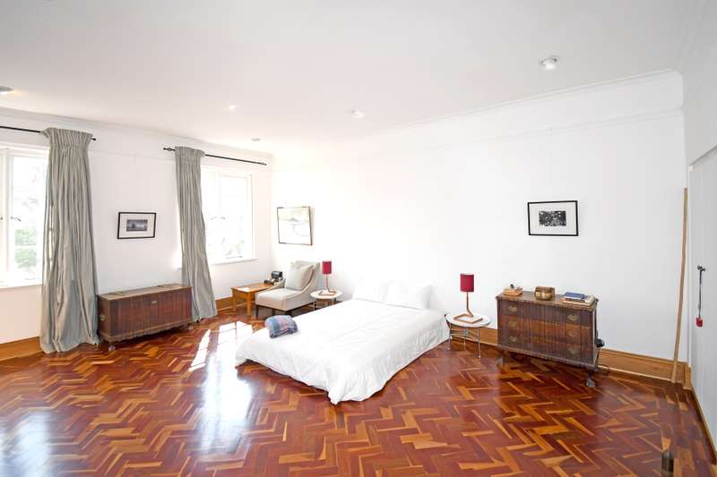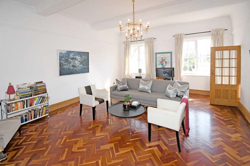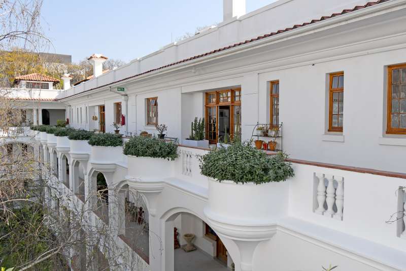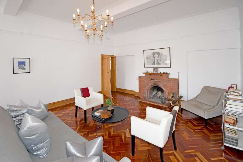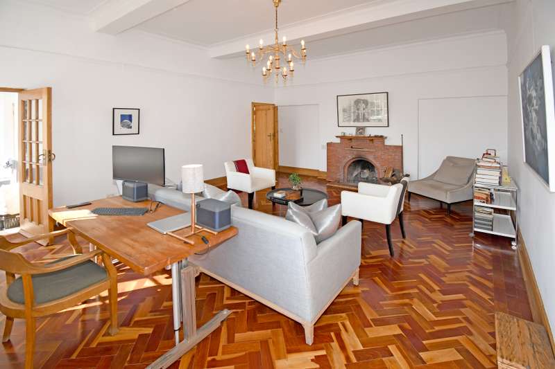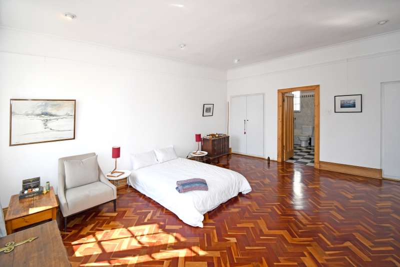 Set on the 4th floor and suffused with beautiful east/west light, the apartment measures 148 square metres in extent. Enter into a large entrance space/dining area and be totally impressed by the wonderful energy and bright open spaces. The kitchen is tastefully decorated in black and white is fully functional with lots of storage and an eat at counter for interactive cooking and dining. The sun filled living room is perfectly proportioned and suitable for entertaining and relaxing. A working fireplace makes winters here warm and comforting and summers cool and comfortable. The main bed is perfectly sized and awaiting two large wardrobes to finish it off. An ensuite bathroom has a large free standing tub. The second bathroom (off the hall) with shower makes entertaining and hosting easy in this lovely home a breeze. Ambient lighting throughout. Beautiful herringbone laid wooden flooring, high ceilings, a balcony with views over the park make this a most desirable address. One parking bay, a storeroom, complex security and a landscaped complex garden. Wide collonaded passages being a hallmark feature of this historically unique building. Easy access to educational, medical and religious institutions. Close to the highway and business and shopping hubs