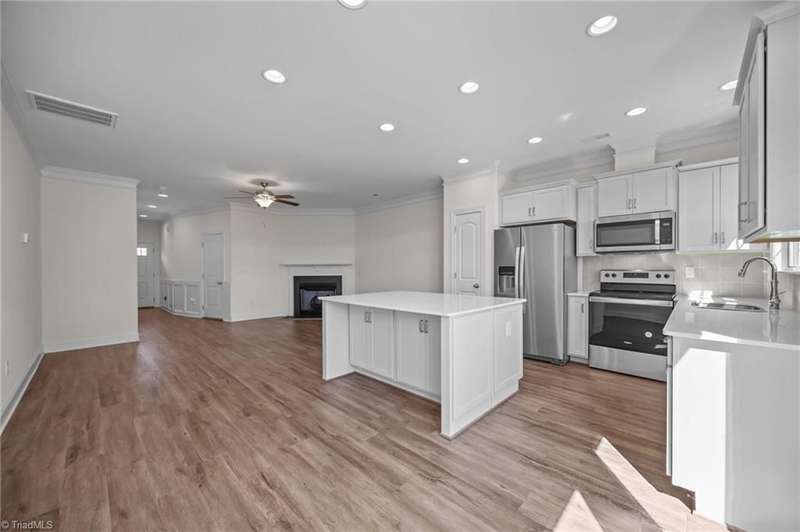 LIKE NEW townhome in Mebane Towne Center! Featuring 2 bedrooms + office, 2.5 baths, and 1,500 sq. ft. of open living across two levels. The main floor boasts a bright living and dining area with a cozy fireplace and an island kitchen with sleek quartz countertops. Upstairs, the vaulted primary suite offers two closets and a spacious bath. You'll also find a second bedroom and an office/flex room with skylight. Enjoy privacy in the rear courtyard patio with a 6-foot brick fence. Community pool and clubhouse! Conveniently located near shopping, dining, and commuter routes. Schools: S. Mebane Elem, Hawfields Mid, Southeast Alamance High. TAXES: Ala. Co $0.494 & City of Mebane $0.37 = $0.864