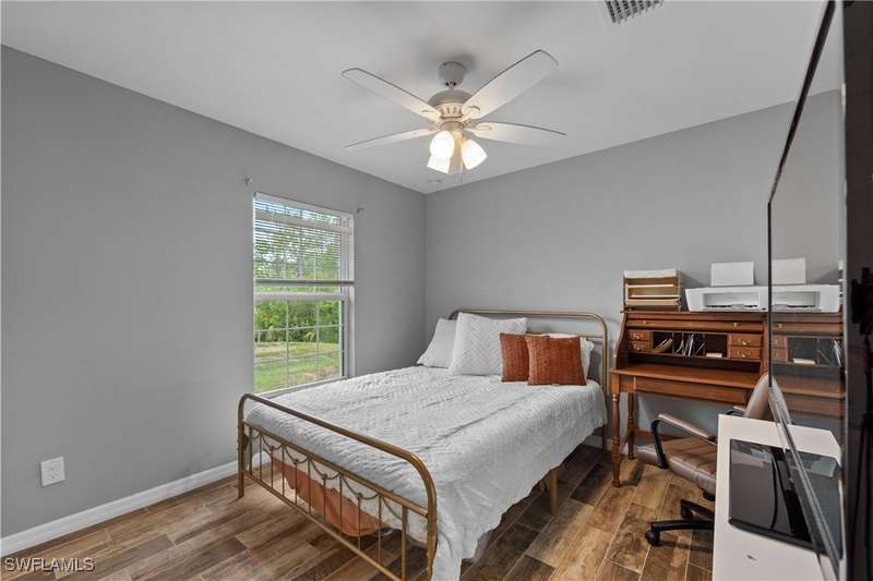 For Lease. | Imagine winding down each day in this laid-back 3-bed, 2-bath, 1,214-sqft home tucked away on a quiet, country-style lot-built in 2021 with all the modern comforts you need. The open living area, with its cathedral ceilings and wood-look tile floors, flows into a kitchen that makes sipping your morning coffee or rustling up weekend brunch a pleasure, thanks to granite counters and stainless steel appliances. You'll love the split-bedroom layout: your roomy master suite has dual walk-in closets and a private bathroom with a tiled shower and dual sinks. Impact-resistant windows and doors (plus a reinforced garage door) give you peace of mind, while the whole-house reverse-osmosis water system keeps things fresh. The two-car garage and generous yard-bordering vacant lots and a ranch-offer plenty of space and privacy. Out here you're minutes from Punta Gorda shops and restaurants, Cape Coral waterways for boating, and some of Southwest Florida's best golf, yet every evening feels like your own little retreat.