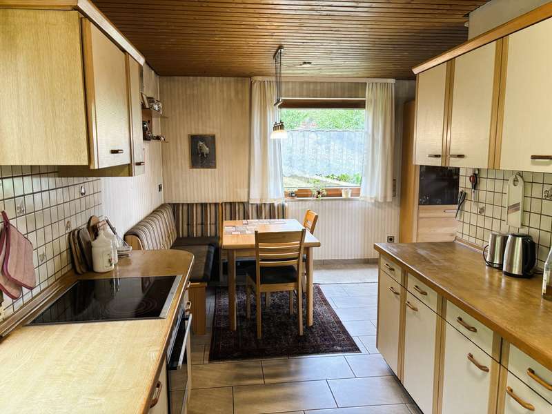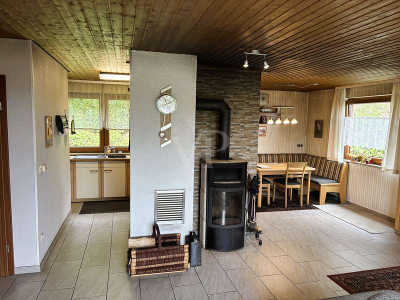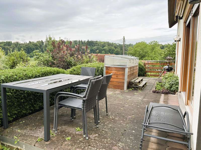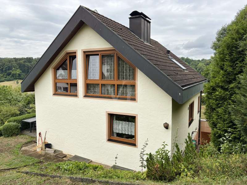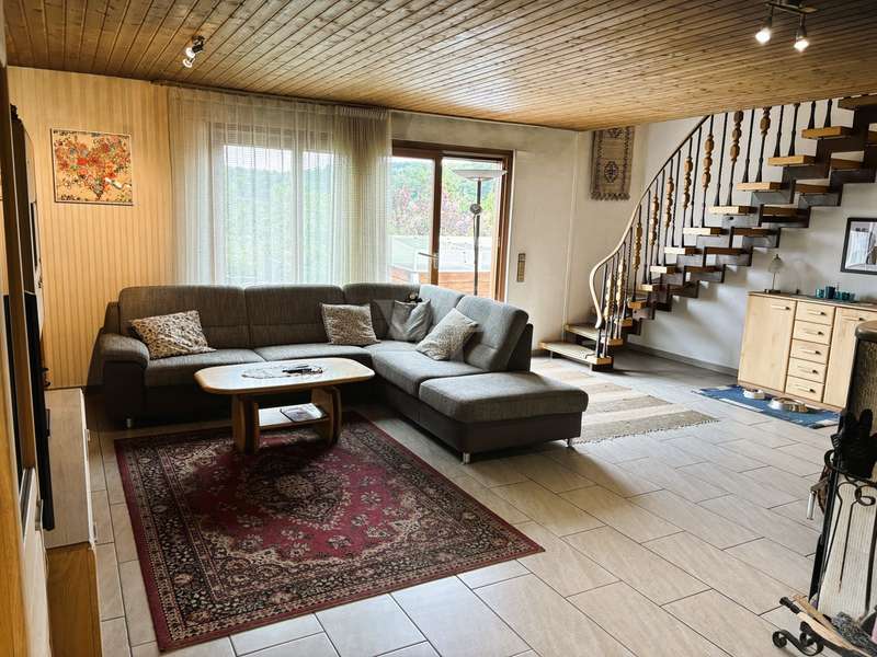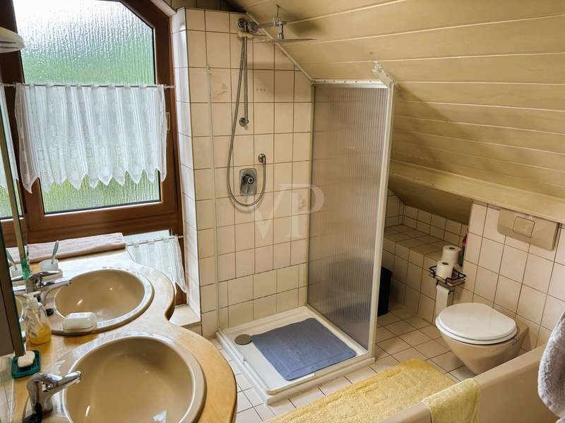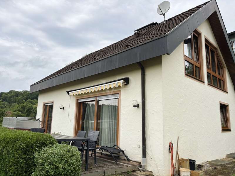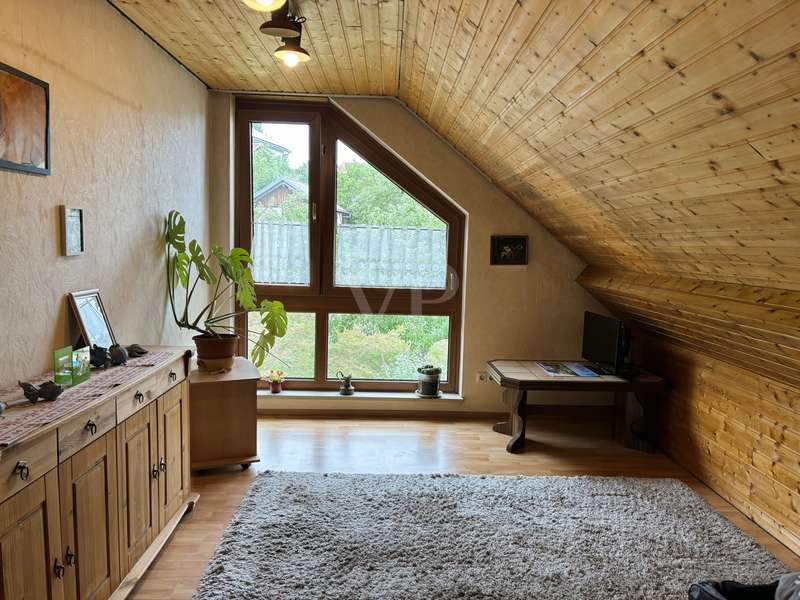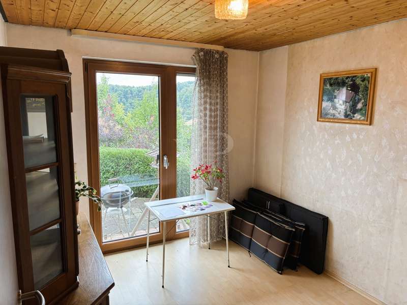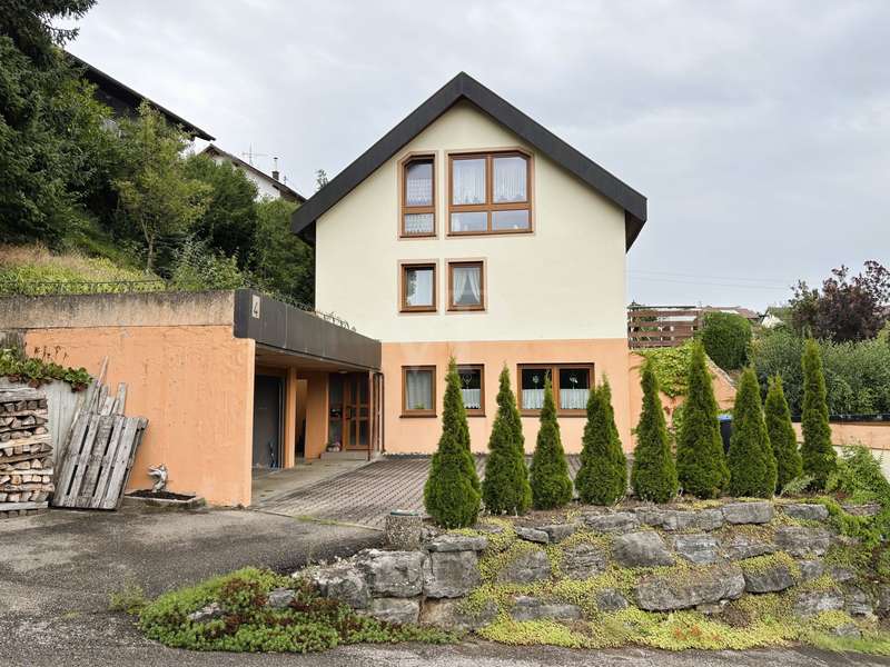 Well-maintained detached house with granny apartment, double garage and terrace This well-kept detached house was built in 1984 on a plot of approx. 544 m² on a slope. The living space of approx. 135 m² is spread over a total of seven rooms, including five bedrooms and two bathrooms, making it an attractive proposition for both families and people with space requirements. The property is furnished in a contemporary style and has been regularly modernized. The boiler in the granny apartment was replaced in 2019 and the roof was partially insulated in 2024. Heating is provided by a combination of underfloor heating and electric heating as well as a wood-burning stove. The plastic windows with double glazing were installed in 2004 and offer good thermal insulation and security. Many of the features correspond to a normal quality of living and are functionally tailored to the requirements of everyday life. The main apartment extends over the ground floor and attic with a living space of approx. 106 m². It impresses with its successful room layout: On the first floor are the central living and dining room with adjoining wood-burning stove - here you can spend relaxing hours on chilly days. The open kitchen is harmoniously connected. The living room leads to a spacious terrace, which is shaded by an awning and creates a successful transition between the indoor and outdoor areas. The terrace will provide many opportunities for social gatherings in the summer months. The first floor is complemented by a guest WC and a further room. On the top floor there are 3 bedrooms and a utility room, which has been practically integrated into the floor. The bathroom on the top floor completes the main apartment and offers comfort for the whole family. There is a large room in the basement that can be used for a variety of purposes, e.g. workshop, storage, etc. There is also a double garage with a separate storage room - there is plenty of space for cars, bicycles and other items. The approx. 28.6 m² granny apartment has its own entrance and is equipped with laminate flooring and a small fitted kitchen (2-ring hob, fridge). There is also an internal shower/WC. This unit is ideal for renting out or as a separate office. Further features include an external staircase, which provides easy access to the garden, and a satellite system. The former pump house from 1963 is located directly on the street and was last used as a practical storage room. The location of the house combines quiet living on a hillside with a view and easy access to the daily needs of Horb am Neckar. The property is in a well-kept condition and impresses with its functional room concept and numerous possible uses. You are welcome to arrange a viewing appointment in the future and let yourself be convinced of the advantages of this special offer during a personal tour.