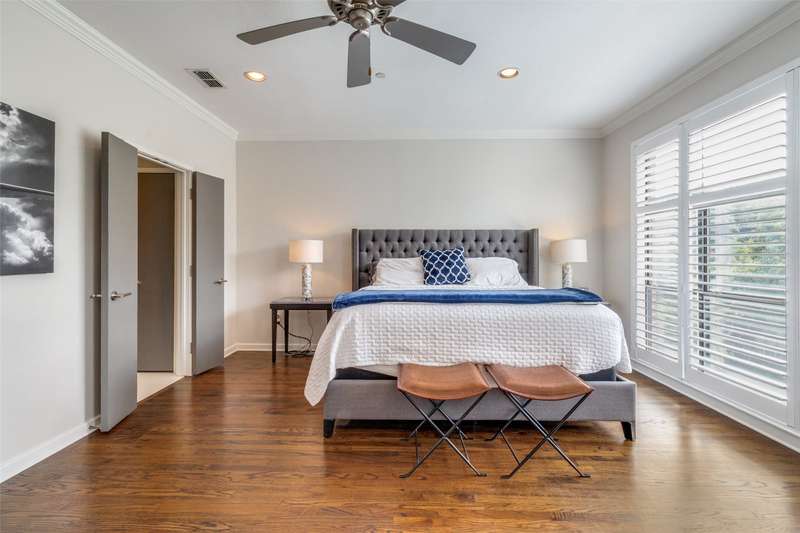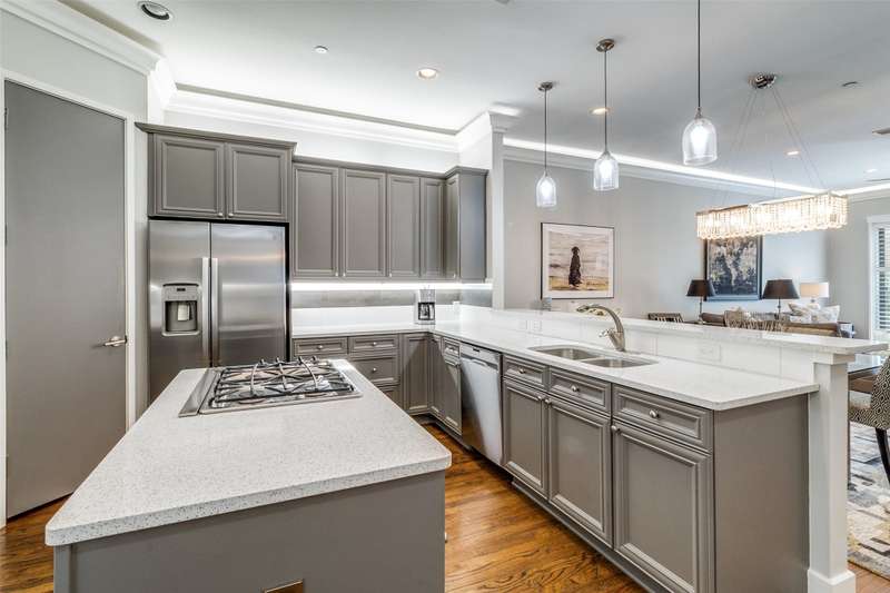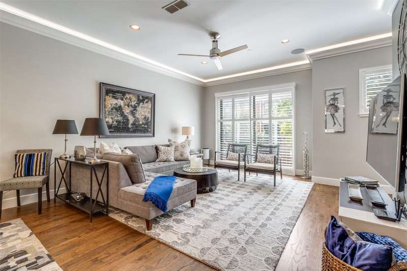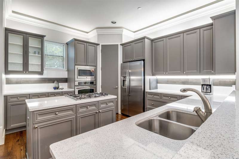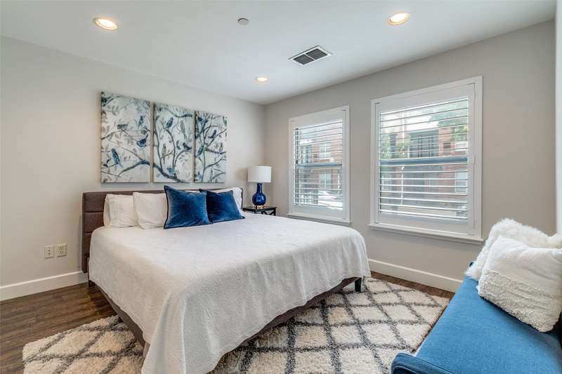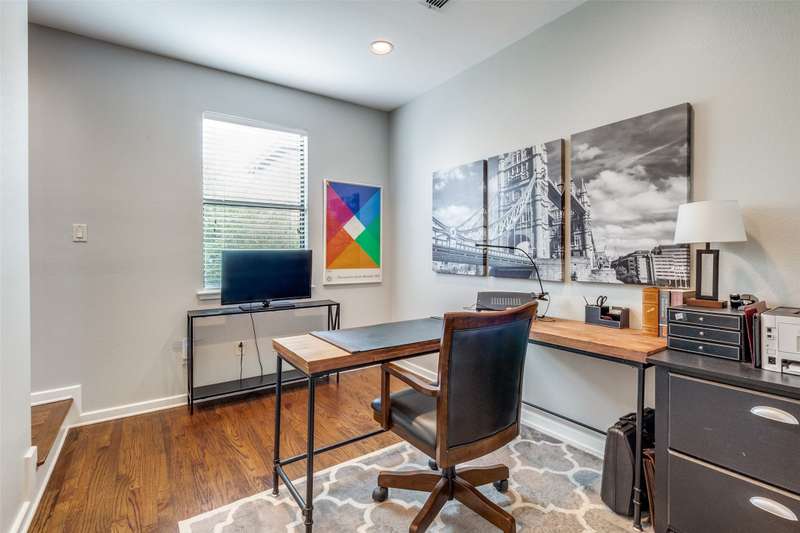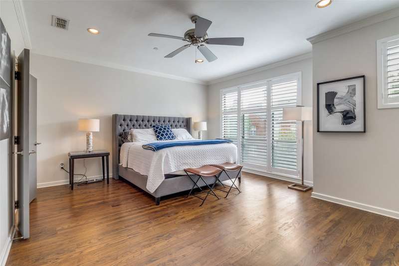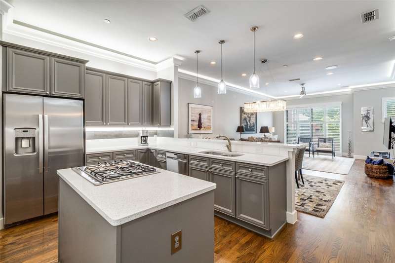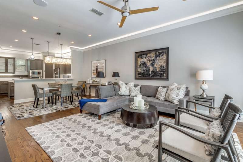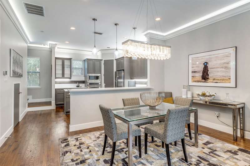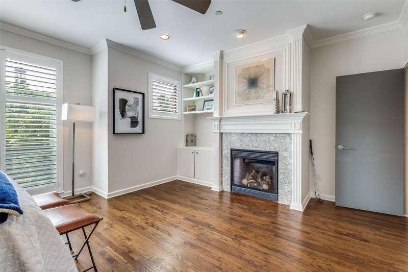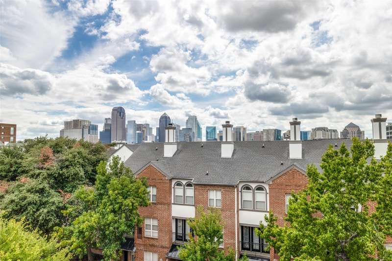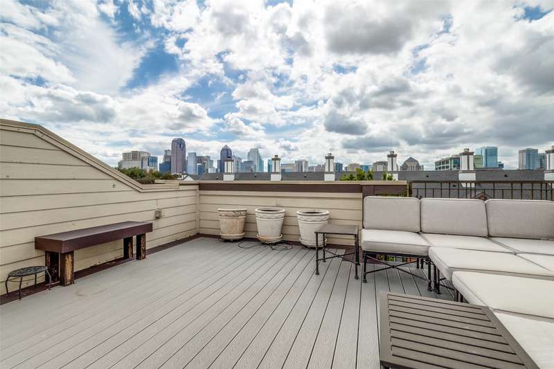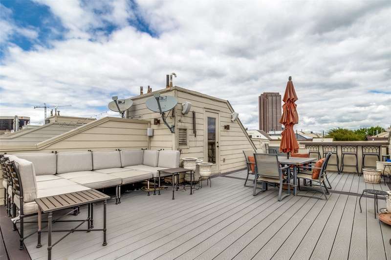 Located on a quiet street, this State Thomas row house has been meticulously maintained. Upon entry, the foyer greets you with wood-looking floor tiles that provide a feeling of warmth. Immediately to the right is the guest bedroom that offers a large walk-in closet and an ensuite bath with travertine tiles. On the second floor, the kitchen, dining and living areas comprise the entire space. Refinished hardwoods, illuminated crown molding and designer lighting fixtures enhance the experience. The kitchen has been updated with quartz counters, tile backsplash, and painted cabinetry. Tucked privately under the stairs is a powder bath. On the third floor, the large primary bedroom is infused with natural light that highlights the built-in cabinetry and fireplace. The remodeled ensuite bath features luxurious wall tiles that surround the shower and tub while smooth quartz tops the dual sink vanity. Your clothes will stay well organized in the walk-in closet fitted with a custom storage system. Outside this room is the laundry closet that leads into the office. When you are ready for outdoor fun, the rooftop deck is the place to be. The incredible views are nothing less than spectacular. This entertaining space includes a kitchen with gas grill, a cooking burner, refrigerator, and prep sink. The roof and the composite deck have been replaced. Finally, all interior and exterior furnishings are included should you desire.
