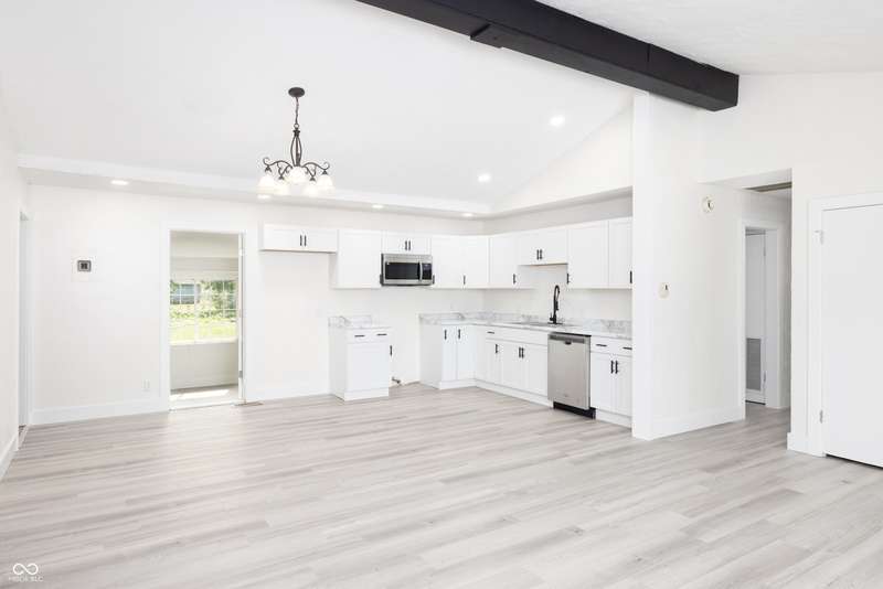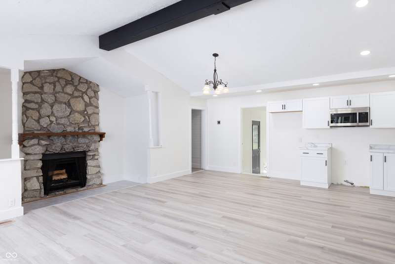 This beautifully remodeled 3 bed/2 bath home sits on a quarter-acre lot and is packed with upgrades. Step into the expansive living room, where vaulted ceilings and a charming wood-burning stone fireplace create a warm and inviting atmosphere. The kitchen shines with brand-new cabinets and sleek countertops, while both bathrooms have been thoughtfully renovated. The home features new flooring throughout, adding a fresh and cohesive feel to every room. Inside and out, it boasts fresh paint for a crisp, modern look. Storage is abundant thanks to an attached one-car garage, a detached garage/workshop, and a spacious shed. This move-in ready gem is one you won't want to miss!