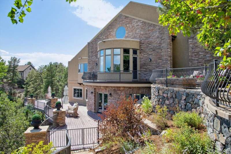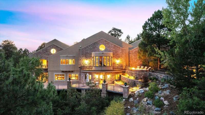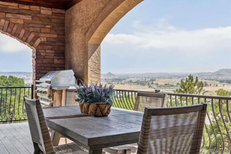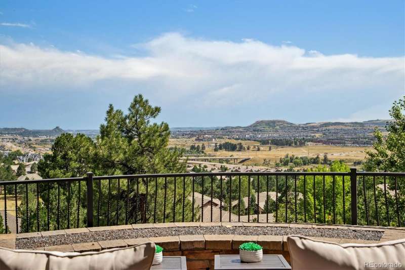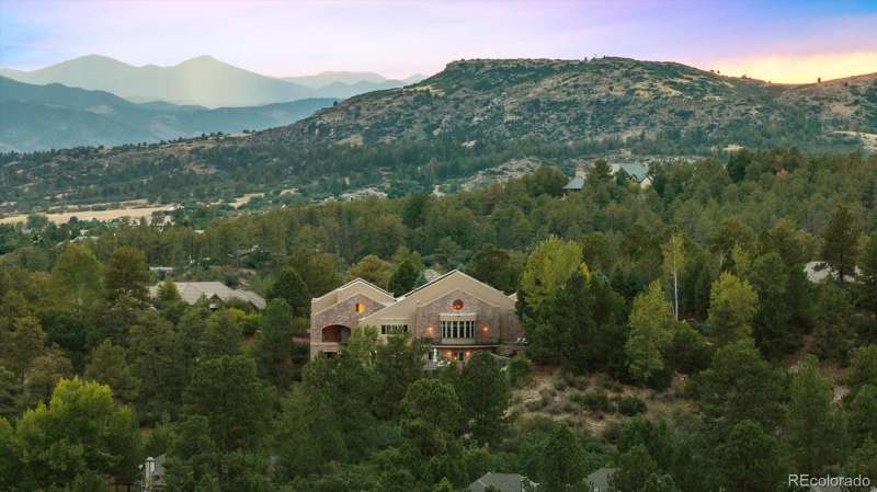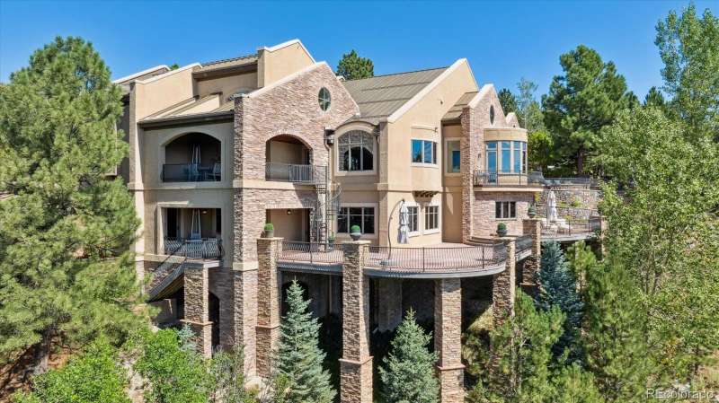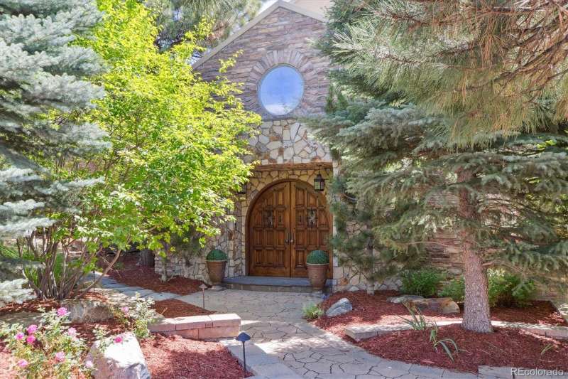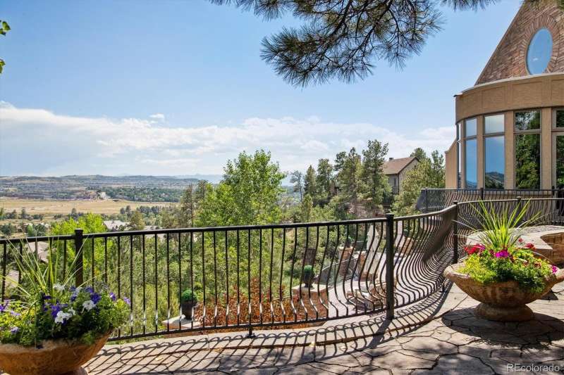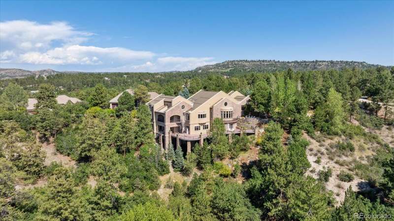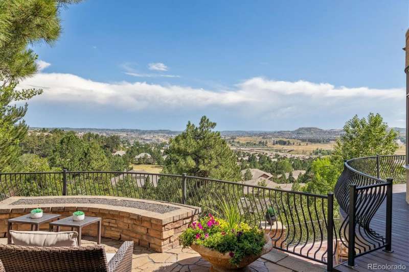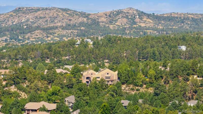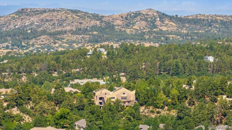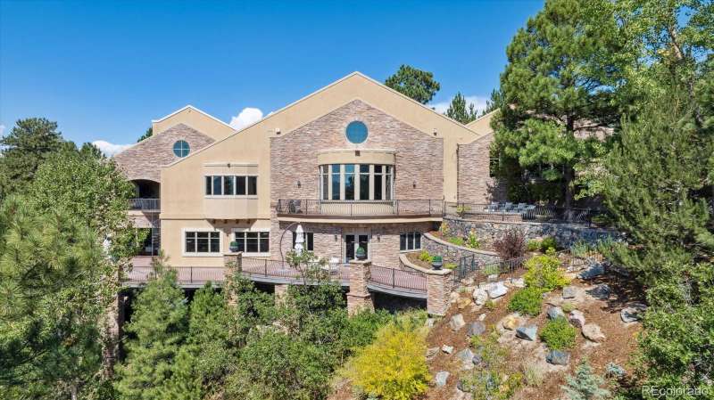 Spectacular Views & Unparalleled Luxury in Castle Pines Village. Nestled on a serene 1.75-acre wooded lot in the exclusive Castle Pines Village, this custom estate offers the perfect blend of privacy, elegance, and breathtaking views. From the moment you step inside, you are greeted by a stunning entryway and exquisite custom woodwork that set the tone for the homes timeless charm.The great room, highlighted by soaring wood cathedral ceilings and walls of windows, frames panoramic mountain views and flows seamlessly into the gourmet kitchen. Designed for both everyday living and entertaining, the kitchen features top-of-the-line appliances, a large center island, and an adjacent 300-bottle wine cellar. A formal dining room provides an elegant space for gatherings, while multiple living areas invite comfort and relaxation. The primary suite is a true retreat, offering dramatic views, a spa-inspired bath with heated floors, infinity tub, steam shower, and a custom wardrobe dressing room. Each of the spacious secondary bedrooms features en suite baths, and a private guest suite with deck access ensures comfort for visitors. Designed for entertainment, this home includes a bonus room with a pub-style bar and billiards, a theater room, and a private office with custom built-ins. A cozy den with a grand fireplace provides yet another inviting living space. Step outside to experience unbelievable outdoor living with multiple decks overlooking the treetops and mountains, a fire pit, hot tub spa, and a beautifully landscaped private yard. This rare Castle Pines Village retreat combines luxurious living with Colorados natural beauty. Fantastic gated community with swimming, tennis, fitness center trails and Security rate access to restaurants and shopping.
