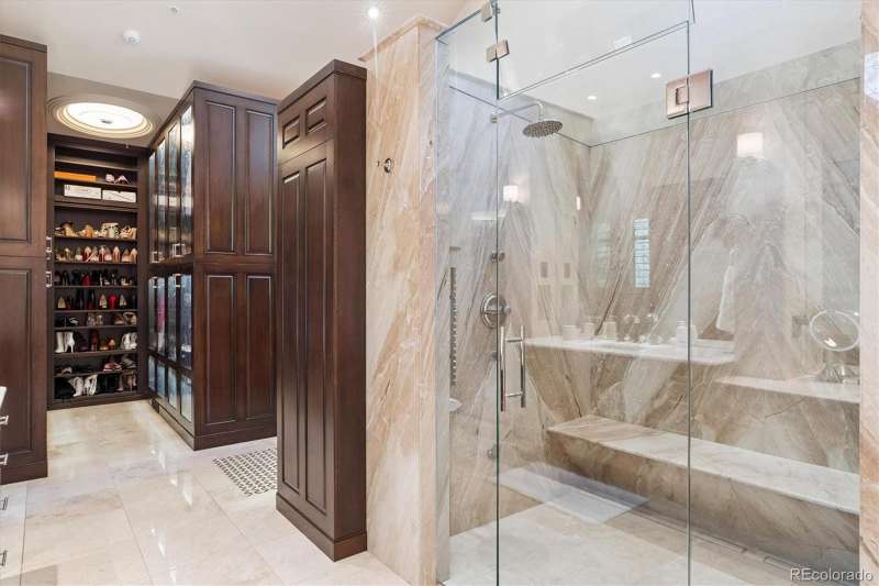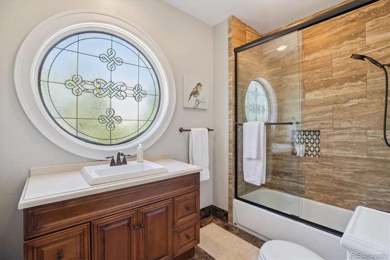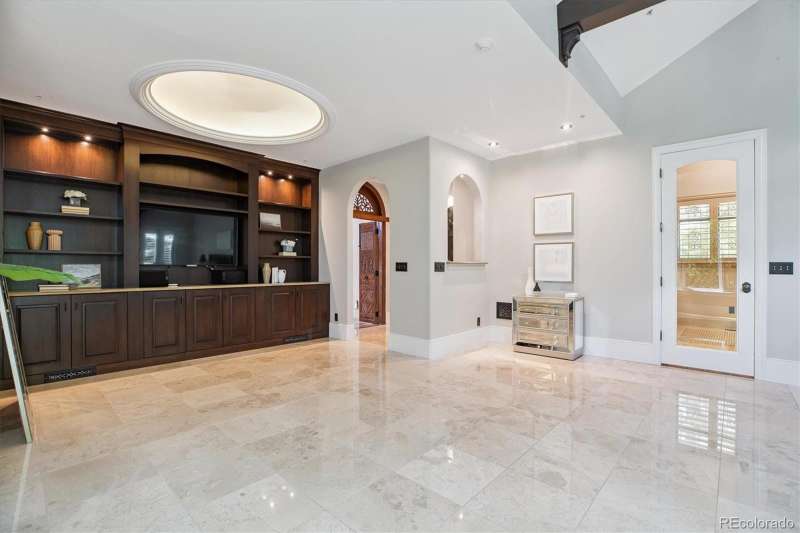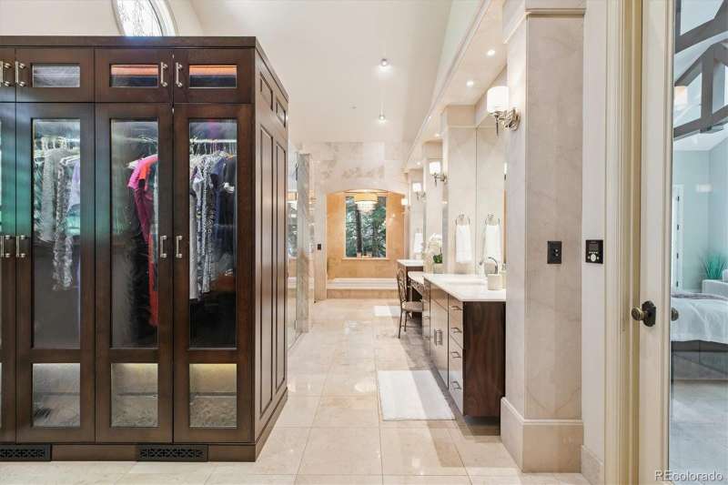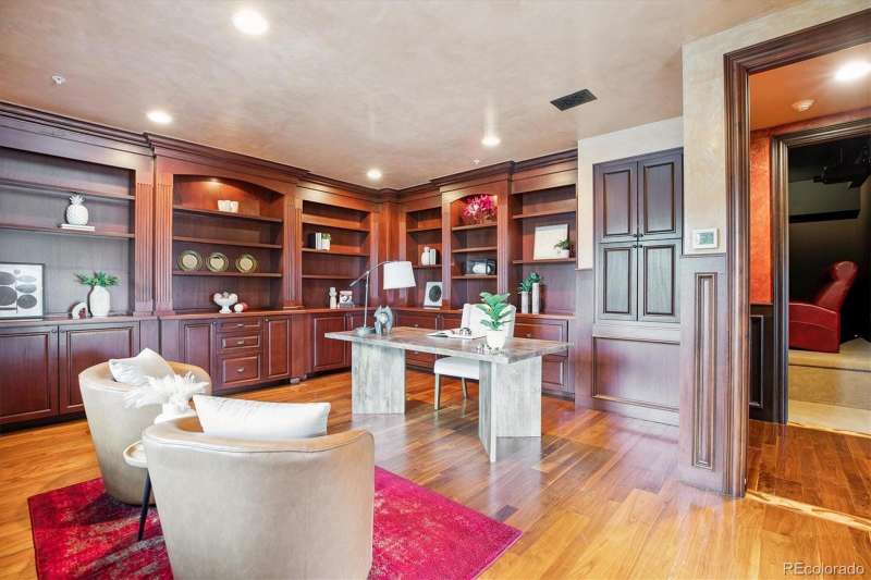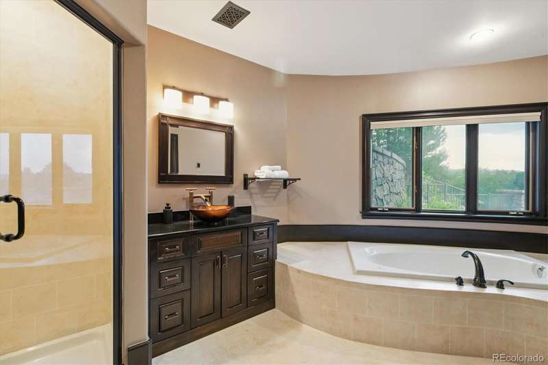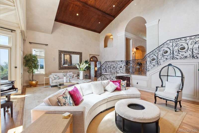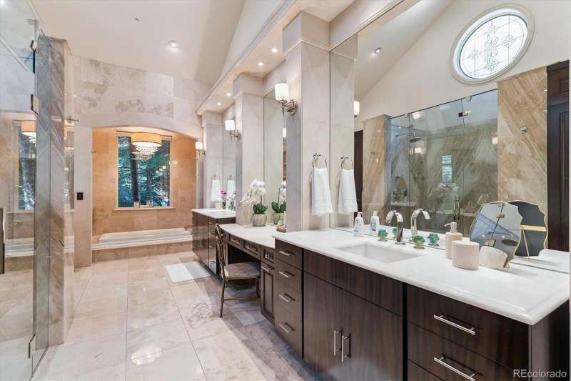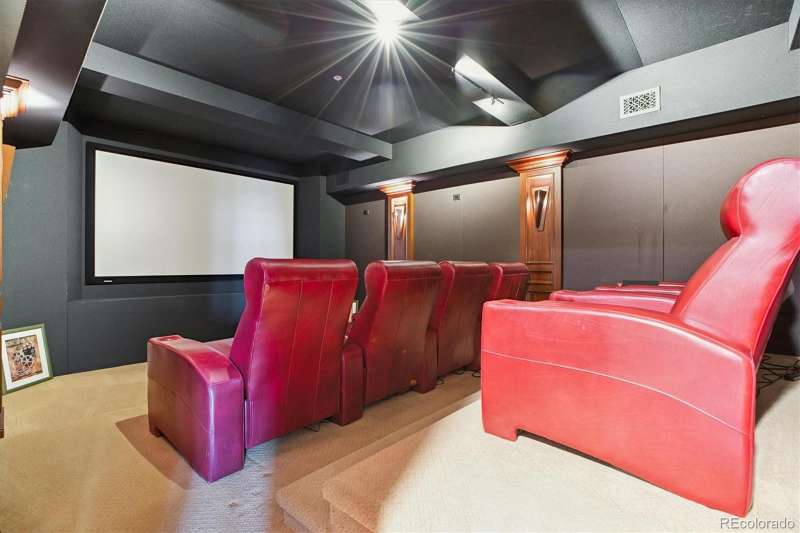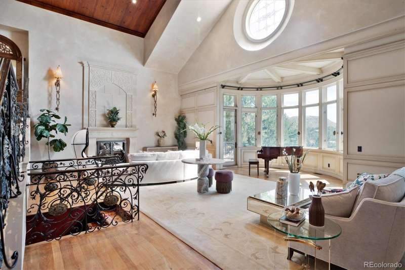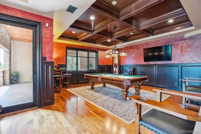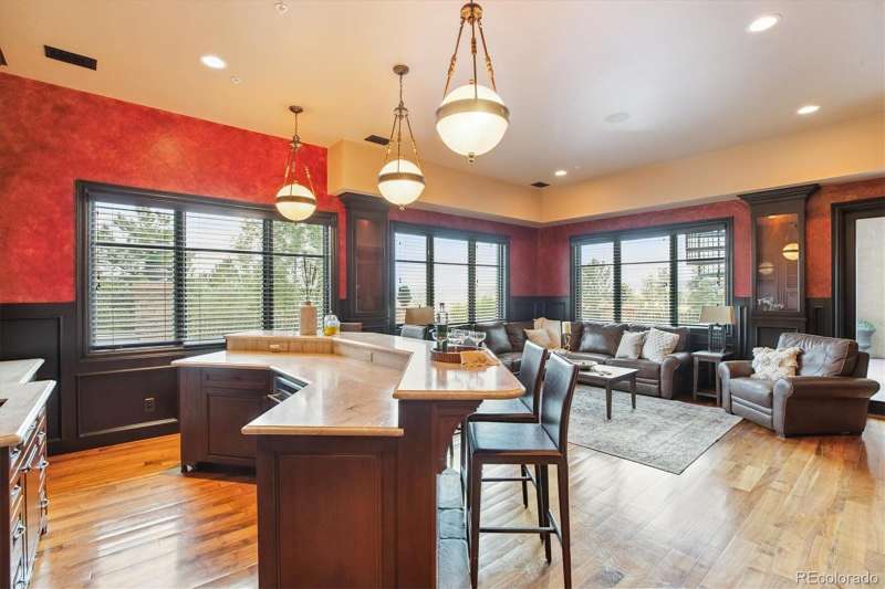 Spectacular Views & Unparalleled Luxury in Castle Pines Village. Nestled on a serene 1.75-acre wooded lot in the exclusive Castle Pines Village, this custom estate offers the perfect blend of privacy, elegance, and breathtaking views. From the moment you step inside, you are greeted by a stunning entryway and exquisite custom woodwork that set the tone for the homes timeless charm.The great room, highlighted by soaring wood cathedral ceilings and walls of windows, frames panoramic mountain views and flows seamlessly into the gourmet kitchen. Designed for both everyday living and entertaining, the kitchen features top-of-the-line appliances, a large center island, and an adjacent 300-bottle wine cellar. A formal dining room provides an elegant space for gatherings, while multiple living areas invite comfort and relaxation. The primary suite is a true retreat, offering dramatic views, a spa-inspired bath with heated floors, infinity tub, steam shower, and a custom wardrobe dressing room. Each of the spacious secondary bedrooms features en suite baths, and a private guest suite with deck access ensures comfort for visitors. Designed for entertainment, this home includes a bonus room with a pub-style bar and billiards, a theater room, and a private office with custom built-ins. A cozy den with a grand fireplace provides yet another inviting living space. Step outside to experience unbelievable outdoor living with multiple decks overlooking the treetops and mountains, a fire pit, hot tub spa, and a beautifully landscaped private yard. This rare Castle Pines Village retreat combines luxurious living with Colorados natural beauty. Fantastic gated community with swimming, tennis, fitness center trails and Security rate access to restaurants and shopping.