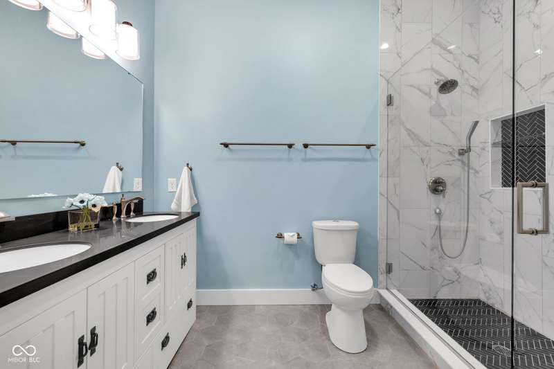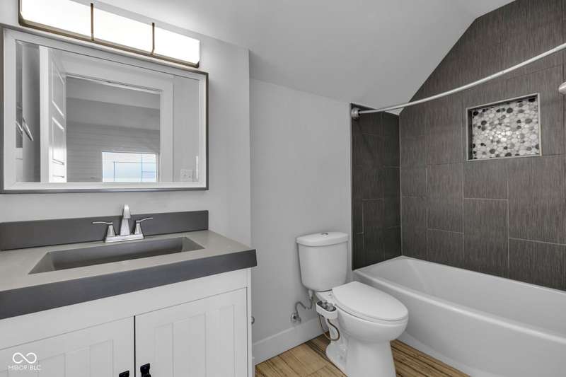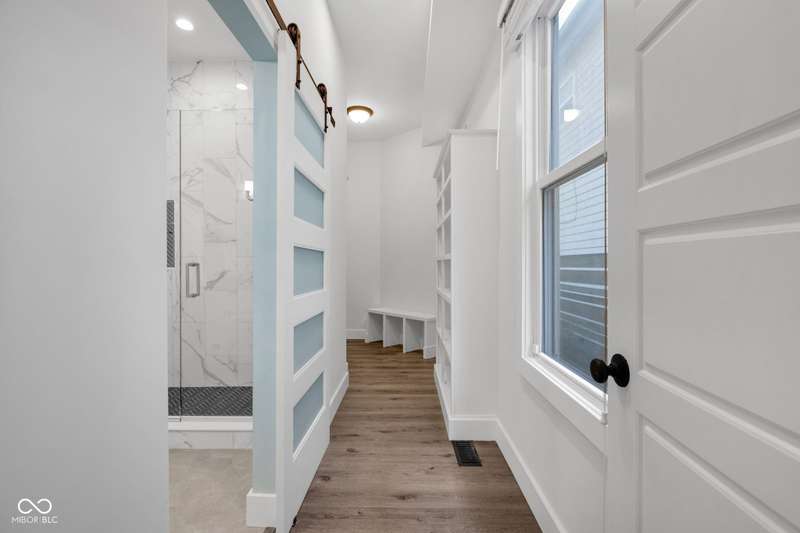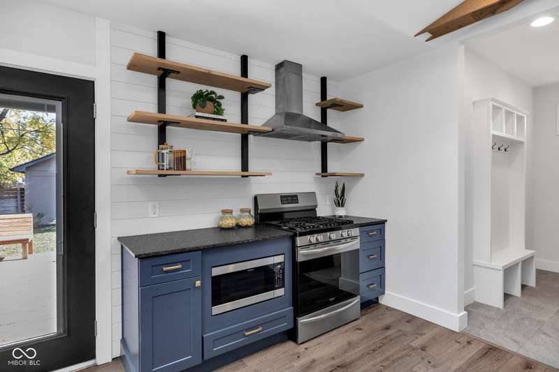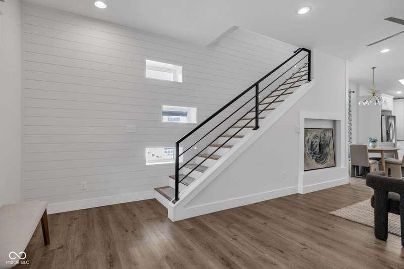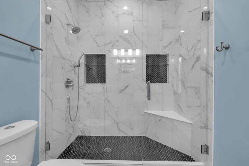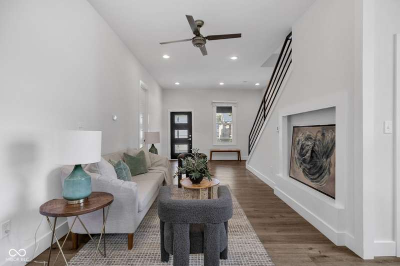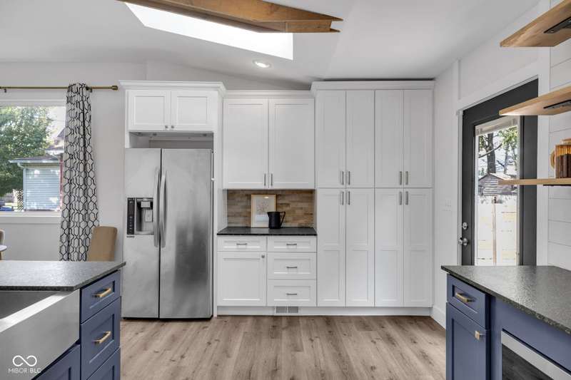 Welcome to this modern 3-bedroom, 2-bathroom home in the heart of Fountain Square, one of Indianapolis' most sought-after neighborhoods! This home offers 9 1/2 foot ceilings on the main floor, open-concept living, tons of natural light, and high-end contemporary design just minutes from downtown Indianapolis, top restaurants, nightlife, and coffee shops. Step inside to an inviting open kitchen and living space featuring skylights, stainless steel appliances, and a large center island perfect for entertaining. The main-level primary suite is your private retreat, showcasing a custom luxury bath with dual vanities, gorgeous tile, and a spa-style walk-in shower. Don't miss the huge walk-in closet for all your storage needs! Two additional bedrooms offer space for guests, a home office, or creative studio. Outside, enjoy a fully fenced yard, perfect for pets or outdoor gatherings, plus a large patio ideal for relaxing evenings. The EV charger in the garage adds convenience and sustainability for modern living. This move-in-ready Fountain Square gem combines style, function, and location-the perfect opportunity to enjoy urban living with a neighborhood feel. Garage Built (2018), New Roof (2019), Water Softener Added (2021), Custom Primary Bathroom Remodel (2024).