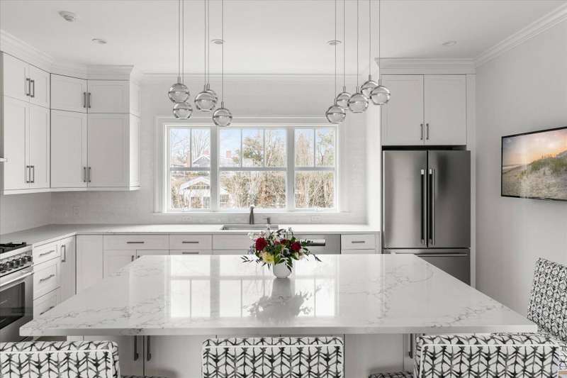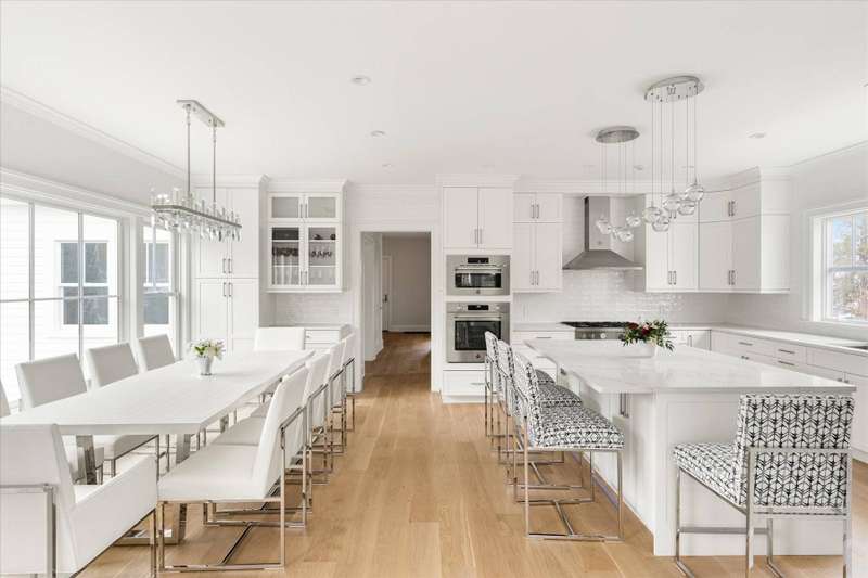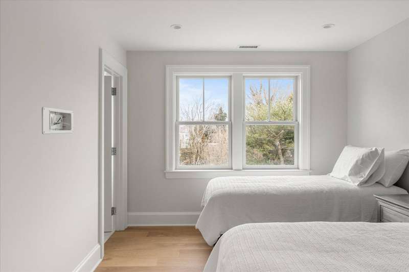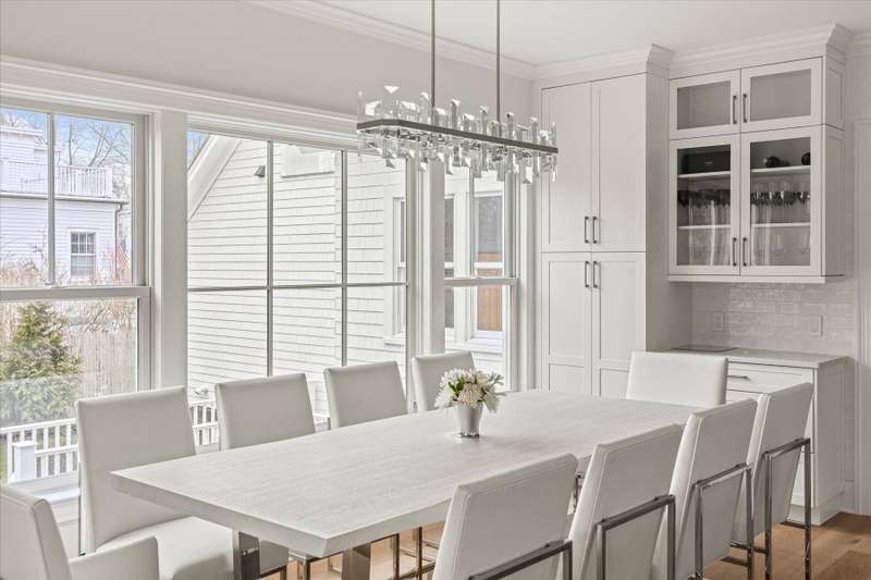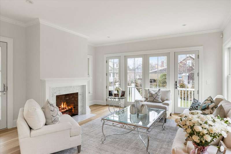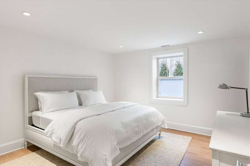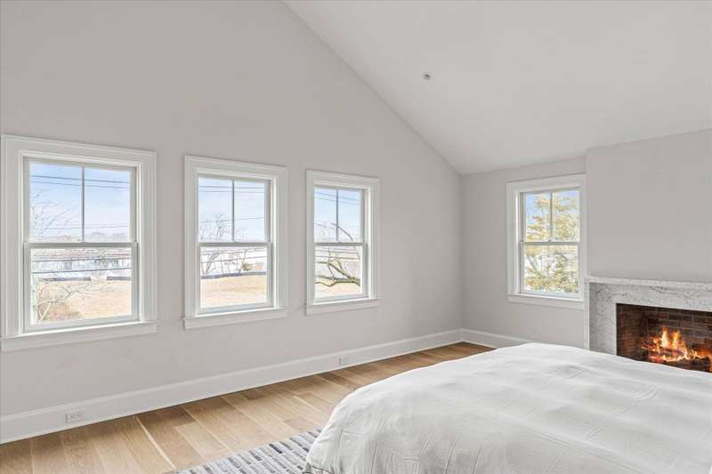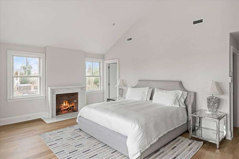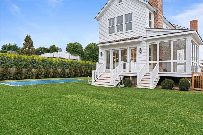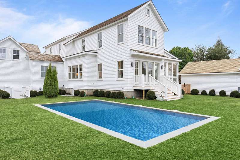 On coveted Glover Street in the heart of Sag Harbor Village is this beautifully and recently completed custom residence with designer decorated interiors by Mitchell Gold. With water views, this property is moments to the Main Street shopping, Long Wharf, and some of the most famous restaurants In the Hamptons. This 5 bedroom 5 1/2 bath house offers a first floor as well as a second floor primary suite with a fireplace. There is a formal living room with a fireplace as well as a large family room with another fireplace, all open to the professionally outfitted kitchen and dining areas. The glassed in porch offers the 4th fireplace, for cozy relaxation, cocktails or entertaining. The lower level is finished with radiant heated floors, gym, living space, wet bar, movie theater and bedroom with full and half baths and 2nd laundry. The vast lawn is flanked by a 14x28 heated Gunite pool. Finishing off this masterpiece is a free standing garage. This is an incredible package for the most discerning renter who appreciates fine design and outstanding location in the heart of Sag Harbor Village.