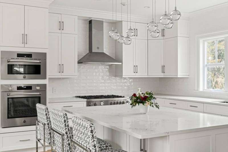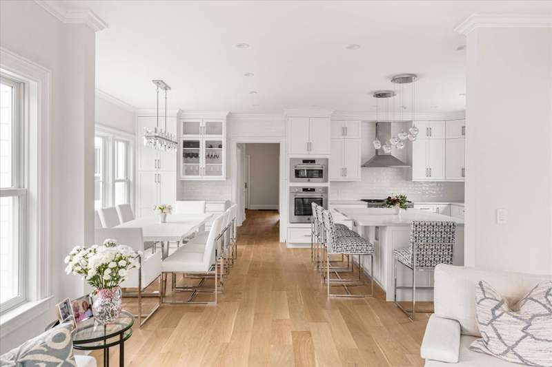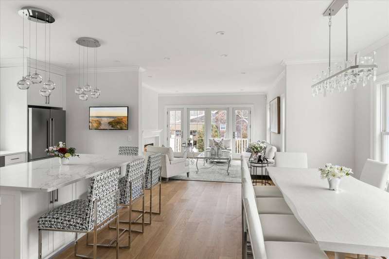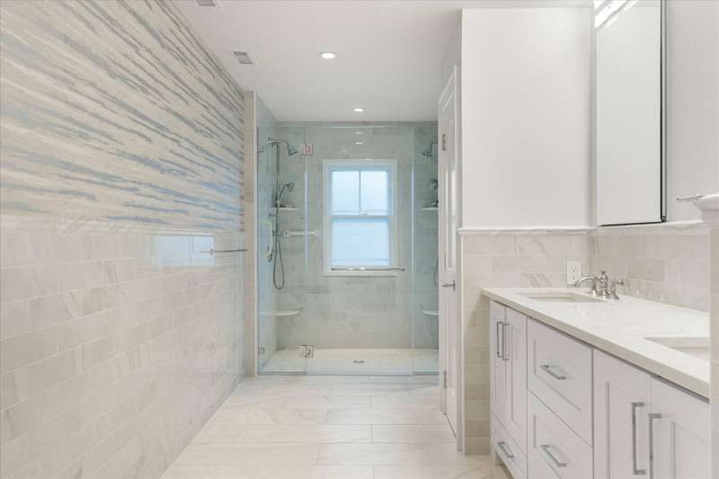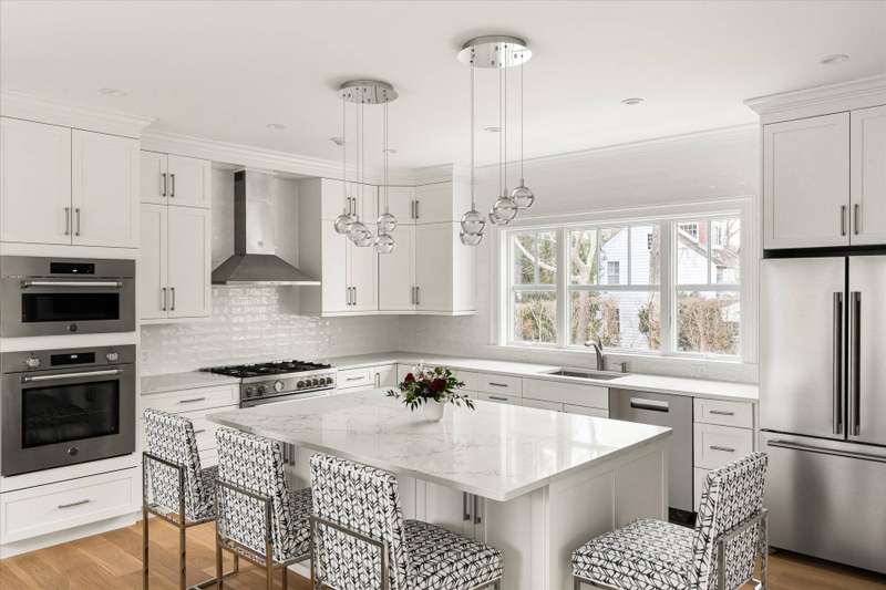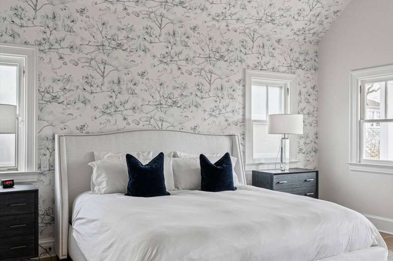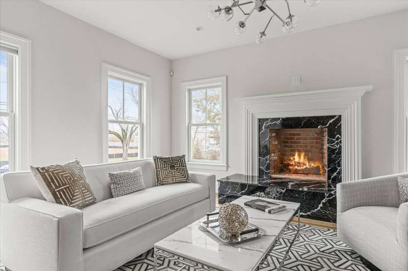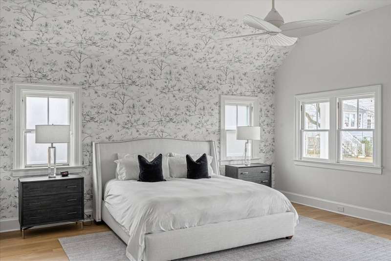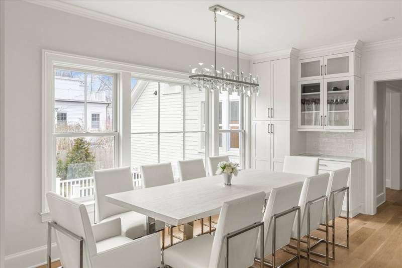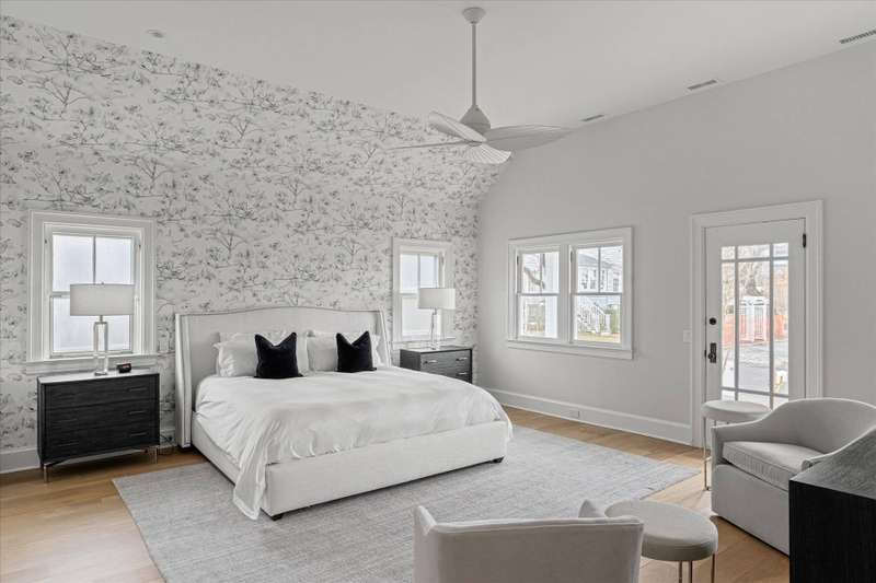 On coveted Glover Street in the heart of Sag Harbor Village is this beautifully and recently completed custom residence with designer decorated interiors by Mitchell Gold. With water views, this property is moments to the Main Street shopping, Long Wharf, and some of the most famous restaurants In the Hamptons. This 5 bedroom 5 1/2 bath house offers a first floor as well as a second floor primary suite with a fireplace. There is a formal living room with a fireplace as well as a large family room with another fireplace, all open to the professionally outfitted kitchen and dining areas. The glassed in porch offers the 4th fireplace, for cozy relaxation, cocktails or entertaining. The lower level is finished with radiant heated floors, gym, living space, wet bar, movie theater and bedroom with full and half baths and 2nd laundry. The vast lawn is flanked by a 14x28 heated Gunite pool. Finishing off this masterpiece is a free standing garage. This is an incredible package for the most discerning renter who appreciates fine design and outstanding location in the heart of Sag Harbor Village.