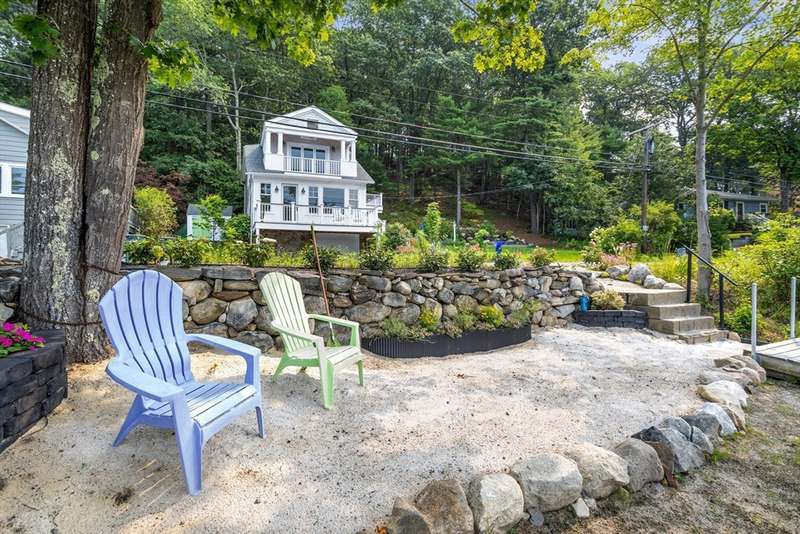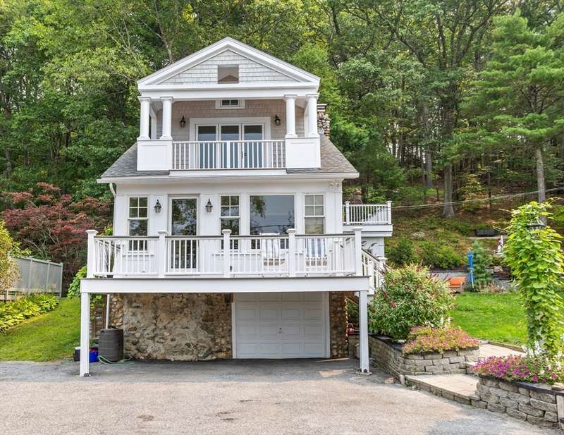 Your own slice of paradise! Private waterfront on Keyes Pond! Welcome to this extraordinary custom home that has been thoughtfully crafted to enjoy the spectacular surroundings. The front entry sets the tone for this oasis w/a bright living room w/center FP& built-ins, open to the dining room w/walls of windows & access to the deck overlooking the pond. The gourmet white kitchen features center island, stainless appliances, pantry & dining area & is open to the sunrm/family rm w/unobstructed views of the sweeping lawns, mature gardens, sun-filled patio & water w/private dock. 1st flr half bath w/laundry. 2nd flr is home to the primary suite w/walk-in closet, beamed vaulted ceilings & roof deck w/panoramic glass doors. Spa-like bath w/soaking tub, dual sinks & shower. 2 add'l bedrms & roof deck finish off this level. 118 of water frontage w/dock for fishing, boating & enjoying the good life! New "state of the art" septic system designed & installed for this pond location!