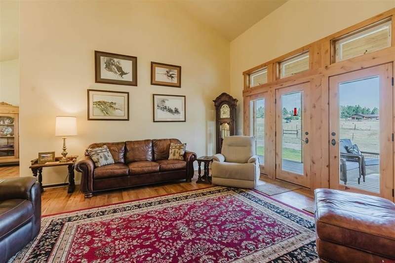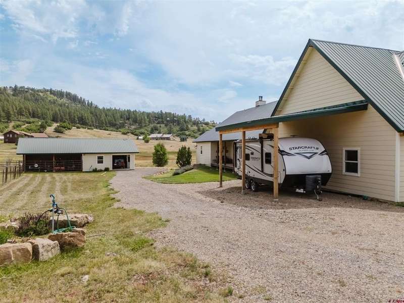 Alysha Ranson, Galles Properties, C: 970-903-1230, alysha@gallesproperties.com, www.crenmls.com: You'll notice that everything about this house has been well-planned out. This single-owner home in Martinez Mountain Estates, right across from Gate 5, gives you easy access to National Forest trails. The covered front porch leads into a single-level floor plan where the high ceilings create an open and welcoming feel to the home. The living room features hardwood floors, a wood burning fireplace, and French doors leading to the back covered porch for additional entertainment or relaxation space. In the kitchen, there’s no wasted space - just plenty of cabinets and a functional layout that makes storage simple. There are two main-level bedrooms plus an office that flexes with your needs as a potential third bedroom (without a closet). A breezeway takes you to the oversized main garage, sized for a large truck, a tractor, cars, and more, with storage to spare. Upstairs over the garage, the bonus room is ready for guests with a full bathroom already in place and plumbing stubbed for a kitchenette. Behind the garage, a covered RV/camper spot with hookups makes coming and going easy. And behind the home, a detached two-car garage and barn - with fencing already set up - make keeping horses or organizing bigger projects straightforward. This property is backed by Martinez Creek and greenbelt making it feel wide open in addition to bringing frequent wildlife through.