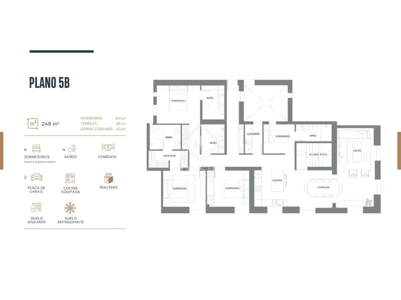 Lucas Fox presents this exclusive new build penthouse on Calle Padilla, in an elegant 1930s building in the heart of the Lista neighbourhood , within the prestigious Salamanca district. A unique opportunity to enjoy a high-end property in one of Madrid's most coveted areas , where classic architecture and contemporary comfort coexist in perfect harmony. This magnificent penthouse offers 203 m² spread over a bright and functional main floor , with four bedrooms and four bathrooms. Three of the bedrooms have private bathroom, while the fourth bedroom, also a double, has a separate bathroom . The property also features a utility room and a spacious living room dining room room with an open kitchen, facing north and with large windows that allow natural light to enter. The kitchen, fully equipped with high-end appliances , elegantly integrates into the living area. One of the main attractions of this property is its spectacular 85 m² private terrace, located on the top floor . It features a chill-out area , an exterior dining room , exclusive views, and a Jacuzzi that invites you to relax in a privileged setting. The property also includes underfloor heating and cooling, offering maximum comfort year-round. The property includes two parking spaces and a storage room on the building. Residents of this exclusive building can also enjoy fully equipped communal areas, including a fully equipped gym, a swimming pool, and communal gardens. This exceptionally designed penthouse is located in the Salamanca district, one of Madrid's most iconic and prestigious areas . The Lista neighbourhood stands out for its peaceful residential atmosphere, first-class dining options, and proximity to the city's main shopping areas . Contact us for more information or to arrange a visit.