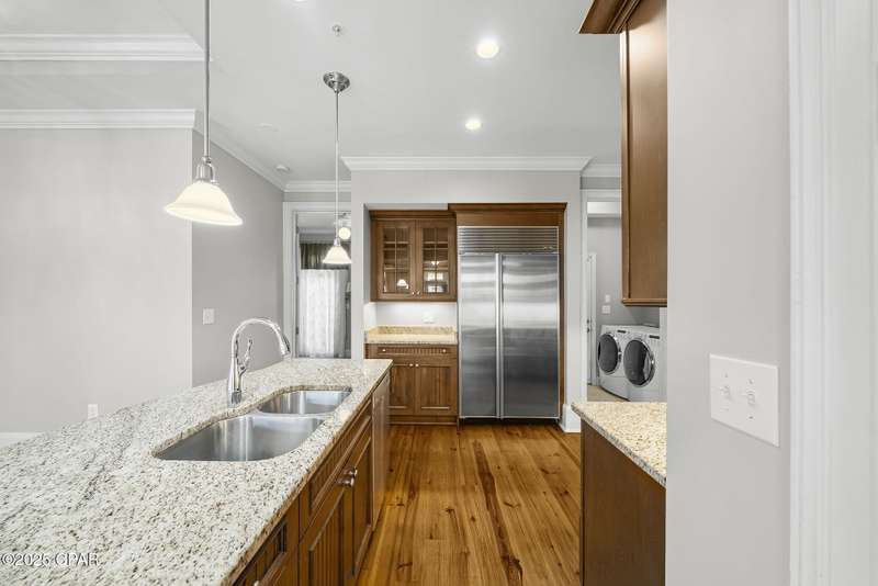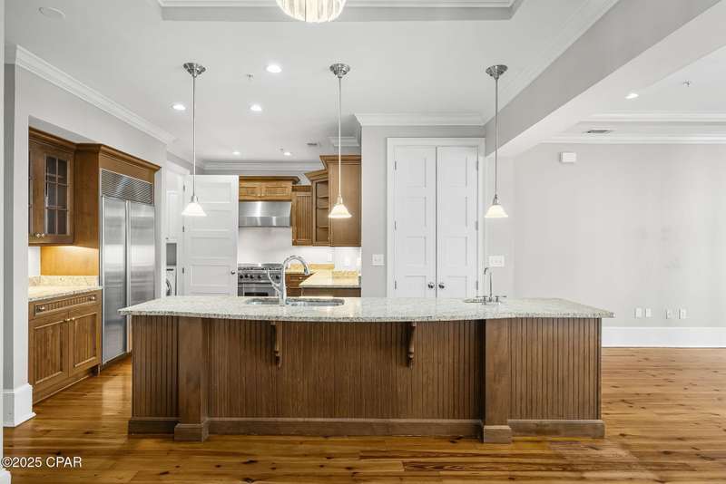 Step into this stunning 3-bedroom, 2.5-bath second-floor condo in Waterhaven-a private, gated, non-rental community set directly on the shores of St. Andrews Bay. Inside, you'll find elegant details throughout: crown molding, transom windows, and soaring vaulted ceilings that create a bright, open feel. The living area flows seamlessly to a spacious balcony through French doors, offering a perfect setting for morning coffee or evening gatherings overlooking the heart of the community. The home has been thoughtfully upgraded with remodeled bathrooms, including a luxurious master suite featuring a custom tile shower and soaking tub. In the kitchen, enjoy top-tier finishes with a Sub-Zero refrigerator and Viking appliances, elevating both style and function. Waterhaven sets the standard for luxury amenities: Resort-style pool and sun deck Clubhouse with movie theater, meeting space, and full kitchen Fitness center and outdoor kitchen for entertaining One of the area's largest private piers, ideal for fishing, evening strolls, or watching unforgettable bayfront sunrises With its high-end upgrades, unmatched amenities, and prime waterfront location, this condo isn't just a home-it's a lifestyle.