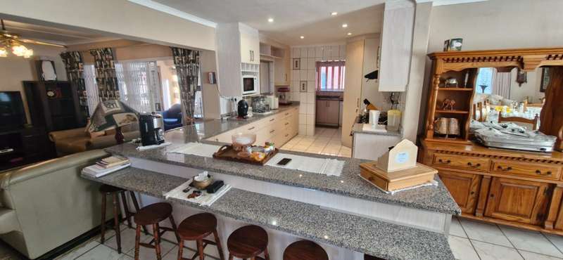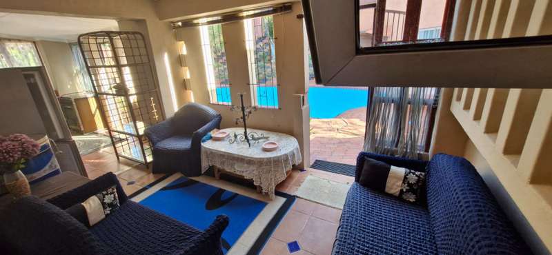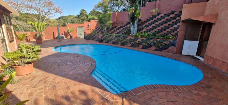 Live your dream and invest in this property that has income generating opportunities in Trafalgar on the South Coast of KwaZulu Natal. The main dwelling offers open plan living with three separate living areas, and dining room which surrounds the modern kitchen with a separate scullery. The three spacious bedrooms, main on suite, two full bathrooms and separate toilet completes the upper level of the house. The enclosed entertainment patio leads out onto the outside paved pool area. Separate entrance to separate accommodation and parking. The additional flatlet at the back with an upstairs kitchen and living area can be utilised for additional accommodation. Three water tanks connected to the dwelling, solar and invertor system have addressed the inconvenience of outages. Covered parking for three vehicles and located in the well-established and maintained garden. Secure property with electric fence and area patrolled by security company. A variety of amenities, which include restaurants and the local pub, are conveniently located nearby. New and different experiences like dolphin and whale watching, diving sites, surfing, the butterfly sanctuary and the Sardine-run can be enjoyed throughout the year. For the golfers there are six different golf courses within driving distance adding to this unforgettable destination of the South Coast of Kwa Zulu Natal. Southbroom village nearby offers a variety of establishments, ranging from restaurants, shops, doctors, dentists, vets and more. Margate airport, the hospital and other amenities from schools, shops, etc. are within a few kilometres radius.