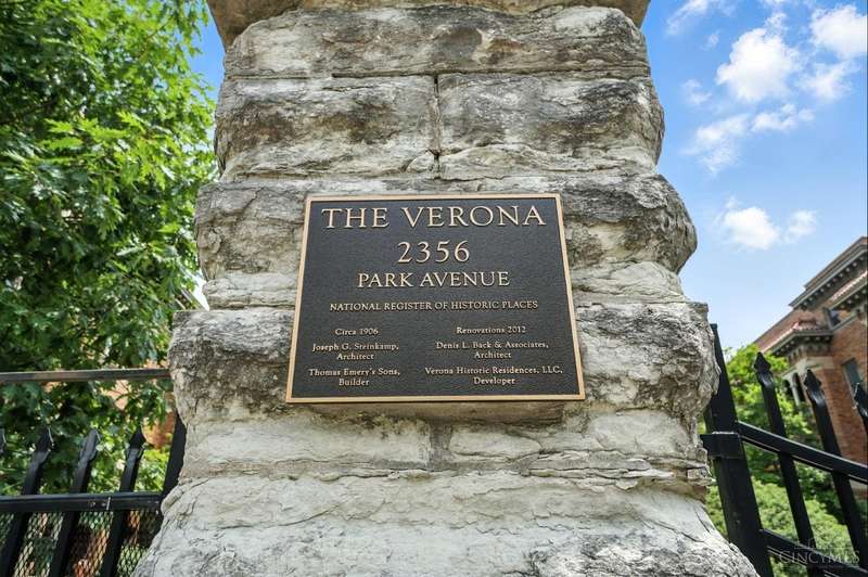 Sophisticated first-floor living in this elegantly appointed condo in historic Walnut Hills. The Verona, built in 1906, blends stunning Italianate architecture with timeless charm and modern convenience. This beautifully updated home features soaring ceilings, gleaming hardwood floors, and a chef's kitchen with granite counters and stainless steel appliances. The open-concept layout leads to a private balcony with peaceful fountain views. Enjoy in-unit laundry, designated parking, and a prime location near Eden Park, downtown, and Hyde Park. Schedule your tour today!