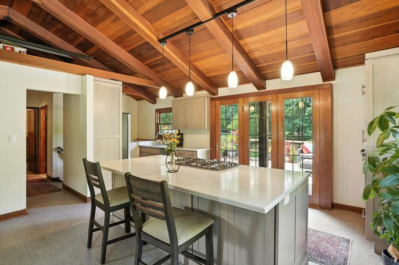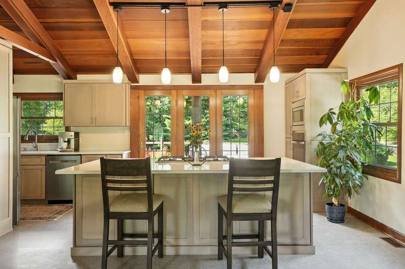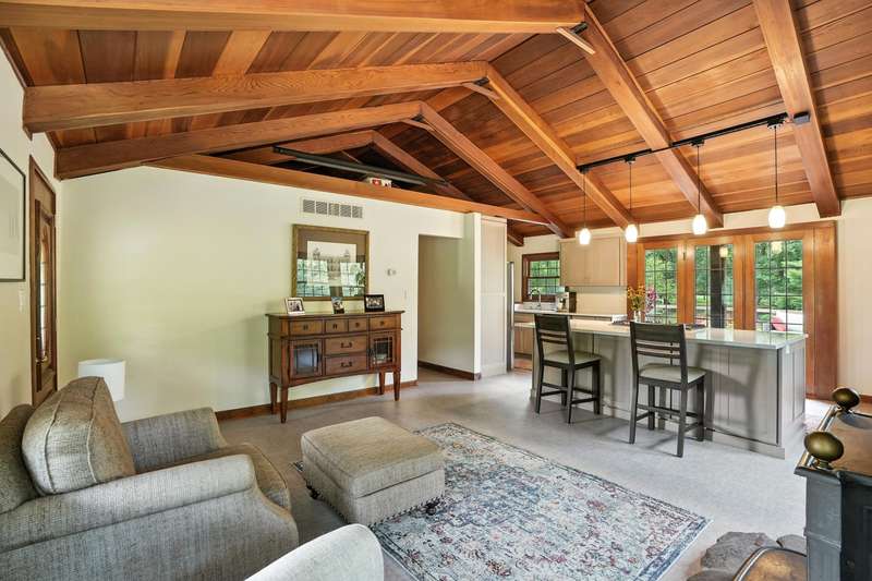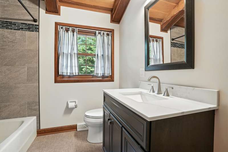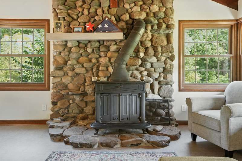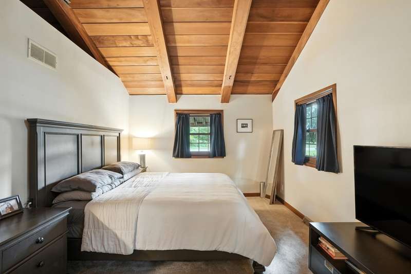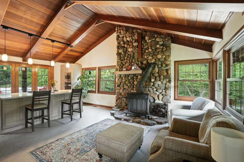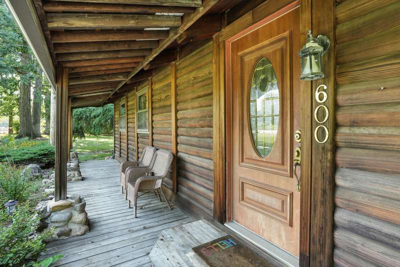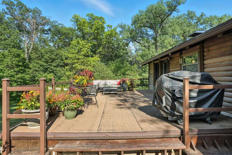 HOME.SWEET.HOME. This one-of-a-kind gem offers a RARE OPPORTUNITY to enjoy all of the country charm in the heart of the city. Highlights of this redwood log home include an open concept main level with beautiful redwood vaulted ceilings, custom kitchen cabinetry, a large island with built-in cooktop, quartz countertops, stainless steel appliances (included), new flooring throughout, stone wall/hearth with woodburning stove in the living room on the main level, main floor laundry in the primary bedroom (washer/dryer included) and completely updated main floor bathroom. The new custom staircase leads you to the walkout lower level where you will find more custom cabinetry, new luxury vinyl flooring, a brand new 3/4 bath and a beautiful wood burning stone fireplace with carved mantle, a true focal point. The picturesque .79-acre homesite is a charming space to relax, connect with nature and take in the beauty of the impressive landscape. So many options...from the covered front porch, the multi-level composite deck, the hot tub or the fire pit, RELAX, YOU'RE HOME...Composite decking 2023. Hot tub 2023 (included). New concrete driveway 2023. Tankless on- demand hot water heater 2022. All new plumbing 2022. Conveniently located close to major highways, hospital, new park and community pool, downtown/ lakefront area, dining and shopping.