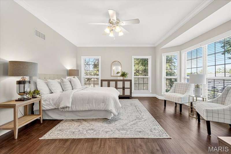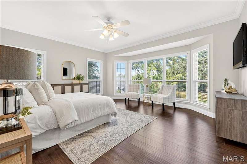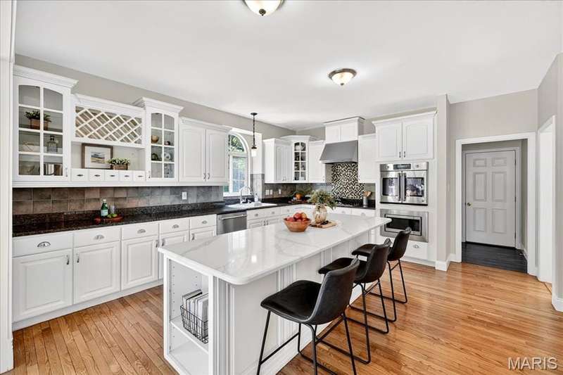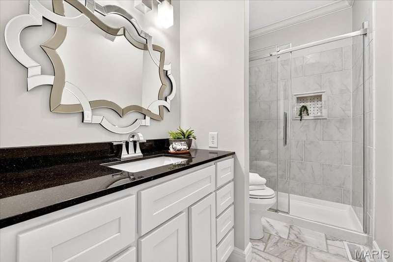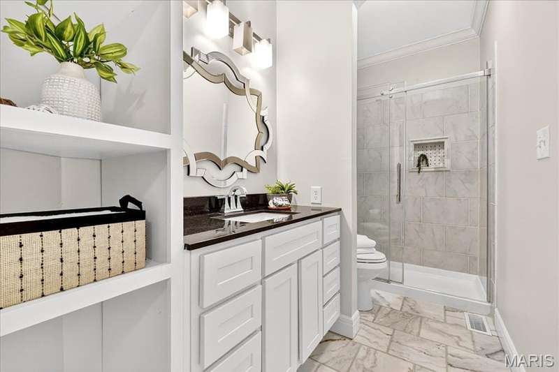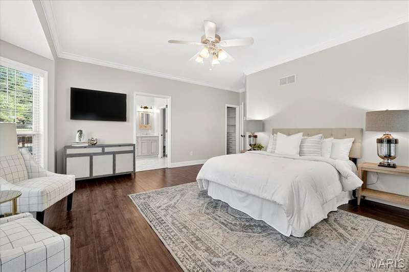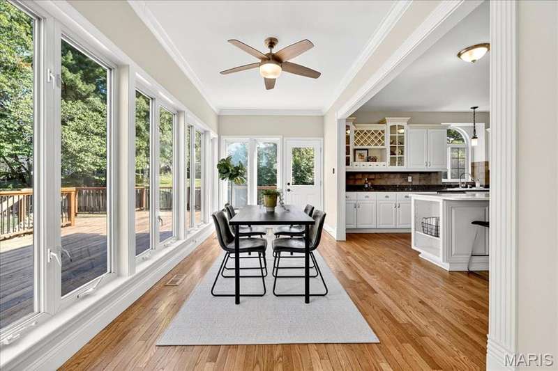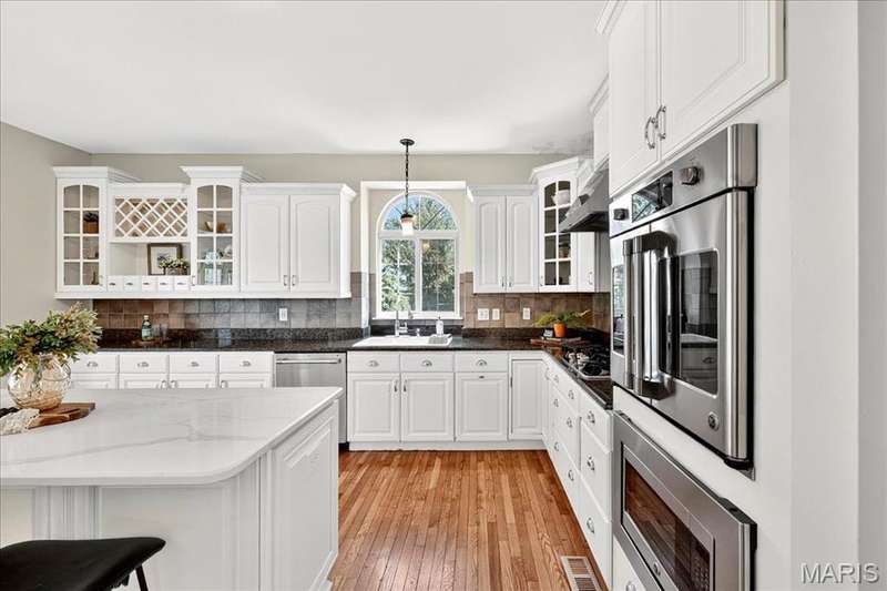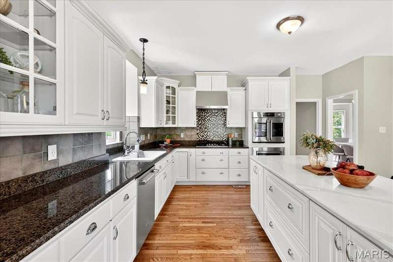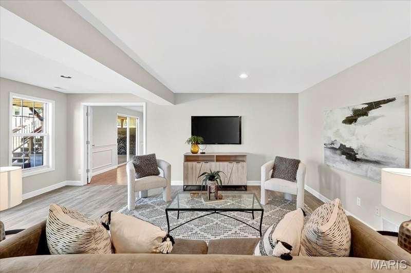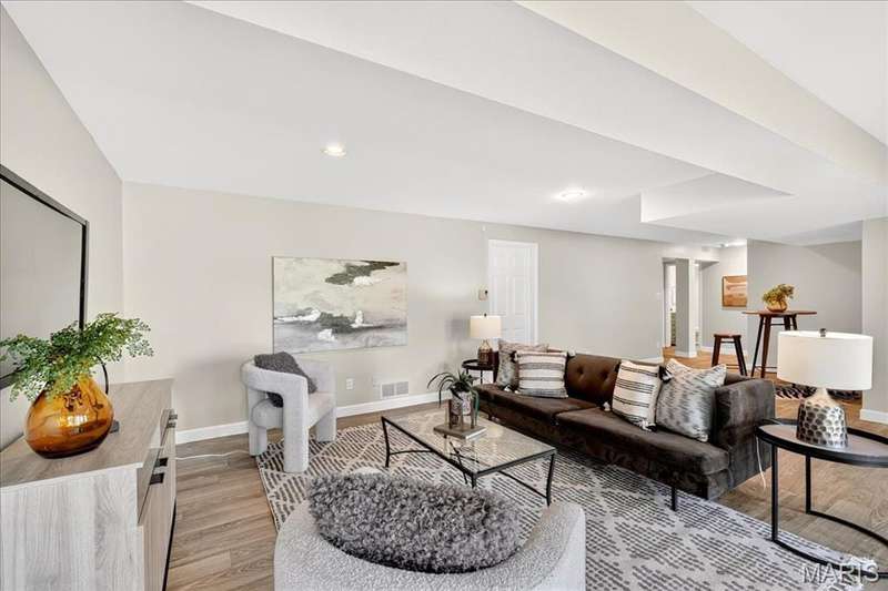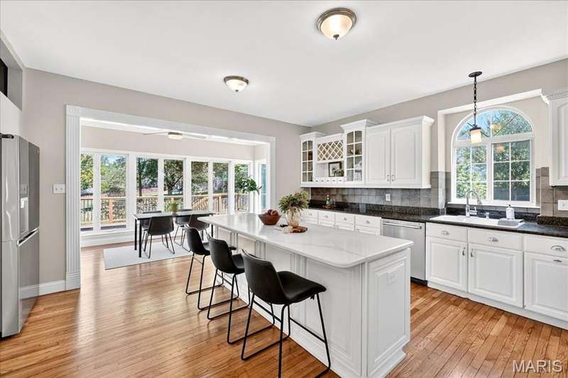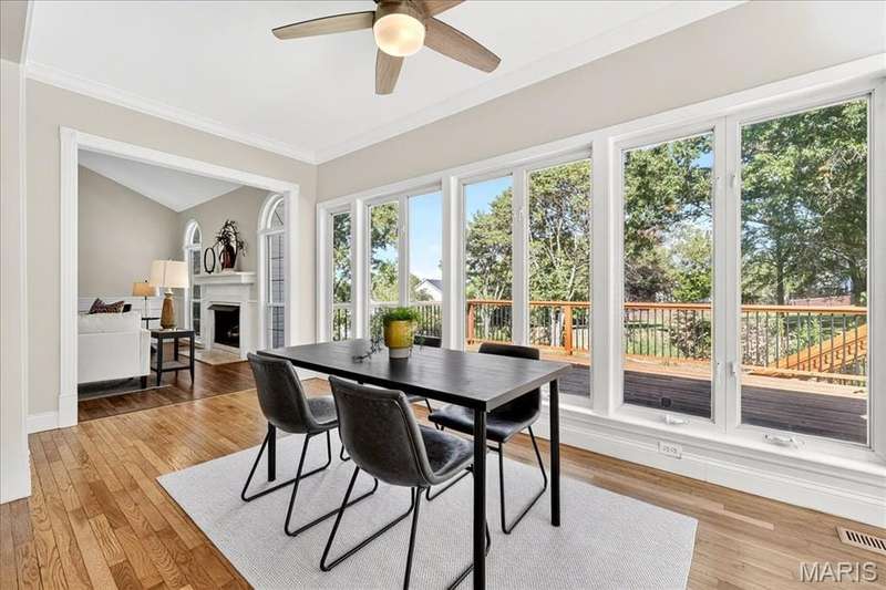Beautifully maintained ranch-style home with a spacious walk-out lower level. The inviting great room with a cozy fireplace flows seamlessly into the large kitchen and breakfast/sunroom, where a wall of windows showcases views of the oversized deck and backyard. The main level features three bedrooms, including a primary suite with a spa-like bath that includes a soaking tub, a separate shower, and a spacious walk-in closet. Hardwood floors run throughout the main level, while the kitchen boasts a generous center island, 42 cabinets, and granite countertops.The finished lower level expands the living space with a huge family room, a versatile bonus room perfect for crafts or play, plus a fourth bedroom with its own en-suite bath. Ample storage remains in the unfinished area. Additional highlights include a two-car garage and numerous updates, including a new roof, gutters, siding, updated electrical panel, and garage door. Conveniently located near shopping, dining, and major highways.