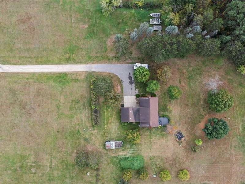 Welcome to your next hobby farm! This property has a total of almost 6 acres and is outside city limits. There are so many possibilities with this property! This house has many fun characteristics - beautiful kitchen cabinets, the wooden beams in the living area, and the outdoor balcony connected to the master bedroom upstairs, and more! This property offers plenty of space both inside and outside. Don't forget to check out the cute bridge in the woods that goes over a small creek!