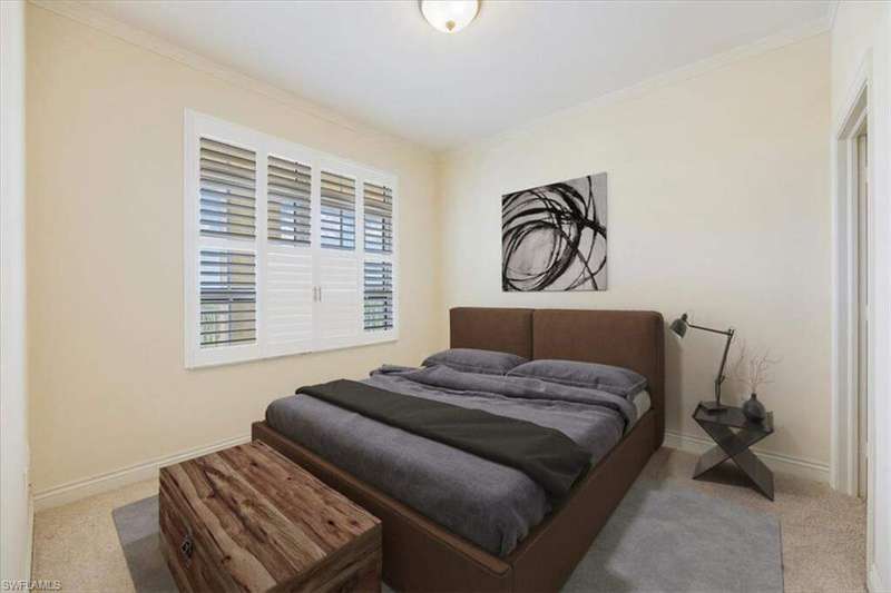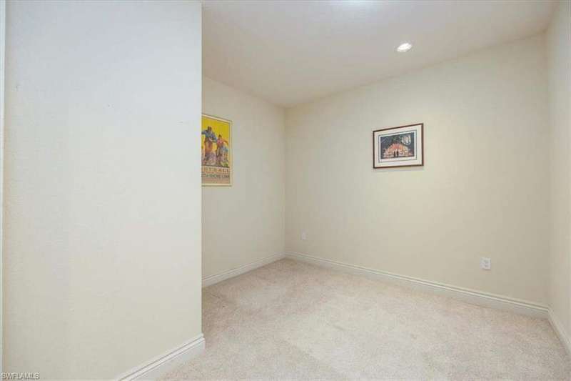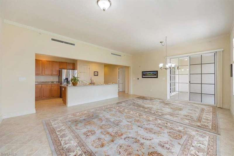 Welcome to The Residences at La Piazza in Ave Maria, an exclusive community of just 70 luxury condos - all within walking distance of town. This 3-bedroom+den, 3-bathroom condo offers a private balcony with beautiful views of the town center. Inside you will find luxury living with an eat in kitchen, great room, nicely finished bathrooms, French doors to the owner's suite. The condo with updated appliances and AC unit offers high-end finishes like crown molding, granite countertops, plantation shutters, and impact-resistant windows. Building 5 has covered 'garage like' parking spaces - highly valued by owners The condos at La Piazza feature a private community pool, a nearby fitness center, and secure parking. Experience year around town events, University sports and cultural events, a full library, dining, shopping, academic lectures, golf and much, much more. And finally, drive to Naples' beaches within an hour's driving time.