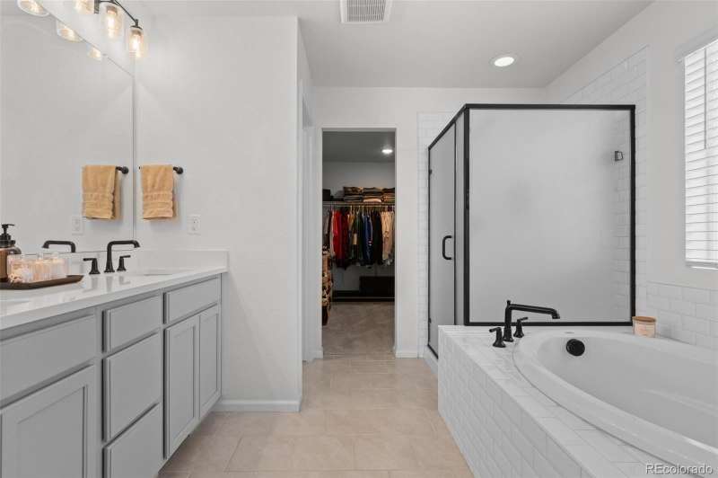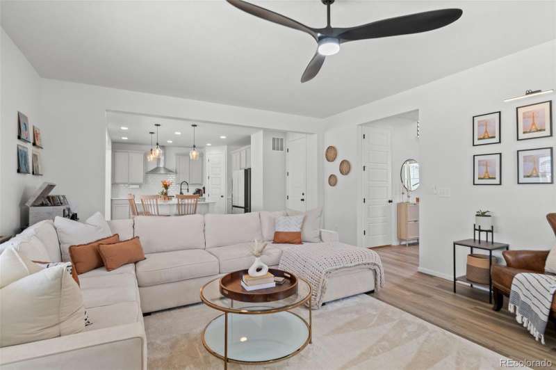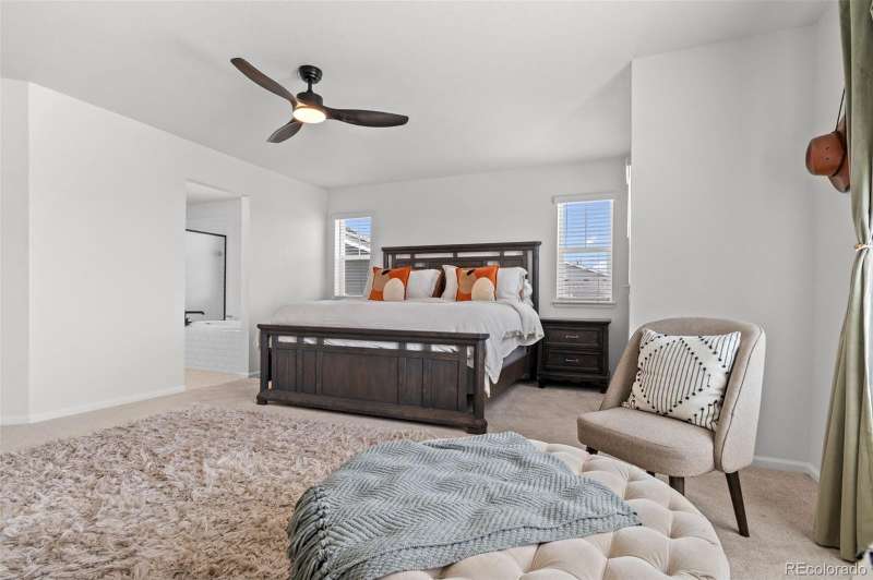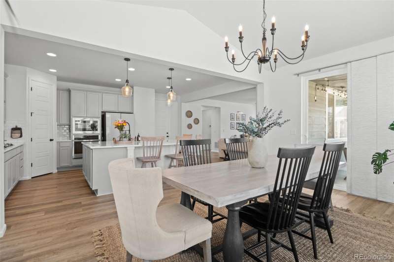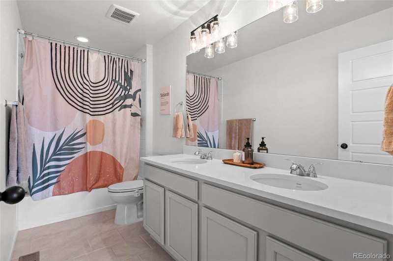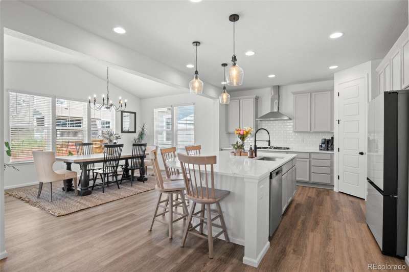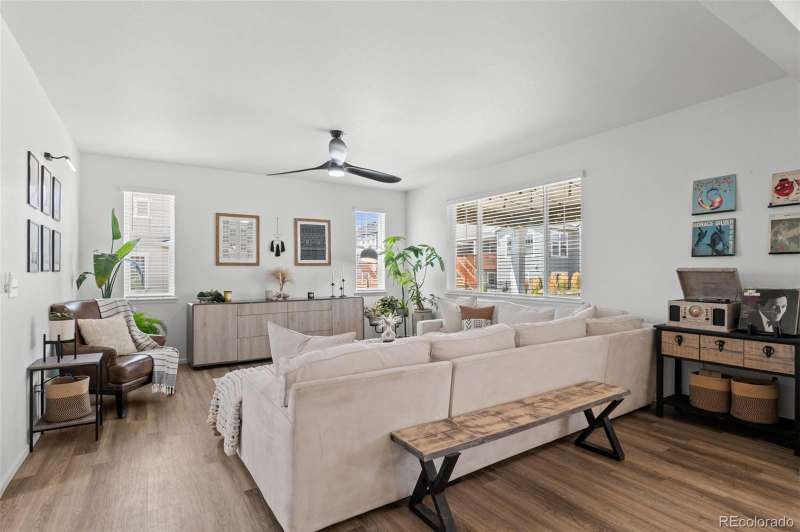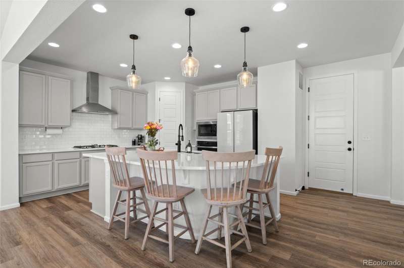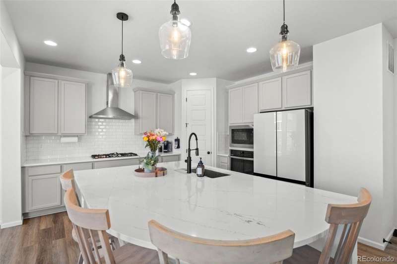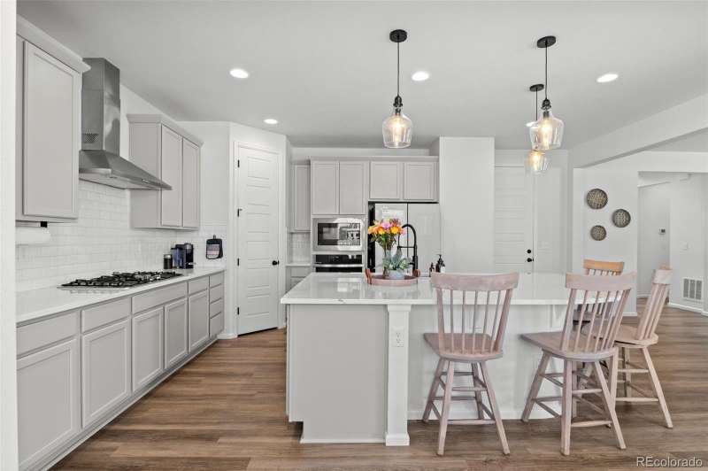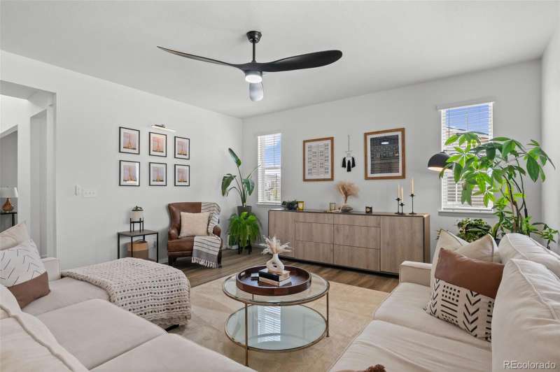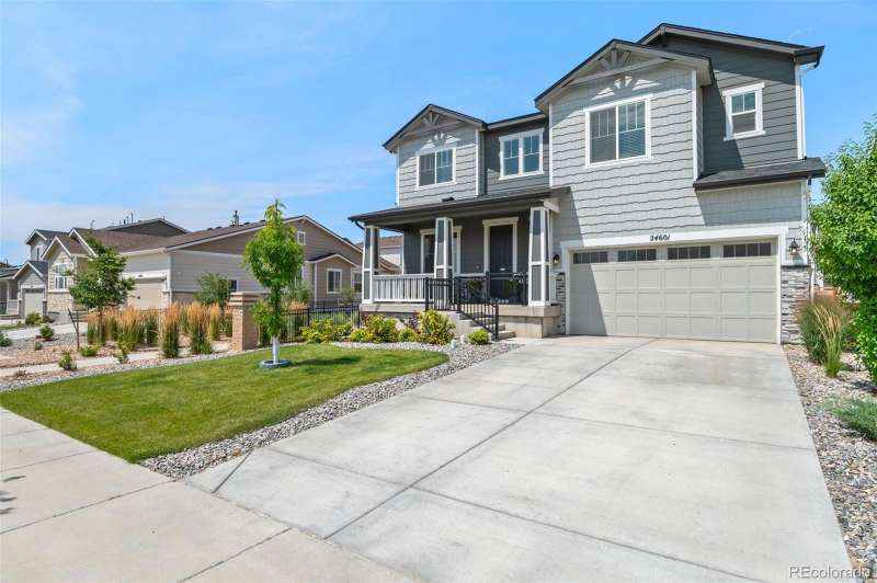 Why wait to build when your dream home is already here? Perfectly blending modern design, thoughtful upgrades, and easy living, this move-in-ready home in the vibrant Aurora Highlands community feels brand-new but without the wait. Step inside and youll immediately notice the elevated details: luxury vinyl plank flooring, tall 8-foot doors, and designer lighting that make every room feel bright and inviting. The open floor plan connects the great room, dining area, and kitchen, creating a natural flow for everyday living and entertaining. The sunroom fills the space with natural light, while the covered patio extends your living area outdoors for morning coffee or summer dinners. The gourmet kitchen is a showstopper with quartz countertops, soft-close cabinetry, roll-out shelves, and GE stainless steel appliances, including a 36 gas cooktop, wall oven, and sleek hood vent. Upstairs, four spacious bedrooms include a luxurious primary suite with a spa-like bath and massive walk-in closet. The finished basement adds incredible flexibility, featuring a large rec room wired for surround sound which is perfect for movie nights, game days, or a second living area. A full bath and private fifth bedroom make it ideal for guests or multi-generational living. Every detail has been considered, from quartz counters in every bathroom and custom window coverings to ceiling fans in every room and a built-in gas line for your BBQ. All the upgrades are done: no construction, no delays, just a beautiful, modern home ready for you to move in and start living. In Aurora Highlands, youll enjoy parks, trails, community events, and easy access to shopping, dining, and DIA. Everything you need for a connected, active lifestyle. Come experience the perfect balance of comfort, style, and convenience, youve found the one.