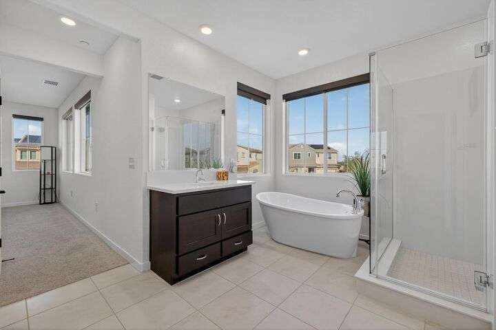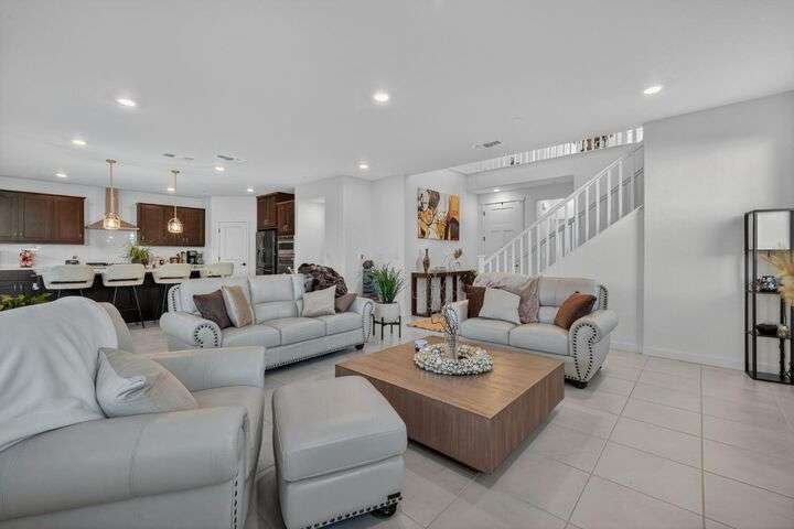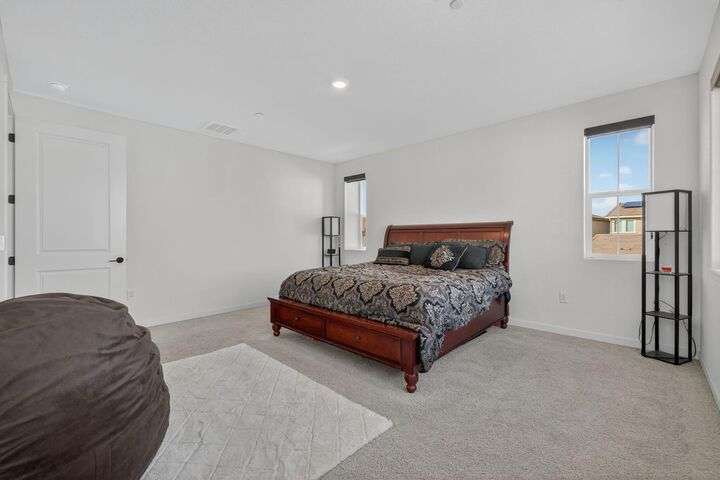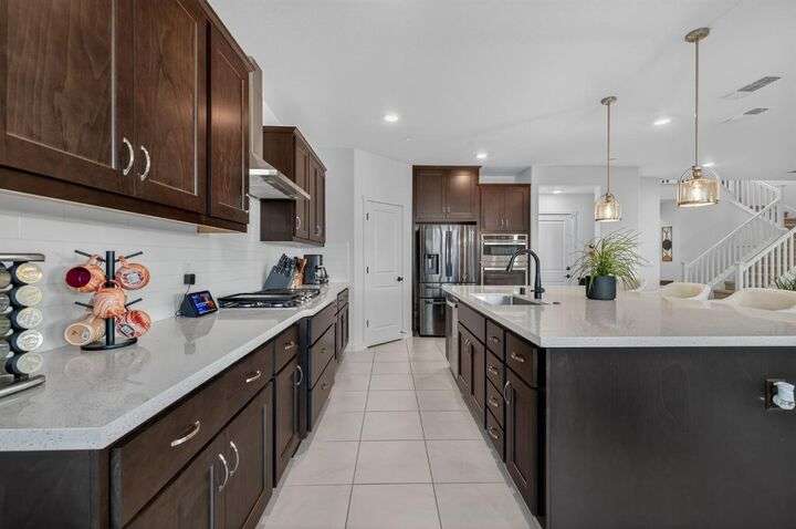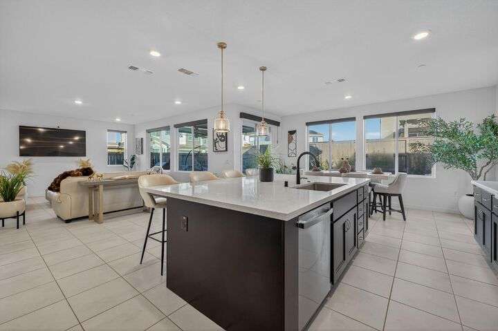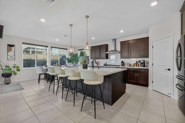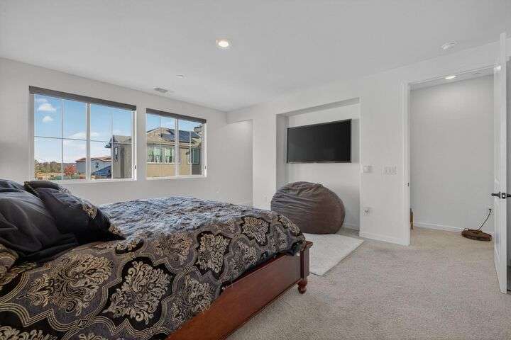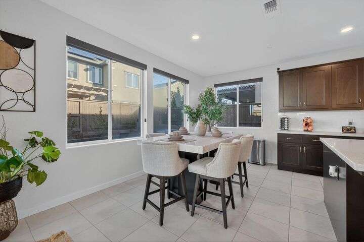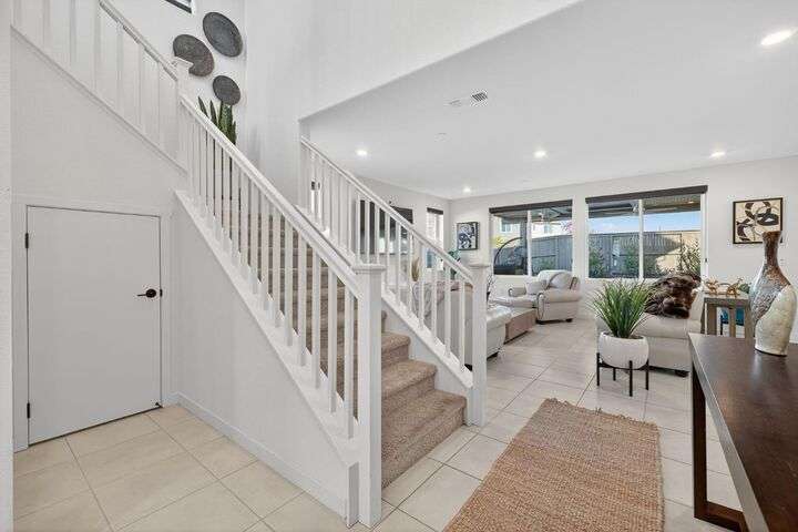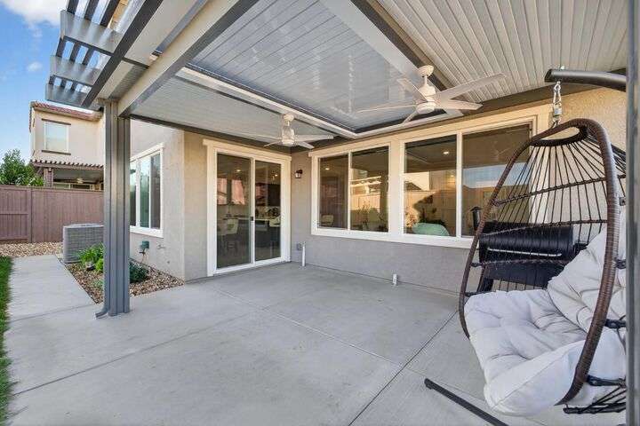 Experience elevated living in the prestigious Serrano Village J7, a gated enclave celebrated for its beauty, security, and prime location. Conveniently close to Hwy 50, Town Center, and scenic walking trails, this nearly new residence just one year old offers modern design and refined comfort. The open-concept floor plan highlights a gourmet kitchen with high-end finishes, flowing seamlessly into bright and inviting living spaces. Upstairs, a versatile loft provides flexibility as a home office, media room, or play space. The professionally landscaped backyard features a brand-new aluminum pergola with remote-controlled shade and an intimate fire-pit seating area, perfect for entertaining. Situated on a desirable corner lot with no side neighbor, the home is equipped with solar for energy-efficient living. A rare Serrano opportunity combining luxury, convenience, and pristine condition.