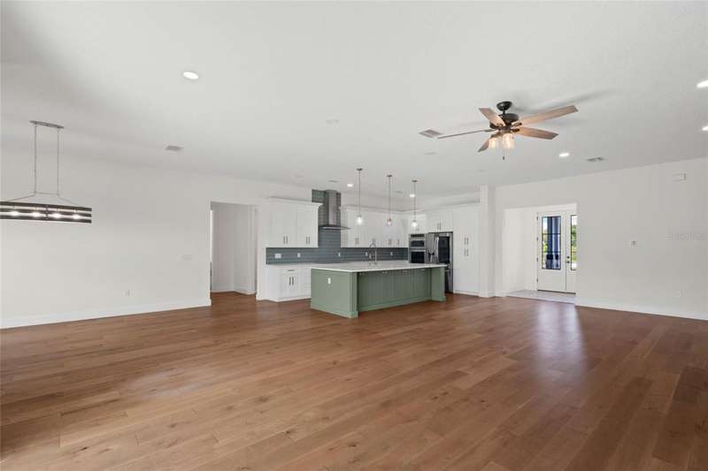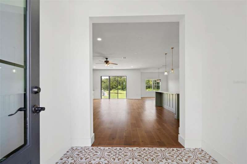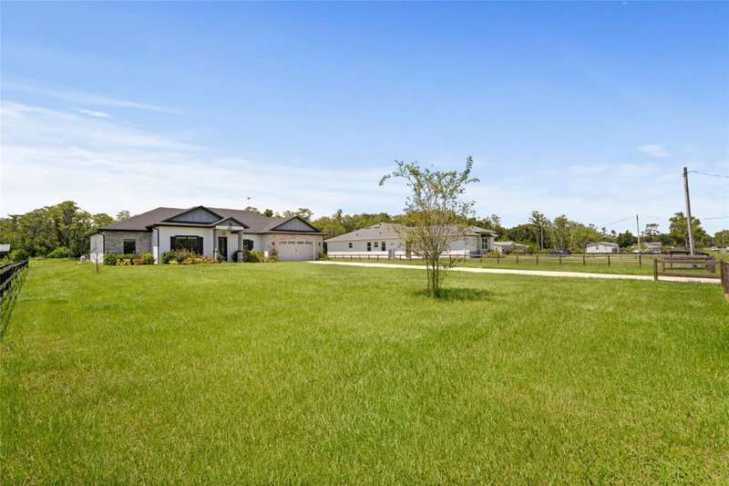 Looking for an almost brand new home on acreage with NO HOA? Look no further! This custom-built 4 bedroom, 2.5 bathroom home offers 2,582 sq. ft. of thoughtfully designed living space, perfect for a growing family.The gourmet kitchen is a showstopper, featuring a butler's pantry, quartz countertops, center island, farmhouse sink, pull-out garbage cabinet, designer backsplash, chimney-style range hood, built-in oven & microwave, and a breakfast bar.The spacious great room boasts built-in cabinets, custom counters, and an electric fireplace-perfect for cozy evenings. The luxurious master suite includes a tray ceiling, oversized walk-in closet, hardwood floors, a soaker tub, separate shower, dual vanities, and linen cabinets.Additional upgrades include: 5 1/4 baseboards & crown molding Ceiling fans throughout Double-pane insulated windows Rain gutters & 3-panel sliding glass pocket door Motion detectors, water softener, & soft-close cabinetry Bluetooth speakers in all bathrooms TV hookup on the back patioThis home is built with concrete block, gable board, and Hardie board siding for long-lasting durability. Hardwood floors flow throughout the home, with carpet in three bedrooms. Lot dimensions are approximately 110' x 593' x 110' x 597', offering plenty of space for outdoor enjoyment.