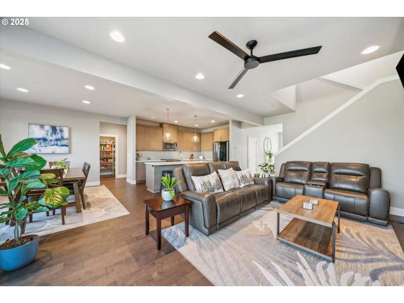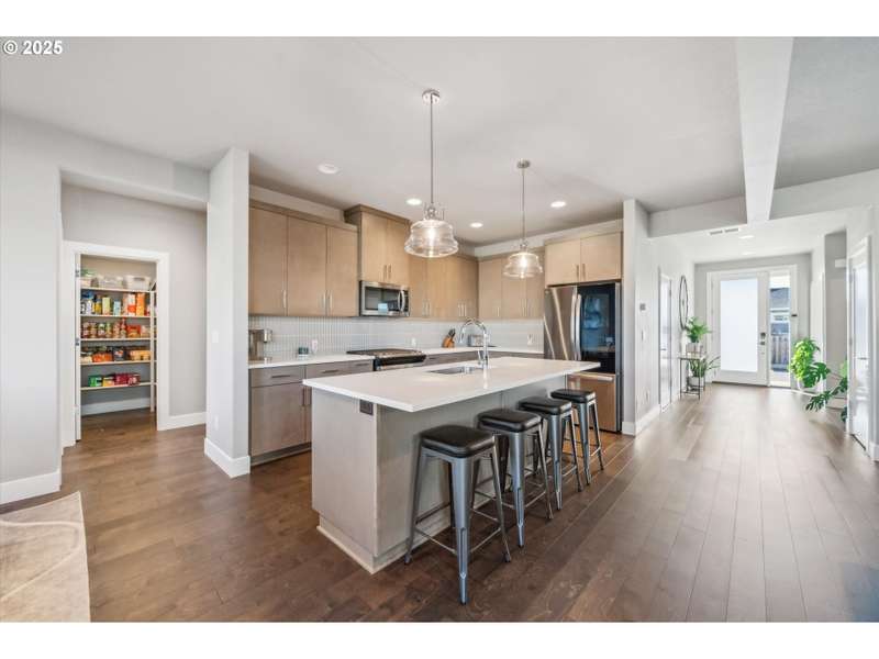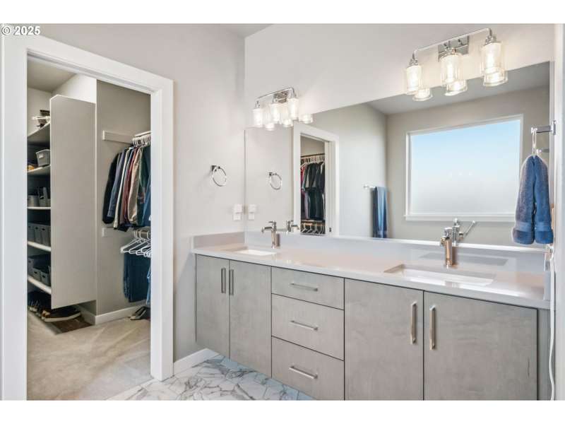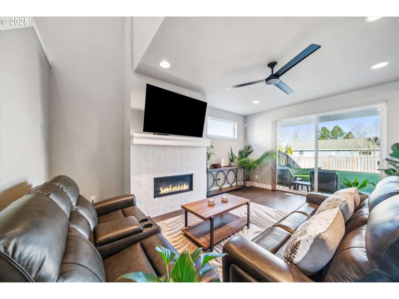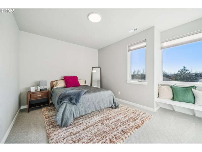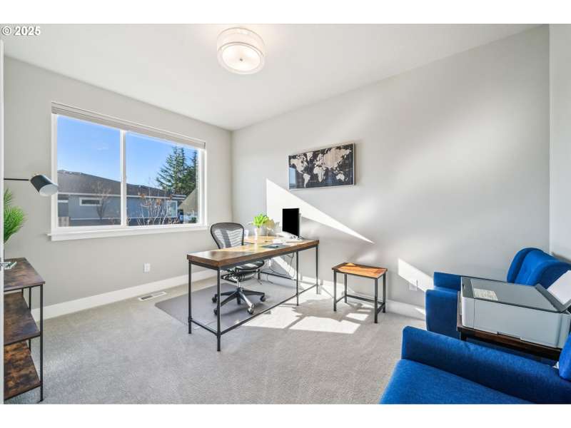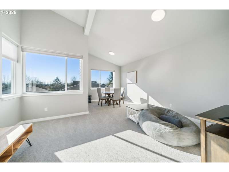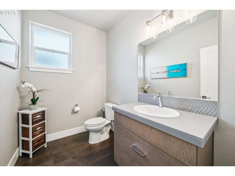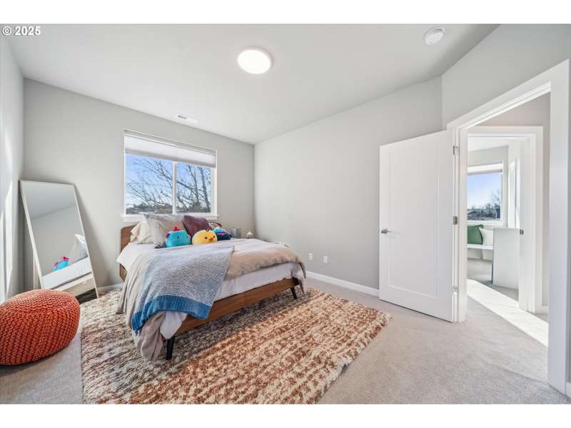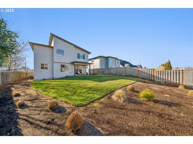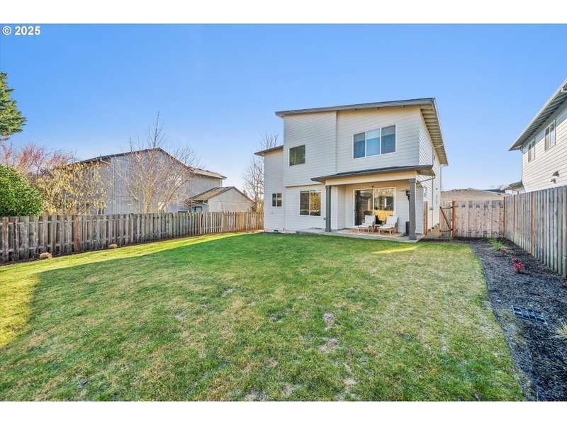 This contemporary, custom-built home spotlights a beautifully landscaped and fenced backyard. It sits in a quiet cul-de-sac, and the main level features an open concept, designer finishes, a chef's kitchen with a large island, gas appliances, a 4th bedroom or den, and sliding doors that lead to a spacious yard. The primary bedroom, with its vaulted ceilings, is highlighted by a suite with spa-like qualities and a walk-in closet. [Home Energy Score = 5. HES Report at https://rpt.greenbuildingregistry.com/hes/OR10235500]