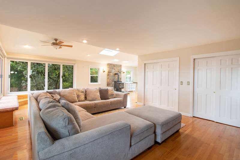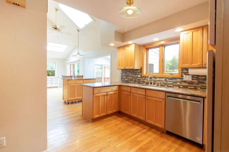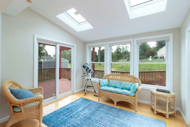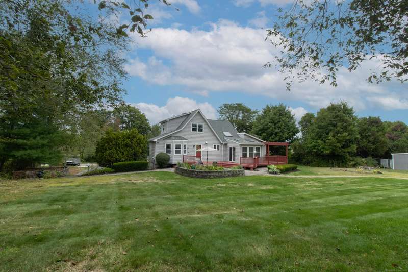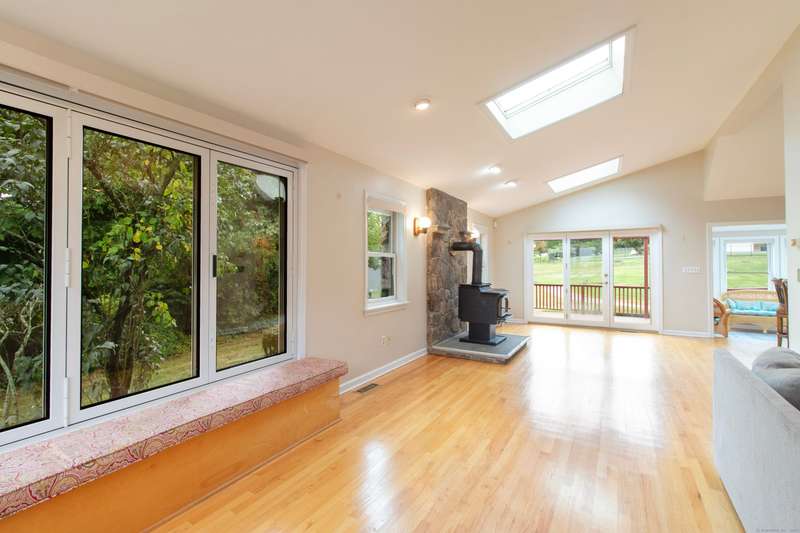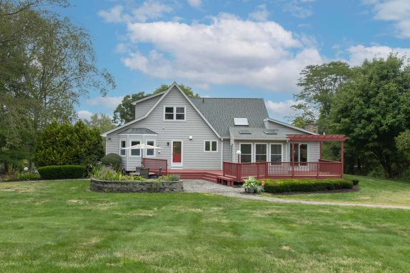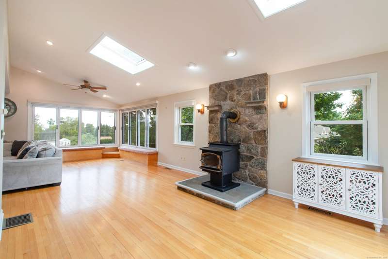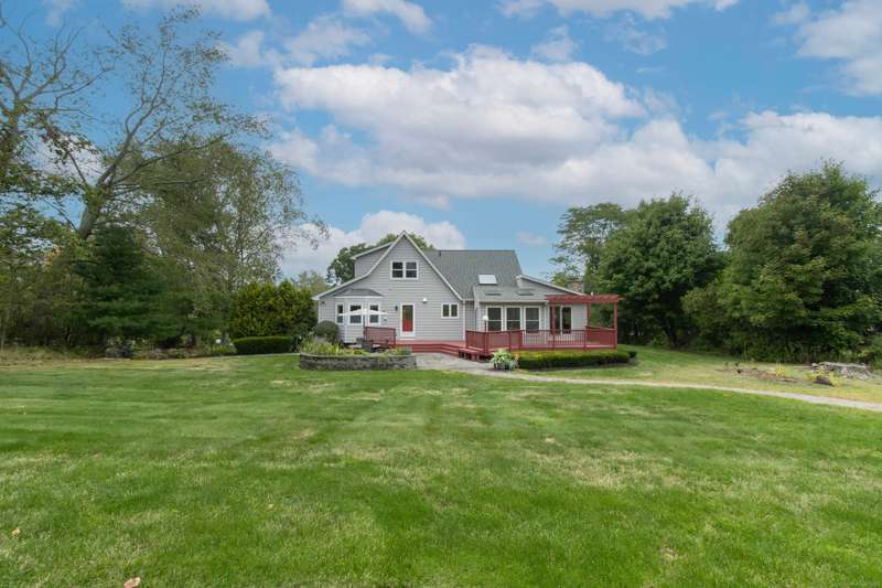 Welcome to this stunning home perched on a scenic cul-de-sac offering excellent price support & exceptional curb appeal. Set on a beautifully landscaped acre, the exterior features cedar-impressed siding, striking stone accents, & charming stone walls framed by lush plantings. Step inside to a bright, sun-filled open floor plan w/walls of windows that bring the outdoors into every room. The tile entry leads to an inviting eat-in kitchen w/maple cabinetry, granite counters, tiled backsplash, & a breakfast bar. Just off the kitchen, a cozy sunroom w/sliders access to the patio and pergola makes the perfect spot for morning coffee while overlooking the gorgeous backyard. The main level also includes a formal living room & dining room, seamlessly connected for entertaining, plus a spacious family room lined with windows for natural light. A full bath with tub/shower, a half bath, & a generously sized laundry room complete this level. Upstairs boasts a king-size primary bedroom with double closets, and two queen-size bedrooms - all serviced by a beautifully appointed full bath w/custom tile shower. The lower level offers endless options -whether you're dreaming of a home gym, recreation space, or hobby area & walks out to the front of the property. Peace of mind comes with recent updates, including a 7-year-old AC system, 10-year-old furnace, 5-year-old roof, & a transferable CT Basement System warranty & city water/sewer. This smart energy efficient home is not to be missed!
