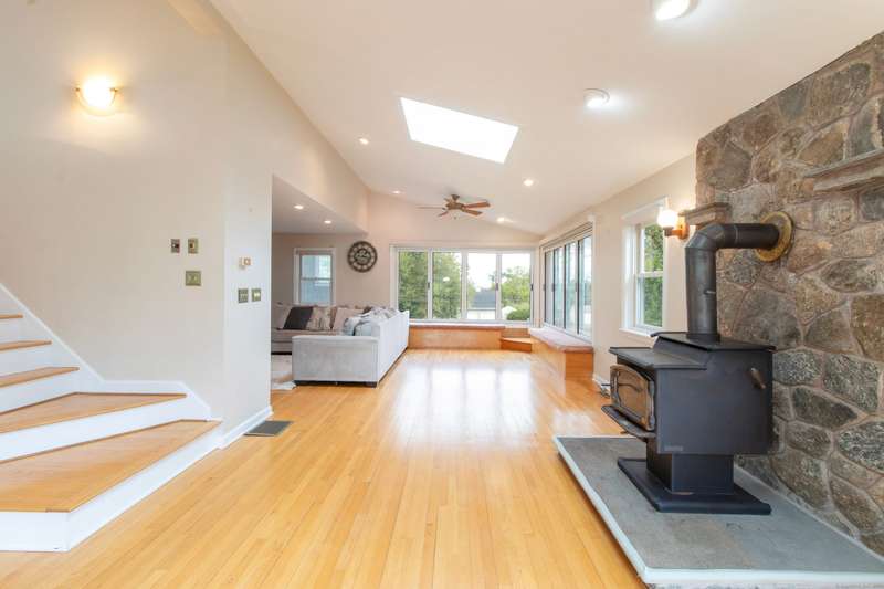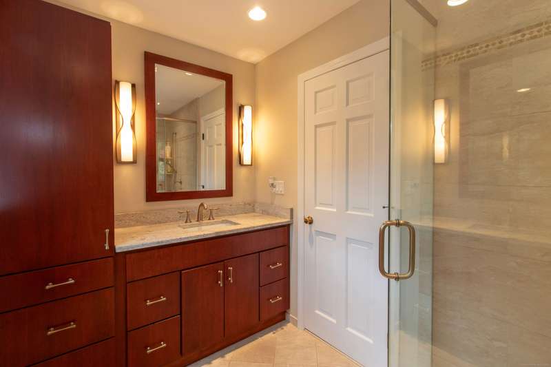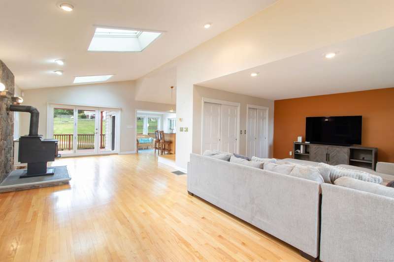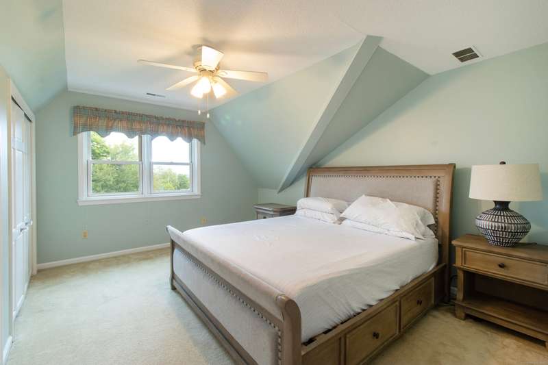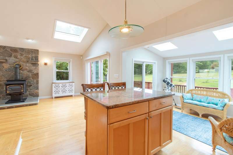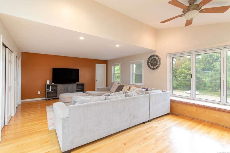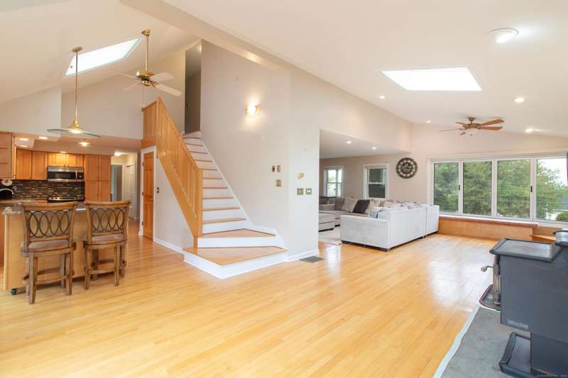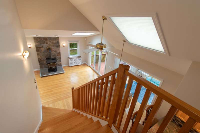 Welcome to this stunning home perched on a scenic cul-de-sac offering excellent price support & exceptional curb appeal. Set on a beautifully landscaped acre, the exterior features cedar-impressed siding, striking stone accents, & charming stone walls framed by lush plantings. Step inside to a bright, sun-filled open floor plan w/walls of windows that bring the outdoors into every room. The tile entry leads to an inviting eat-in kitchen w/maple cabinetry, granite counters, tiled backsplash, & a breakfast bar. Just off the kitchen, a cozy sunroom w/sliders access to the patio and pergola makes the perfect spot for morning coffee while overlooking the gorgeous backyard. The main level also includes a formal living room & dining room, seamlessly connected for entertaining, plus a spacious family room lined with windows for natural light. A full bath with tub/shower, a half bath, & a generously sized laundry room complete this level. Upstairs boasts a king-size primary bedroom with double closets, and two queen-size bedrooms - all serviced by a beautifully appointed full bath w/custom tile shower. The lower level offers endless options -whether you're dreaming of a home gym, recreation space, or hobby area & walks out to the front of the property. Peace of mind comes with recent updates, including a 7-year-old AC system, 10-year-old furnace, 5-year-old roof, & a transferable CT Basement System warranty & city water/sewer. This smart energy efficient home is not to be missed!