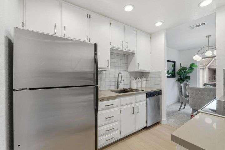 Welcome to this top floor 2 bed and 2 bath move-in ready condo. Recent upgrades include new carpet, new LVP flooring, and new interior wall paint, giving the home a modern and inviting feel. The spacious living room offers soaring vaulted ceilings and abundant natural light, creating an open and airy ambiance. Step outside to your private balcony overlooking a peaceful greenbelt, complete with a storage closet for added convenience. This home also includes a rare oversized 1-car garage with extended length, ideal for a workshop, home gym, or extra storage while still accommodating your vehicle. Additional features include in-unit laundry and plenty of guest parking. Ideally located just minutes from The Pruneyard, Downtown Campbell, Willow Glen, and Los Gatos, you will have easy access to some of the best shopping, dining, and entertainment the South Bay has to offer.