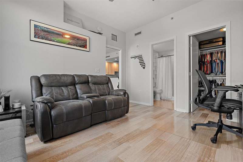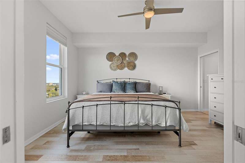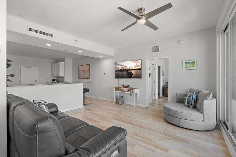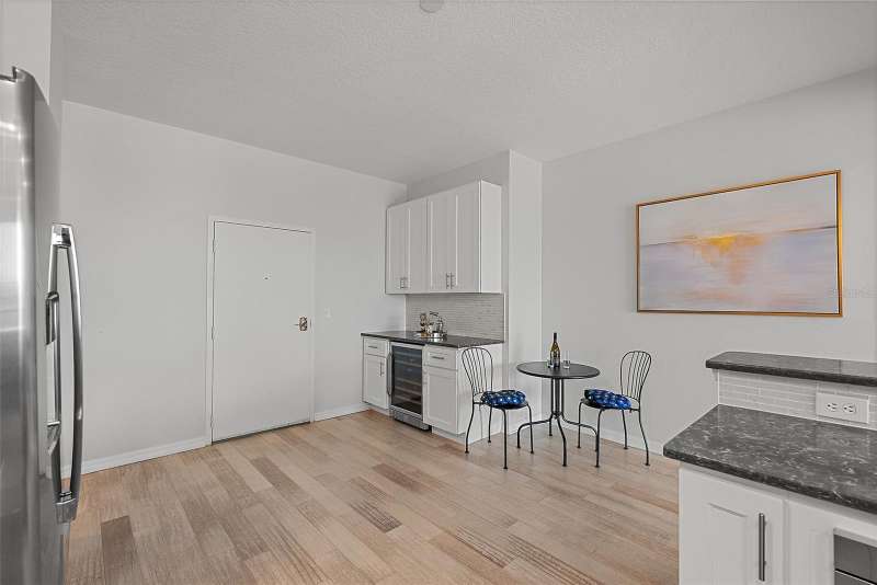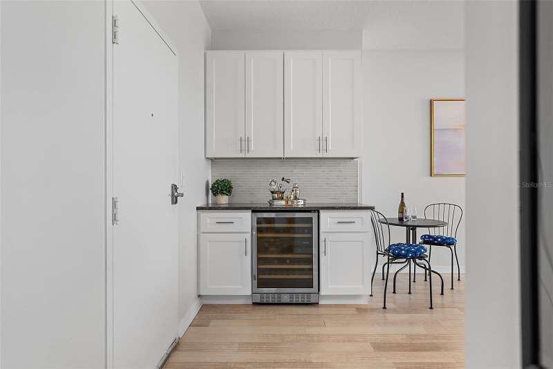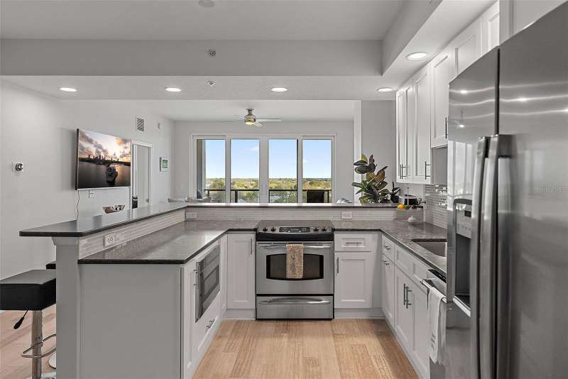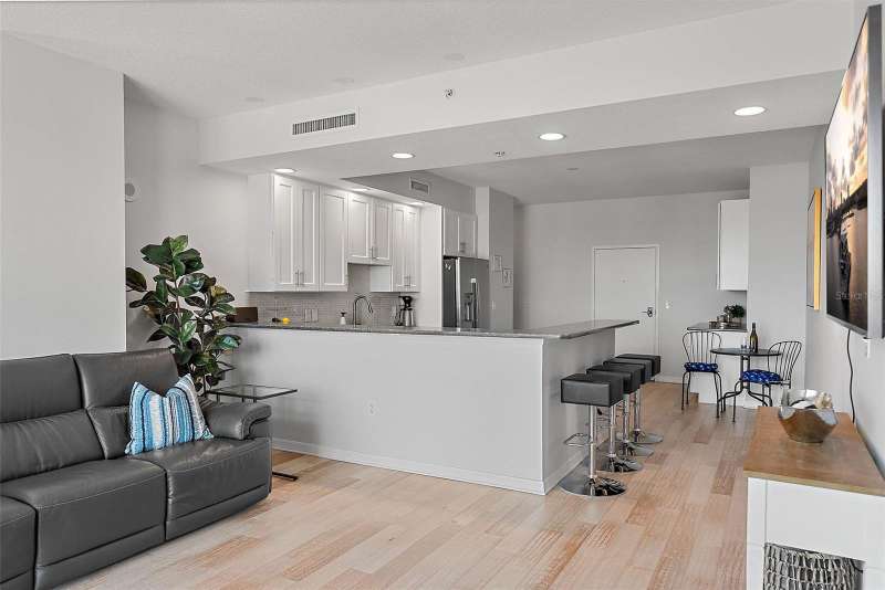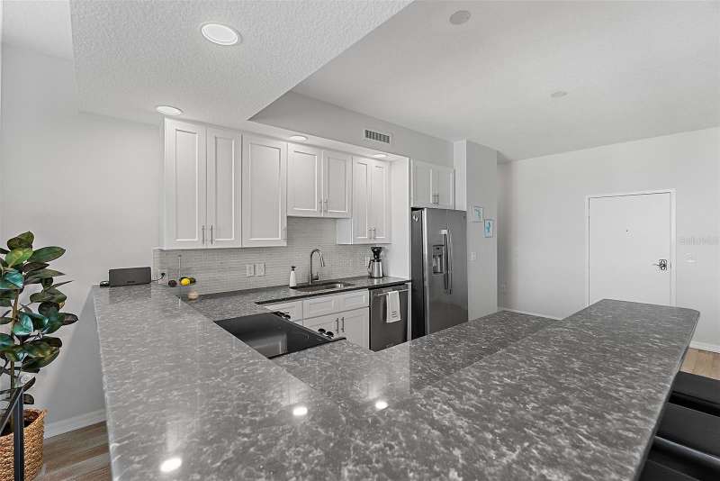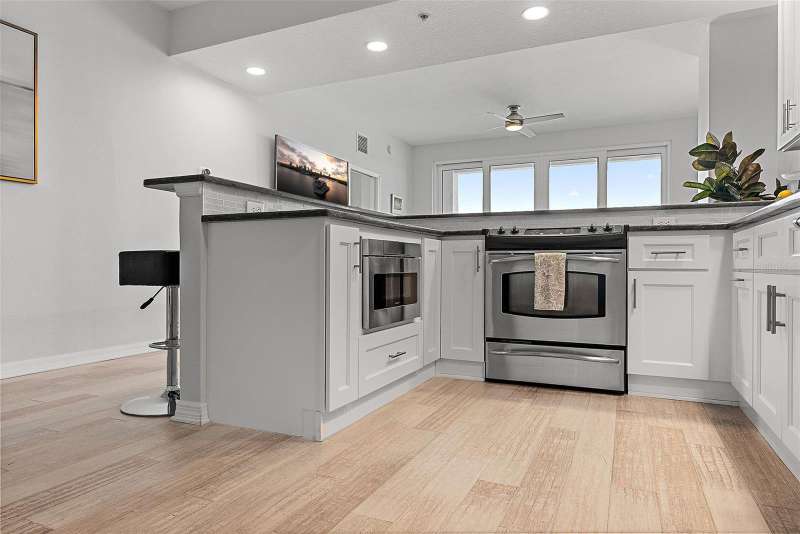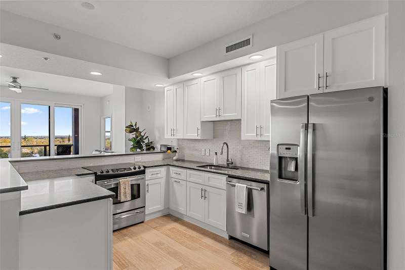 BUY A CONDO THAT HAS IT ALL. Modern living and urban convenience are found in this immaculate downtown St Petersburg gem located in a NON FLOOD ZONE. This 2-bedroom, 2-bathroom condo features high-end finishes and smart design choices. NEW KITCHEN. The renovated kitchen features soft-close wood cabinets, quartz countertops, stylish lighting, and premium appliances. CUSTOM DRY BAR. Enjoy a custom dry bar that includes a wine fridge and storage adding a touch of luxury and practicality for entertaining. WOOD FLOORING. The space is further enhanced with bamboo flooring throughout. IMPACT WINDOWS AND DOORS. Having PGT impact resistant windows and sliding glass doors provide both safety and beautiful views in all climates. CUSTOM CALIFORNIA CLOSETS. Customized closets in both bedrooms and the pantry ensure ample and organized storage throughout the home, including a utility closet and a full laundry room. One of the many perks of this condo is the covered parking space in the gated garage, with access to four EV charging stations. The condo also offers breathtaking, unobstructed north-facing views of the Old Northeast with a partial view of Tampa Bay. Whether you're enjoying the sunrise or sunset, the views are simply stunning. The building’s rooftop common area provides seating with views of both Tampa Bay and downtown, making it a perfect spot for relaxing or entertaining. Walker Whitney Plaza is known for its central location and impressive features. BREATHTAKING MURAL. A striking mural by the SHINE Mural Festival adorns the west side of the building, adding a touch of local artistry to the urban landscape. IN THE HEART OF ITALL. The condo is located directly across from the Palladium, just a short walk from Beach Drive, the Pier, and downtown St. Pete's best dining, shopping, and entertainment options. The easy access to 4th Street and I-275 makes commuting to the broader Tampa Bay area a breeze. This residence is the epitome of modern city living—an exceptional condo in a prime location, offering both luxury and convenience in one of St. Petersburg’s most desirable neighborhoods.