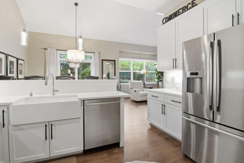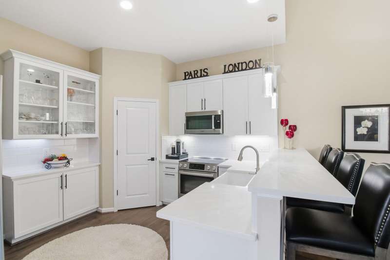 Welcome to this tastefully designed open concept Cape Cod/duet-style Condo! You'll feel like you're walking onto a movie set! Greenbriar is a unique community full of brick ranches & 2 story homes with a park area. This beautiful condo has 3 Bedrooms, 3 Full Bathrooms, 2 car attached garage and a loft! Nestled against serene woods, this property offers secluded space & low maintenance living. A Rare Opportunity – Over 150k in Renovations. You're welcomed into the home with beautiful vaulted ceilings and Luxury vinyl plank flooring throughout. The primary level includes a primary suite with tray ceiling, spa-quality bath, Euro shower, counter height vanity, seated beauty station, his and hers closets (one walk-in). Use your imagination with french door flex bedroom/office/den, Custom designed kitchen with quartz countertops, Bosch stainless steel appliances & walk- in pantry with large wine cooler/drink station and bar top suitable for 4 (bar stools included). Cozy up in the great room with a no maintenance gas fireplace with marble surround or enjoy dinner on the private deck backing to peaceful wooded landscape. Primary floor also jas first floor laundry. Upstairs you'll find a private guest suite with en suite bathroom and walk-in closet with beautiful open concept loft/office overlooking both the foyer and the great room. Basement has egress window and is ready for finishing touches. Updated furnace and hot water tank. Central air. New roof Aug 2025. Exterior painted Nov 2025. Brick & Stone skirt exterior surround. HOA includes-snow removal, maintenance grounds, other. BBQ grill included (used one time!). Please exclude foyer chandelier. Seller is a licenced Real Estate Agent. Please note: TAXES ARE NON HOMESTEAD;