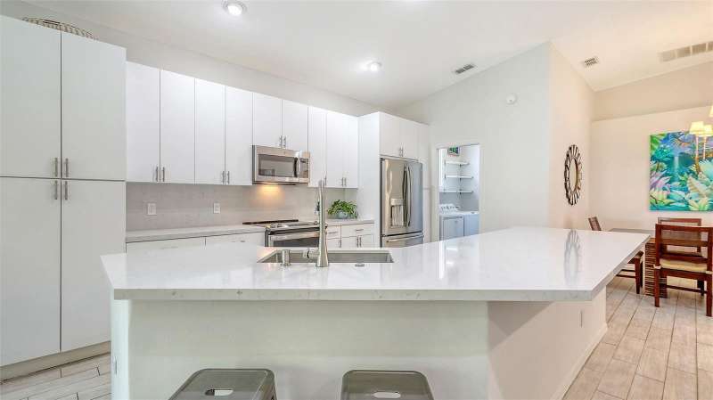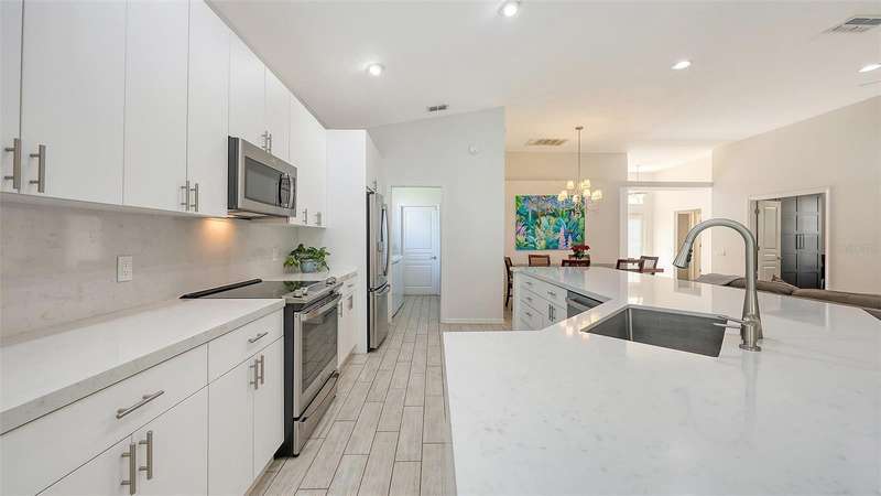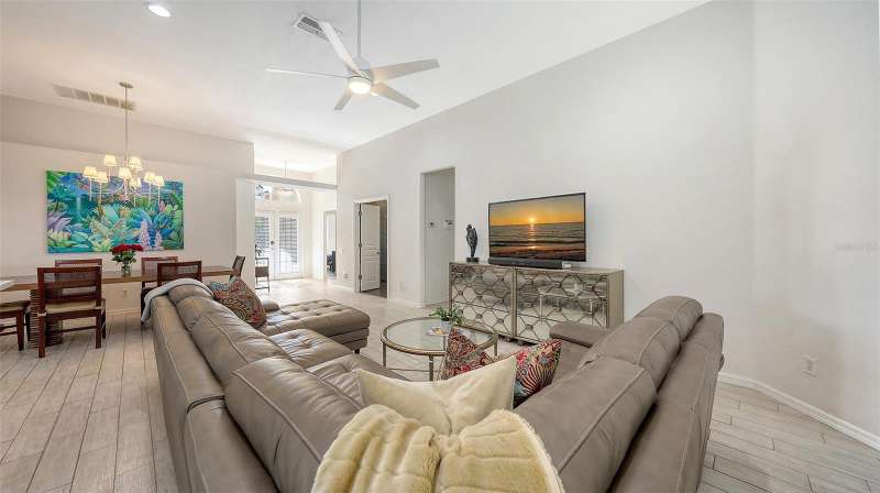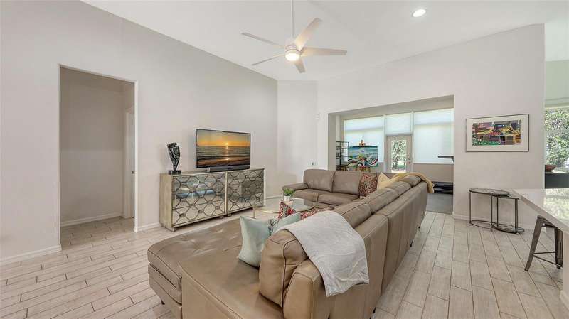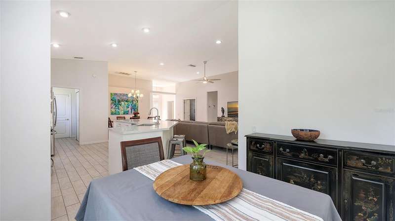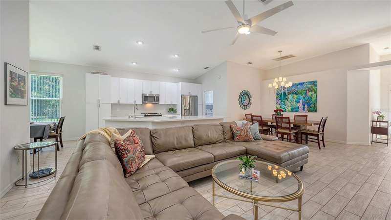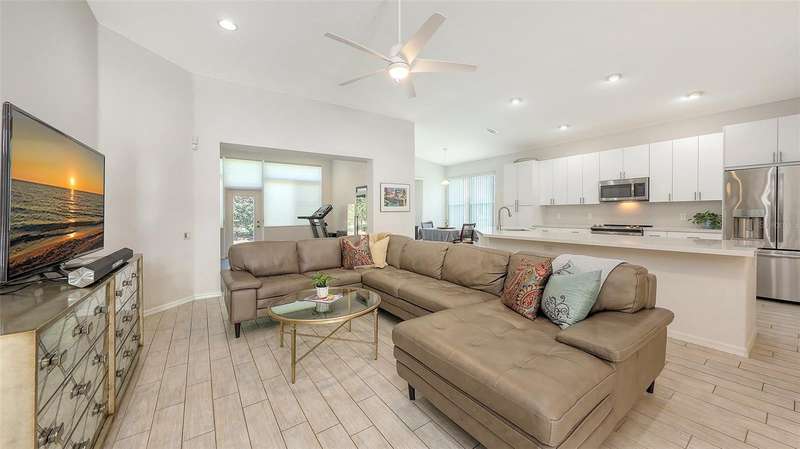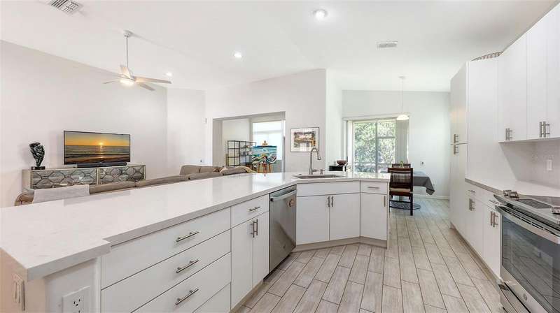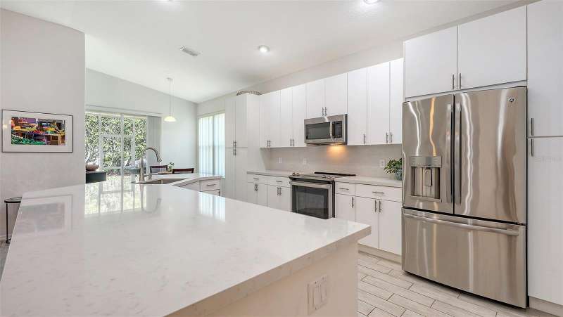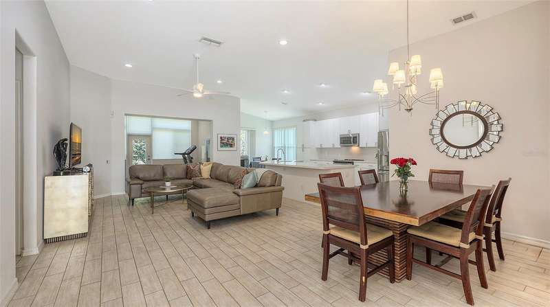 Beautifully Updated Home in the Heart of Lakewood Ranch! Perfectly nestled in the tranquil, maintenance-free community of Edgewater Cove—an exclusive enclave of Edgewater Village—this stylishly updated 1,928-square-foot home offers the ideal blend of comfort, modern living, and natural beauty. Surrounded by the scenic splendor of Lake Uihlein, residents enjoy a gated community perfect for kayaking, walking, and outdoor recreation. This bright, open-concept home features three bedrooms, two renovated bathrooms, a bonus room, and countless updates throughout. The 3rd bedroom is currently configured as a den but is being utilized as a bedroom. From the moment you enter, you'll notice the appealing new tones that extend through the spacious living areas. The renovated kitchen is a showstopper, boasting premium quartz countertops, soft-close cabinetry, and sleek stainless-steel appliances—designed for both function and beauty. Enjoy morning coffee in the screened-in lanai just off the charming breakfast nook. A versatile bonus room with large windows brings in abundant natural light and enhances the open, airy feel, all while offering views of the tropical landscape. Retreat to the generously sized primary suite with brand-new flooring, a walk-in closet, and a fully updated en-suite bathroom featuring dual vanities, premium surfaces, and a modern walk-in shower. The split floor plan ensures privacy with guest rooms and an updated second full bath—every inch crafted with quality and attention to detail. Additional highlights include: a new roof (2023), new washer and dryer, high ceilings, a two-car garage, and a well-appointed laundry room with open shelving and a utility sink. Edgewater Cove residents enjoy resort-style amenities including a clubhouse, heated pool and spa, a fishing pier, a scenic gazebo and walking distance to the Lakewood Ranch Athletic club. Just minutes from Lakewood Ranch Main Street, Waterside Place, UTC Mall, top-rated golf, tennis, dining, and healthcare—this is truly updated Florida living at its finest.