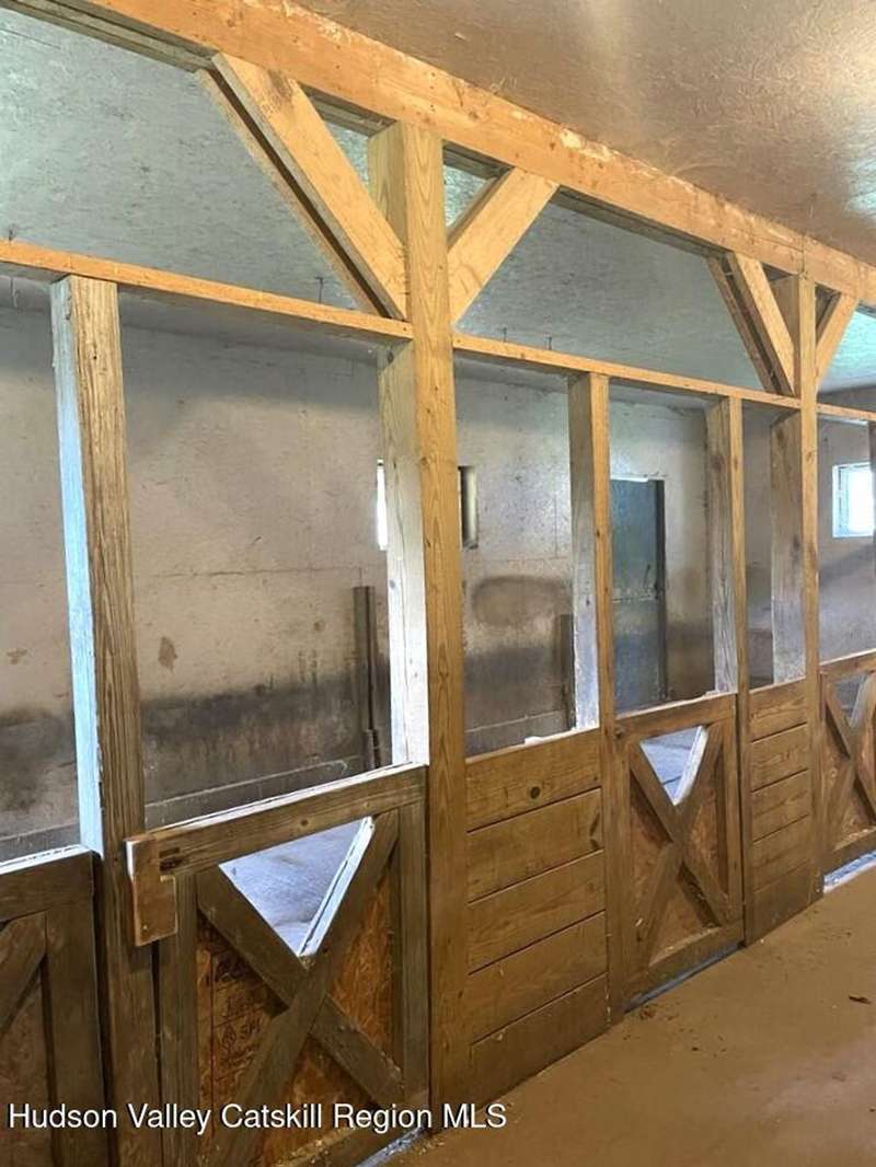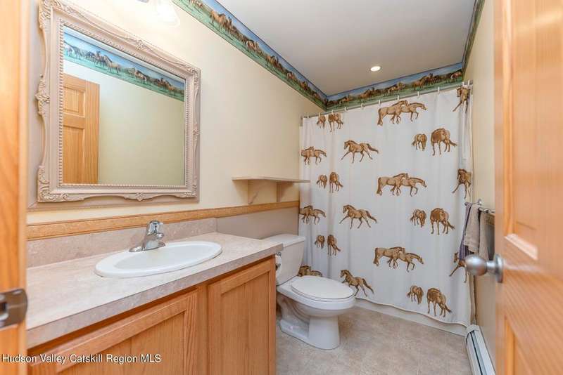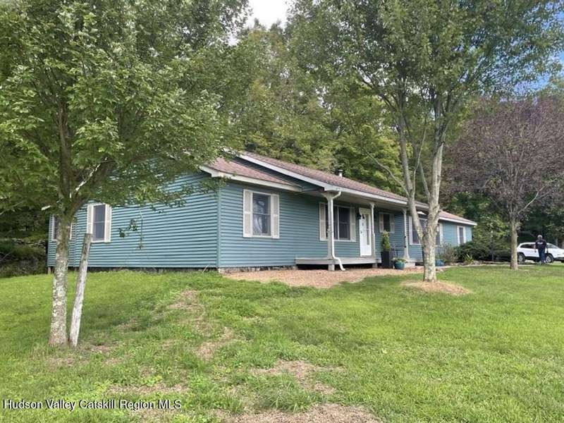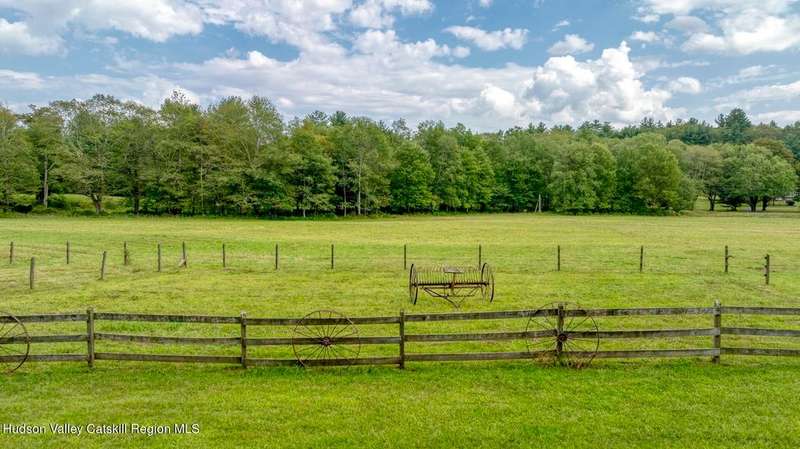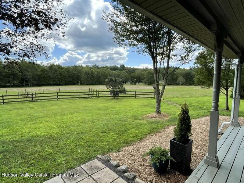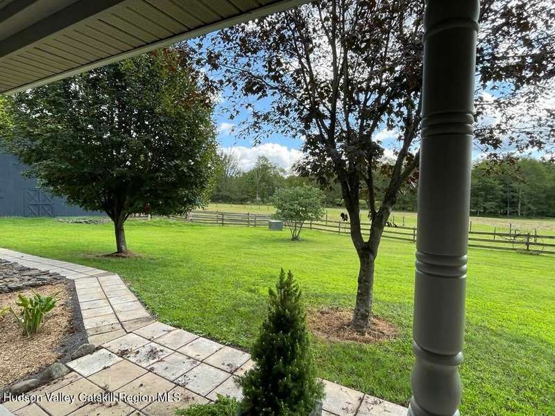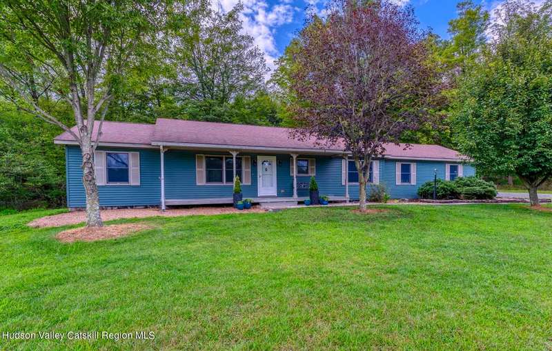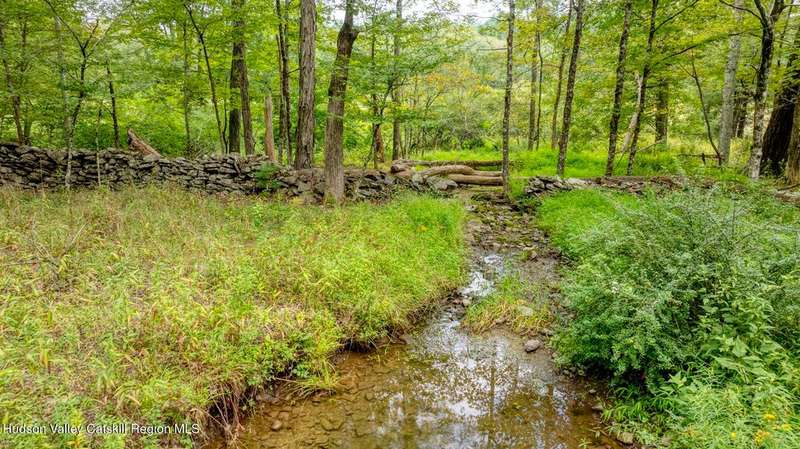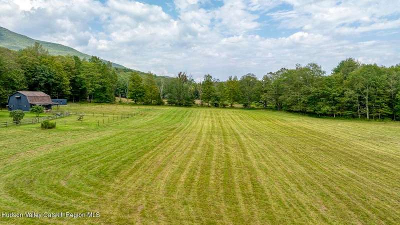 You'll understand just how special this 41 Acre property is once you arrive. Just driving down the country road to get here is already a treat. Situated at the base of the majestic High Point Mountain you'll find a private driveway that takes you through a beautiful forest and then it opens up to acres of your own open farmlands.....the open fields are perfectly suited to horses and with an amazing newly painted Gambrel Roof Horse Barn, you can move them right in and start enjoying every aspect of country life. The peaceful feeling this private property gives is unmatched. The home is nestled perfectly along the woodlands with great views of the open fields. Watch your horses, cows or goats grazing or just relax on the open front porch and breath in all the fresh air! The home has been very well maintained and features a charming stone fireplace, pretty solid wood six panel doors, a kitchen with multiple wood cabinets including an integrated pantry, Corian countertops, a gas stove and peninsula open to a dining area with large windows overlooking those gorgeous views. The split floor plan has two bedrooms on one side of the house while the Primary Bedroom Suite is on the other side which offers some privacy from the kiddos or guests. Just off the living room you'll find a charming enclosed porch with wide board knotty pine floors and large windows overlooking your own pristine forest. The oversized two car garage has ample space for a workbench, contains a storage closet and the entrance to the poured concrete crawl space which houses the utilities. Once you step foot in the barn, your imagination will light up.... what a great space on the ground level for horses or other livestock with a center isle and several stalls that can be used in a variety of ways, high ceilings with exposed beams and four entrance/exit doors for ease in cleaning or moving animals. The Second floor of the barn contains an exterior hay door PLUS there is a full interior staircase to a HUGE open space with lots of headroom for hay storage, tack, etc. This barn offers so many possibilities.... it is such a great building for other dreams as well.... Possibly convert it to your own personal artist studio or workshop....it contains its own electric service. Take your time to walk around this lovely property, you will find there are two small streams, beautiful old growth trees along the perimeter and tons of space to enjoy. This large, sub-dividable lot contains such a diversity of land types including heavily and lightly forested areas, open meadows, wetlands, rock outcroppings, charming natural streams and pretty landscaping around the house. This beautiful property is in close proximity to the picturesque Ashokan Reservoir that features a pedestrian only paved walking/biking promenade showcasing vast views of the surrounding Catskill Mountains and breathtaking Ashokan Reservoir and also the Ashokan Rail Trail which meanders through miles of beautiful forest alongside the shoreline of the reservoir and Esopus Creek. In addition, the Mohonk Preserve with its amazing trails and swimming lake are a short drive away. The Catskills offer so much to enjoy between all the hiking trails and high peak vistas, but also all the charming small villages with quaint shops and restaurants. You'll never feel bored and you'll always feel relaxed and at peace in this special area. Come see this exceptional property as soon as possible...it is such a rare find.... once you see it, you will absolutely love it!!