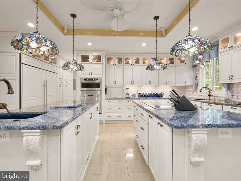 HUGE RECENT UPGRADES-Goshen Valley is a well-kept secret with gorgeous homes 10 mins from the best shops in Montgomery Co at Milestone/Neelsville Center, I- 270, the MARC Train & GREAT Medical Care. The school system is a major draw w/a variety of options, including nearby Montgomery College & was voted #1 Most Diverse City In America. Restaurants, parks & outdoor amenities abound. Goshen Valley Dr is a beautiful street w/overreaching, shading oaks. Children ride bikes on a cul-de-sac & friendly neighbors chat taking walks. At 9117, a magnificent French colonial ivory brick mansion, with $600,000 OF NEW IMPROVEMENTS, incl. NEW KITCHEN, NEW ROOF, SKYLIGHTS, WINDOWS, DOORS, & LENNOX GAS FURNACE & NEWLY INSTALLED 3 TON CARRIER GAS FURNACE, 73 GL WATER HEATER & 2 ELECTRICAL PANELS IN THE GARAGE WITH A CONNECTION FOR A GENERATOR. With 2 large wings, the house sits impressively on the highest hill, from a 3-car garage to the 2-story entrance w/a marbleized porcelain tile floor. To the right, the living room has the 1ST Of 6 Fireplaces & hand-blown sconces lighting wainscoted walls & NEW HARDWOOD FLOORS. To the left is the dining rm & 2ND Fireplace, similar sconces & wainscoting. A curved staircase sees the 3RD Fireplace from above & new family rm w/3 skylights & bar cabinet. The chef's dream kitchen w/all highly rated GE Monogram appliances has two 8 ft islands lit by 4 Tiffany-style chandeliers & all counters have rare Azul Bahia granite. The prep island w/a sink is conveniently next to the GE Monogram fridge/freezer, three 9 ft x 24""Â? wide x 24""Â? deep Kraft-Maid solid wood pantries & sturdy roll-out drawers. Beyond which are a10 ft mirrored coat closet, & wall cabinets. Across is a mudroom w/one of 3 washer/dryers & 2nd powder room (the first is off the entry hall). The kitchen's second island has a GE Monogram cooktop, retractable downdraft, warming drawer & solid wood Kraft-Maid soft-close drawers & dovetail corners for heavy pots & pans, & 2 two-tiered cutlery drawers. A fan sits in a tray ceiling w/hand stenciling. A whisper-quiet dishwasher & wall microwave/baking oven over a convection oven, also GE Monograms, & 2 Fisher Paykel crystal washers. The main sink & breakfast nook look out at a 27 SF deck. The solarium seen through high windows from the family rm features a 4TH Fireplace, four skylights, & three walls of tall arched windows. Multiple flowering trees & forest beyond provide privacy. The extensive first-floor primary bedroom suite has the 5TH Fireplace & new hardwood flooring; Double doors open to the extensively mirrored primary bathroom w/two 12-foot long sink counters NEWLY REFINISHED WHITE CABINETS & large central jacuzzi. To the right & left are two 10 ft walk-in closets, shower room with a stacking 2ND WASHER/DRYER & a toilet room with a bidet. A library with NEW HARDWOOD FLOORS, built-in bookcases on three walls, on the fourth wall a 7 ft picture window. UPSTAIRS THE FOUR LARGE BEDROOMS ALL HAVE NEW CARPETING, two full baths, All NEWLY REFINISHED WHITE CABINETS, one with a skylight & 3RD WASHER/DRYER. The enormous walkout fully finished lower level offers maximum versatility & functionality, perfect for multi-generational/au pair possibilities, with a sixth bedroom, second kitchen, TV wall with reclining chairs, hardwood floors, wainscoted walls, & the 6TH Fireplace across from the bedroom that looks out a picture window to the backyard. There is a carpeted exercise room or playroom w/a tropical mural, alongside the 4th full bathroom. Two pairs of French doors separate these rooms from a large party room, complete w/full kitchen. Three sets of glass French doors lead out to a ""slate patio"" & the backyard. Two large storage rooms round out the lower level. House & deck have 2x12 beams/joists, with French drains around the foundation providing maximum water & moisture prevention. All it needs is YOU! Click Documents Tab for All Upgrades