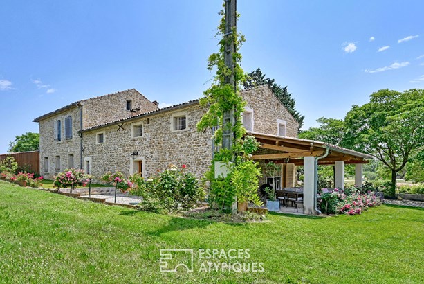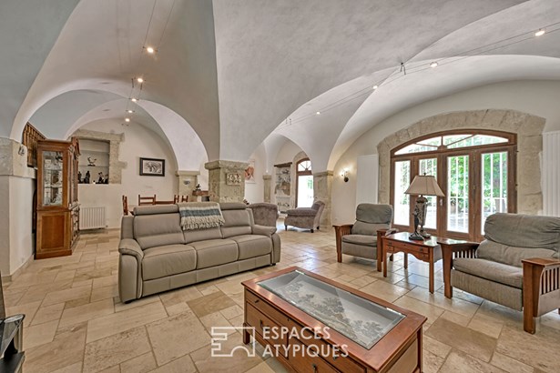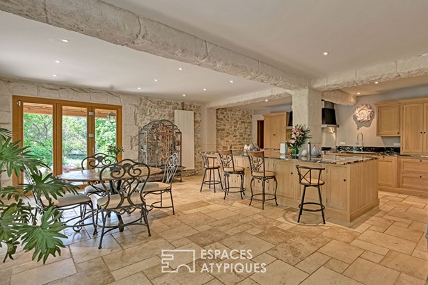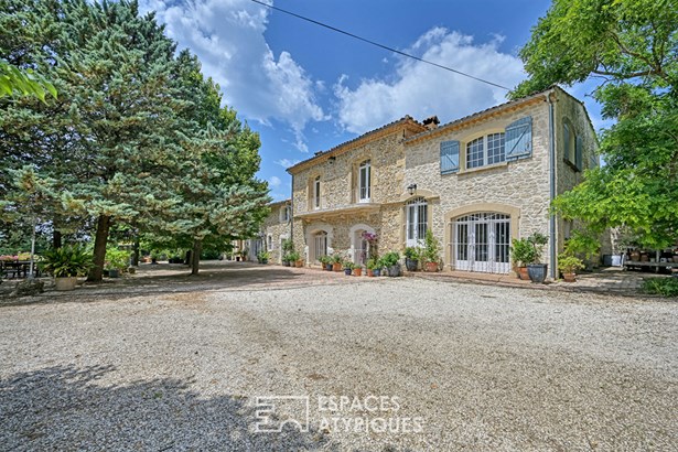This charming farmhouse of approximately 450 sqm is located in the heart of a beautiful natural setting just minutes from Sommieres. The property, benefiting from a recent high-quality renovation, elegantly combines old-world charm with modern comfort. Upon arrival, we discover the beautiful natural stone facades that testify to the character and authenticity of the farmhouse.