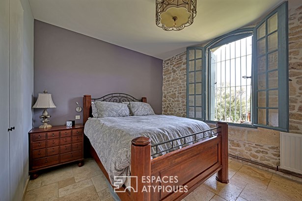 Upstairs, the very comfortable bedrooms and tastefully renovated bathrooms offer lovely unobstructed views as far as Pic Saint-Loup. A separate 65 sqm apartment completes the property, with a living room and its new kitchen on the ground floor, as well as the sleeping area upstairs, ideal for entertaining or for a reception project. The property is located in the heart of a private 3.9-hectare estate, a veritable green setting inviting tranquility.