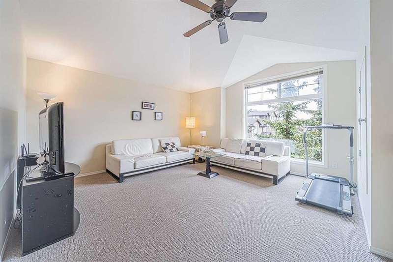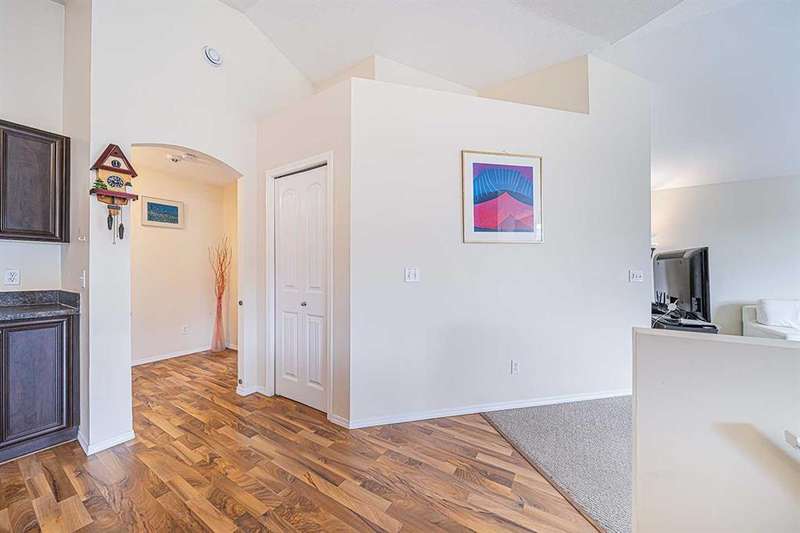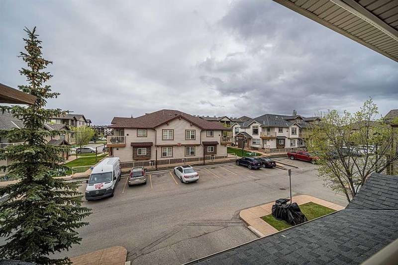 LOW CONDO FEE! Spacious and refreshed upper-floor end unit in the heart of Panorama Hills. With over 1,200 sq. ft., this is one of the largest units in the complex, offering 2 bedrooms, 2 bathrooms, in-suite laundry, storage, and an attached garage. Bright open-concept layout with vaulted ceilings, large windows, and a kitchen featuring an island, walk-in pantry, and ample cabinetry. The primary bedroom includes a walk-in closet and 4-pc ensuite, plus a second bedroom and full bath for family or guests. Private balcony, in-floor heating, and an advanced air exchange system ensure year-round comfort. Unbeatable location—steps to shopping, restaurants, clinics, and schools. Quick access to Stoney Trail, 15 minutes to the airport. A must-see!