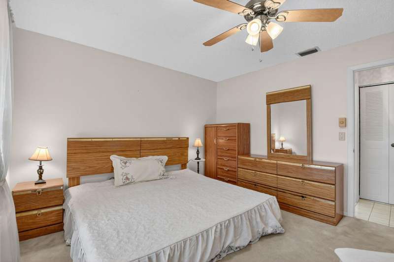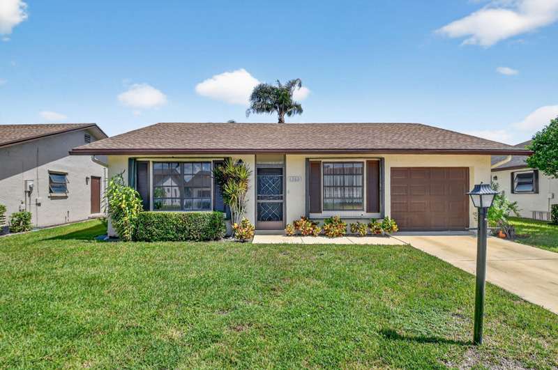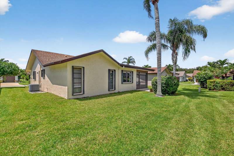 Lovely 2 Bedroom + Den Home in Desirable, 55+ Buttonwood West Community. Enjoy both a covered/screened patio and an open patio. Major system updates include a newer roof (2019), A/C (2016), and water heater (2014). Ceramic tile and wood laminate in the main living areas, with carpet in the bedrooms. Residents enjoy the peace of mind of a night guard at the community entrance, plus a manager on-site at the clubhouse. Amenities include a pool (with nighttime swimming allowed), fitness center, bocce, pickleball, tennis, shuffleboard, billiards, card room, jacuzzi, library, and more. Ideally located near shopping, dining, parks, beautiful beaches, the Turnpike, and Palm Beach International Airport.