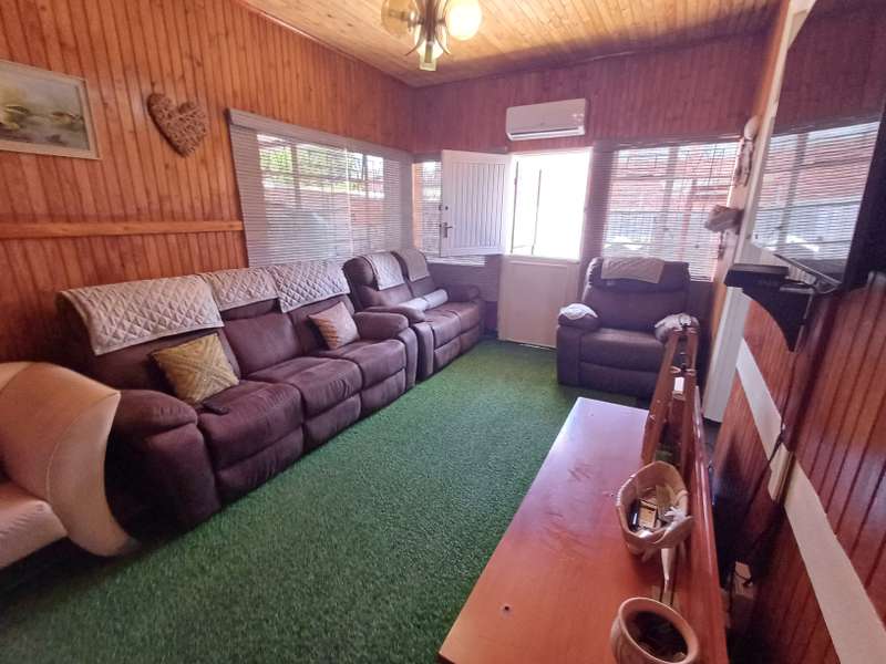 This well-maintained home offers three bedrooms with built-in cupboards and two bathrooms, perfect for a growing family or those seeking spacious living. The home features a lounge, dining room, and a cozy TV room, while the kitchen boasts an oven and hob. Enjoy added versatility with a generous 6x6 Wendy house, perfect for extra storage or a creative workspace. The home prioritizes security with burglar bars and an alarm system. Comfort features include air conditioning, ceiling fans, and a warm fireplace in the main bedroom. A double garage offers ample parking and storage space. This home is ready for you to make it your own – contact us today for a viewing.