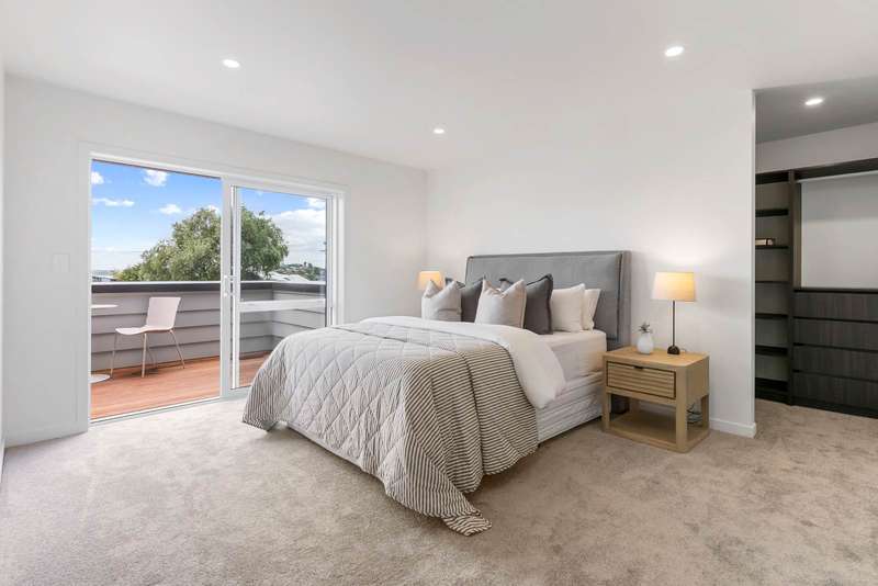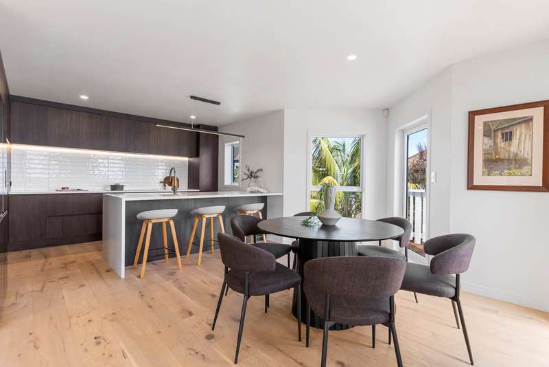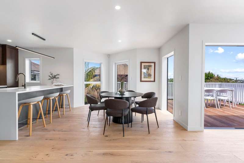 Freehold title to be issued. Freshly completed and immaculately presented, this stylish family home occupies a tranquil rear section where privacy and quality combine in perfect harmony. With conversion from cross lease to freehold title imminent, this meticulously renovated residence delivers an irresistible blend of urban privilege and coastal cool in a prestige St Heliers neighbourhood. Constructed with a concrete block lower level and double-glazed weatherboard upper level, the home is designed for easy, family-friendly living with elevated outlooks across the city capturing the Sky Tower and glimpses of the gulf islands. Crisp white walls form the backdrop to a high-spec interior with a relaxed yet sophisticated aesthetic. Extensive engineered American Oak flooring defines the open-plan upper-level living and dining zones, complemented by a designer kitchen showcasing classic subway tiles, dark timber-grain cabinetry, and premium Fisher & Paykel appliances. Two Kwila decks to the north and west provide options for alfresco entertaining and further vantage points to soak up the views. The master suite opens to a balcony and features a substantial galley-style walk-in wardrobe and sleek ensuite, while a powder room continues the stylish brushed gunmetal fittings. On the ground floor, two additional double bedrooms share a versatile lounge (or optional fourth bedroom) and a generous bathroom with freestanding bath. A separate laundry and high-stud double garage with storage add to the functionality, with access to a secure rear parking area ideal for a jet ski or trailer. Multiple exits flow to private wraparound decking fringed by Astroturf lawns and landscaped gardens, providing effortless indoor-outdoor living. Moments from the cosmopolitan energy of St Heliers Village and Tamaki Drive's coastal boardwalks, this low-maintenance retreat is zoned for St Heliers School and Glendowie College, and within walking distance of St Ignatius School, an exceptional family base in one of the Bays' most desirable addresses. Auction: 34 Shortland Street, City on Wednesday 3 December 2025 at 10:00AM (unless sold prior)