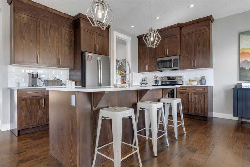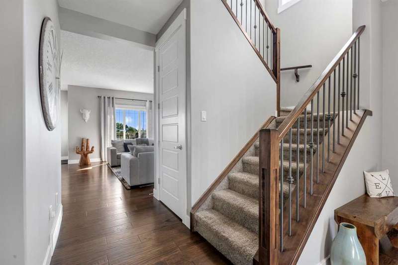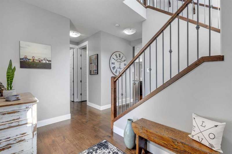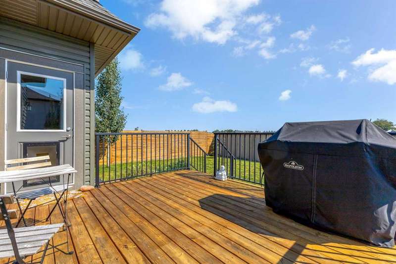 Open house Sunday Oct. 24 - 12:00 to 4:00 PM.-Great price for this beautiful, spotless DS - 2 storey home could be your family's. Original owner has taken immaculate care of their home. The open floor plan invites tons of natural light. The upgrades of the home includes quartz counter tops throughout, 3/4" wide plank engineered hardwood &, stainless steel appliances. The main floor boasts 9 ft. knock down ceiling, coupled with towering 8 ft. doors. Throughout the home is timeless traditional dark cabinetry. The home is painted with neutral colors. What a great kitchen for the cook. The eating area is designed for a large table for the whole family. The main floor also has a large mud room with walk through pantry. There is also a half bath and a living room with a cozy gas fireplace. Moving upstairs the spacious primary bedroom has a walk in closet ((7'.3"x7'.1" ). This bedroom also hosts a 5 piece ensuite with double vanities, a large shower and a separate soaker tub with jets. There is another bathroom (4 piece) and two other bedrooms for the kids, plus a bonus room on this upper level. This floor plan also has an upper floor laundry. This is so convenient on laundry day. Moving down to the lower level/basement is more family space. Fully developed with a family/games room, a 4th bedroom and a full 4 piece bath. Plenty of space for the teens and their friends to visit. Now to the outside. Parking is a double attached garage ( 18'11" x 21'6"). For guests there is front street parking, plus side parking by the home. The side area is great for offering additional street parking and a place for kids to ride bikes and play street hocky. A nice private fenced back yard with a spacious deck. The home/yard backs onto an open green space. Your family is going to love this home and it's amenities! Plus, the Little Bow River runs past the property. Nearby amenities include High River General Hospital, Royal Canadian Mounted Police Station, High River Fire Department, Schools, Grocery Stores, Cafes, Restaurant's & Parks. Nearby services are Okotoks-Aldersyde nearest bus stops, SB Somerset-Bridlewood C-Train Station. A lovely quiet town living, yet only 49 minutes (68.6 km) to Calgary. A great family home and a great community, a must see. A new real property is available. The owner's wish to sell most of their furniture. The buyer gets first right of refusal to buy the furniture if they are interested. Very flexable possession. Call your favorite realtor to view this beauty.