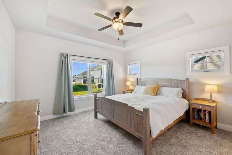 IMAGINE LIVING HERE! This stunning 4 bed, 3 bath ranch offers a perfect blend of luxury and efficiency. The bright living room with luxury vinyl plank floors and a gas fireplace flows seamlessly into the kitchen with stainless steel appliances and a central island. The primary suite offers an ensuite bath and walk-in closet, while 2 more bedrooms, a full bath, and main-level laundry complete the level. The finished walkout lower level adds space to relax, play, or work, with a family room, 4th bedroom, gym, and full bath. Outside, a maintenance-free deck and pergola overlook a meticulously maintained fenced yard, creating a private retreat. With a 3-car garage and fully paid solar panels, this home is designed for upscale, sustainable living. Don't wait, make this dream home yours today!
