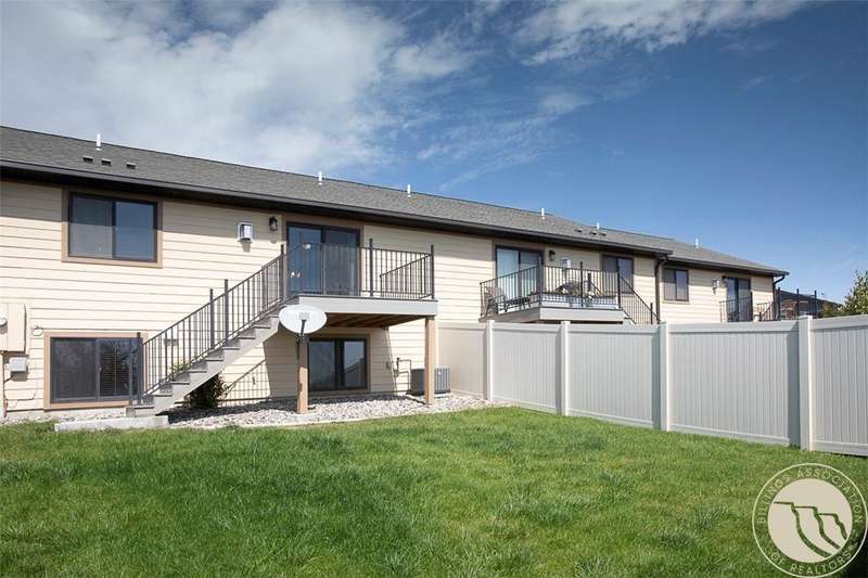 Inviting ranch-style townhome with daylight basement and a generous private fenced backyard backing to a walking path and green space. Main level features an open-concept layout with kitchen bar seating, living/dining areas, cozy gas fireplace, laundry, and two bedrooms including a primary suite with walk-in closet and step-in shower. The daylight basement offers a large bedroom with ensuite bath, double sinks, a spacious living room with room for a flex space perfect for a movie projector, game, or hobby area. HOA covers exterior insurance, maintenance, lawn, snow, water, and garbage for $189/mo. Low-maintenance living in a desirable location!