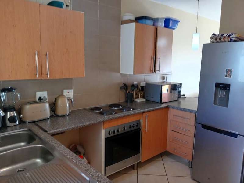 For Sale: Modern 2 Bedroom, 1 Full Bathroom First Floor Apartment This well-kept First floor apartment offers a perfect blend of comfort and convenience. Featuring 2 bedrooms and 1 Full bathroom, It boasts a delightful open-plan kitchen with a breakfast nook, ample cupboard space, and room for all your modern appliances. The kitchen flows seamlessly into the bright and spacious living area, which opens through sliding doors to a covered patio—ideal for relaxing or entertaining. The unit includes 2 dedicated covered parking bays, with ample additional/visitors parking available in the complex. Situated within a secure complex inside a safe estate, residents also enjoy access to a communal park with a children’s playground and braai facilities. The complex is fibre ready and strategically located close to all major amenities, ensuring effortless access to shopping, schools, healthcare, and main routes. A Wonderful home open today for your inspection, call this minute to view!