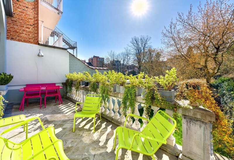 Just a stone's throw from Place Brugmann, on one of Brussels' most iconic avenues, this mansion charms with its stunning 7.5-metre French stone façade, refined architecture and south-facing city garden (plot of ± 3 ares). With a living area of ± 520 m², the house offers bright reception rooms, a fully equipped kitchen, an office, as well as 5 bedrooms and 4 bathrooms, including a large master suite. The sunny garden is a real haven of peace, rare at this address. A garage for two cars completes this exceptional property, which combines residential prestige and contemporary comfort in the heart of a sought-after neighbourhood. EPC: D+