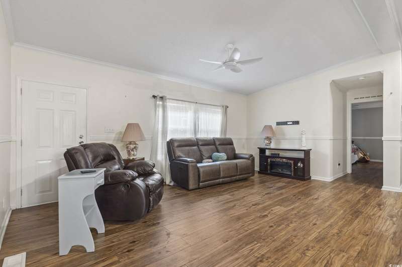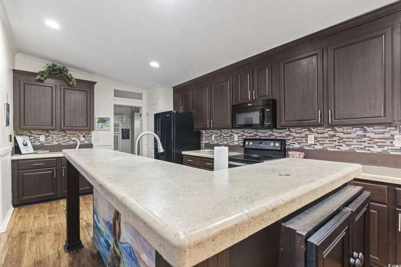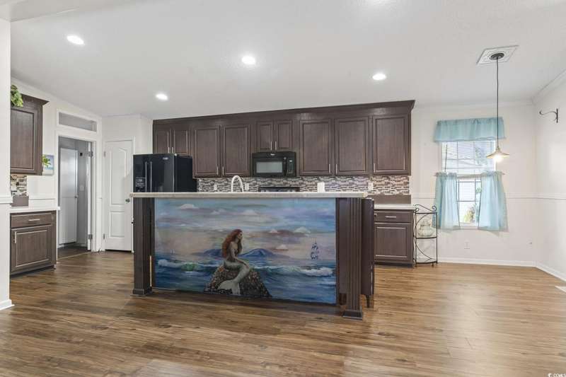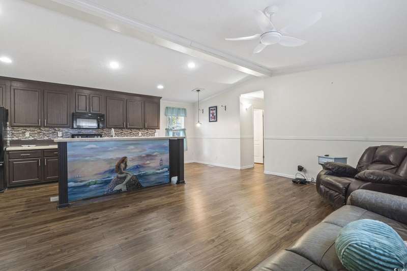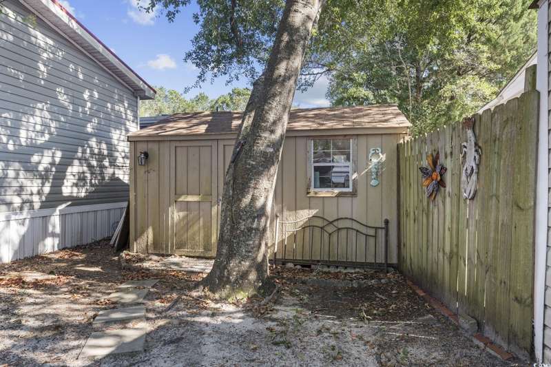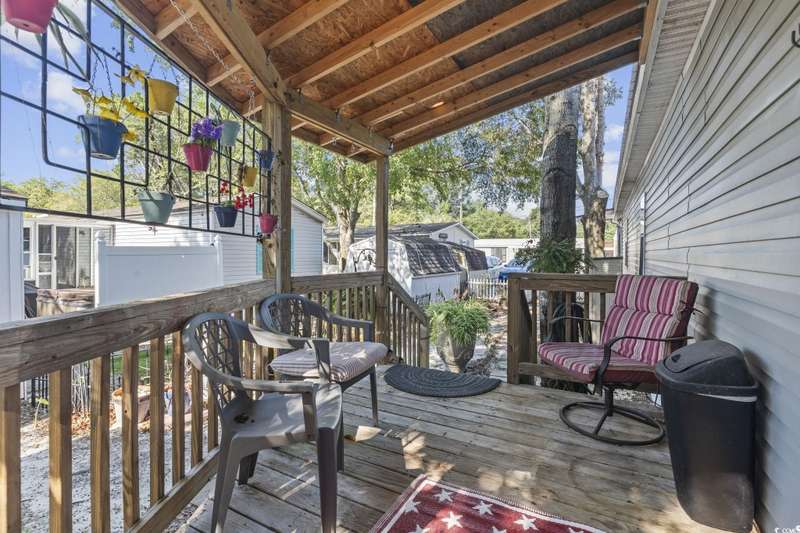 Living the beach life ,as you enter this home into tranquility through the screened-in furnished porch. Spacious with ceiling fan and electric perfect for sitting outside and enjoying the beach weather. Lovely furnished 3 bedroom, 2 full bath with unfinished office, playroom, or game room located in Apache Campground. Spacious living area large kitchen for gatherings with a dinette area. There is a sitting room right off the screened porch with 2 bedrooms to the left flowing into the living room. Master bedroom suite is located in the back of the home. NEW metal roof, heat pump,dishwasher, and washer and dryer! Amenteties include easy beach access, on site ocean front resturaunt, ice cream shop, gift shop, fishing pier, basketball courts,pool, kids pool, and splash pad. Golf cart friendly community. Home is on leased land that includes water, sewer, trash, cable, internet, and pier pass. Outdoors includes 2 sheds and fenced in yard.