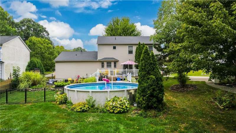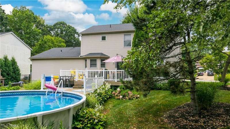 Welcome to 5220 Hemlock Drive! This home, located on a cul-de-sac, offers 4 bedrooms, 2.5 baths, and over 2,600 square feet of living space. The main level features a formal living room currently being used as an office, a formal dining room, a family room with a gas fireplace, a kitchen with granite countertops and stainless-steel appliances, a first-floor laundry, and a half bath. Upstairs, you will find all four bedrooms and the second full bathroom located just off the hallway. The primary suite offers vaulted ceilings, a walk-in closet, and a private full updated bathroom with double vanity, soaking tub, and separate shower. The finished basement adds even more living space with another gas fireplace and a wet bar. From the sliding glass doors in the kitchen, step outside to the Trex composite deck and above-ground pool. You will also find a covered front porch, a two-car garage with a smart garage door opener, an epoxy floor,?a large storage space, a patio with an outside brick fireplace, and a storage shed. This home has it all. A home warranty is included for your peace of mind. This is in a zero percent down USDA-approved location. Schedule your showing today.