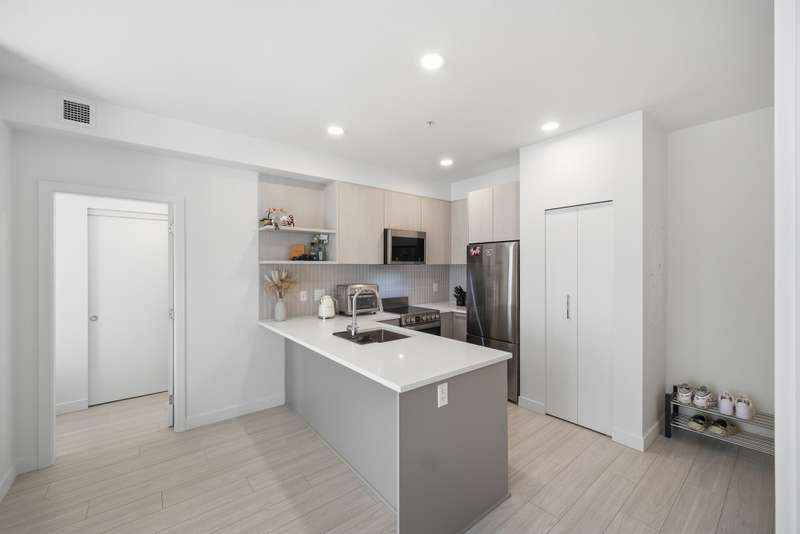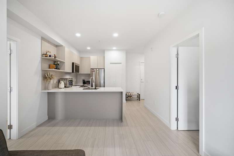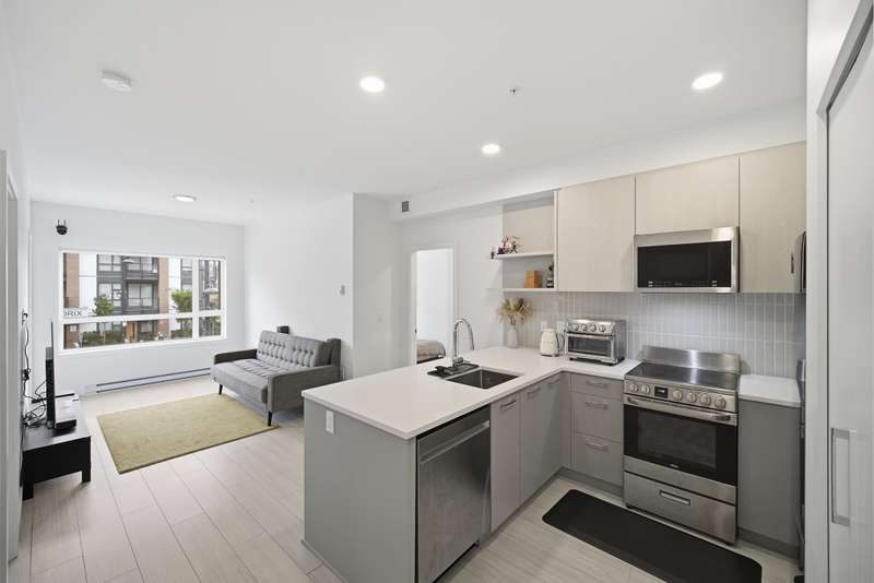 Welcome to Q5 – Whalley’s new urban landmark! This bright 2-bed, 2-bath home combines modern style with everyday comfort. Enjoy an open-concept layout with 9' ceilings, contemporary finishes, premium Haier stainless steel appliances, polished quartz counters, and large windows that fill the space with natural light, truly designed for comfort. The spacious balcony offers a perfect spot to unwind. Residents enjoy premium amenities—fitness center, games room for entertainment, BBQ area, and more. Conveniently located minutes from Gateway SkyTrain, Surrey Memorial Hospital, SFU Surrey, parks, shops, and restaurants. Perfect for first-time home buyers or investors seeking value and growth in Surrey’s vibrant city centre. Lowest priced 2 beds unit in the building. You don't want to miss out!